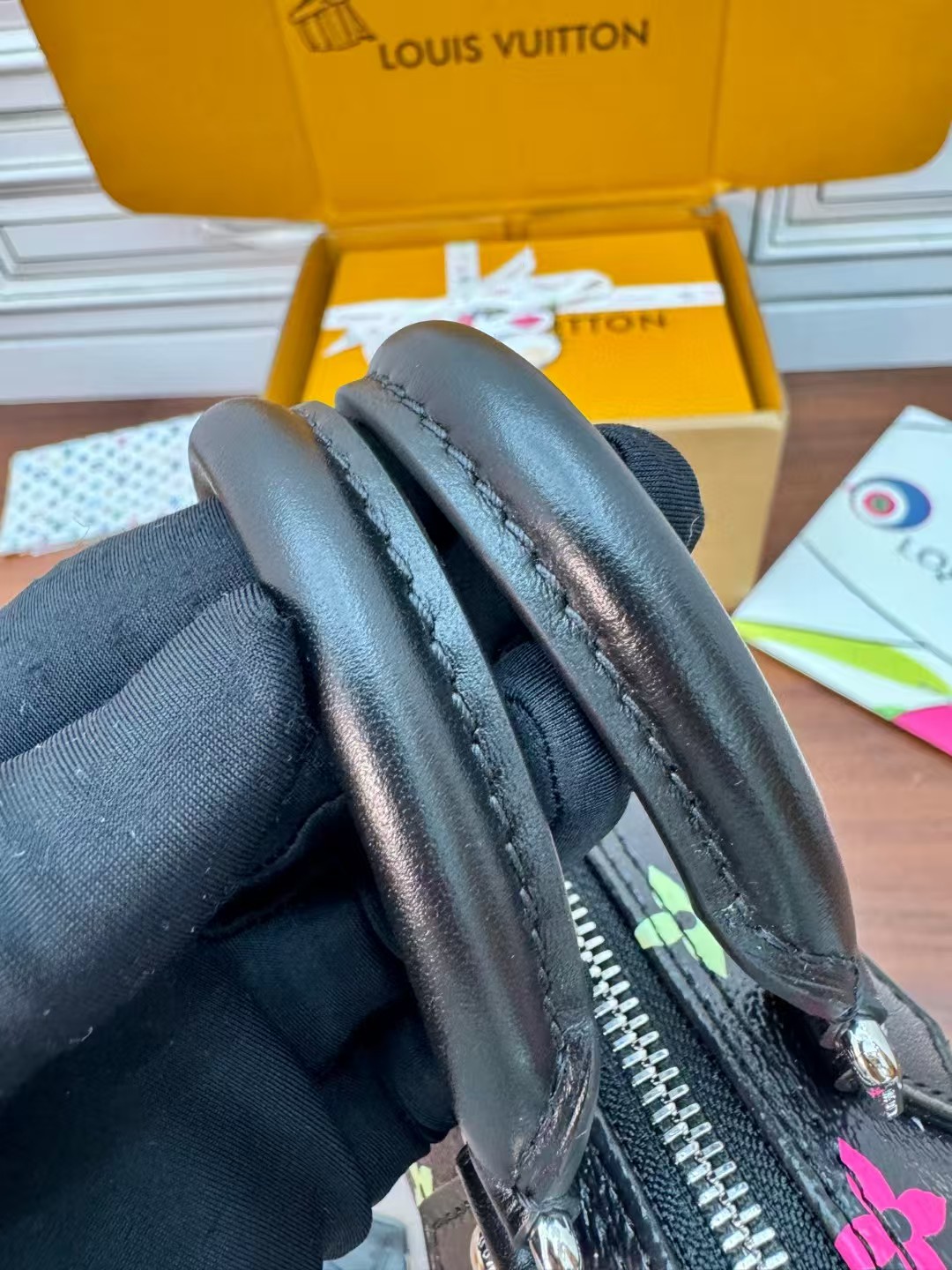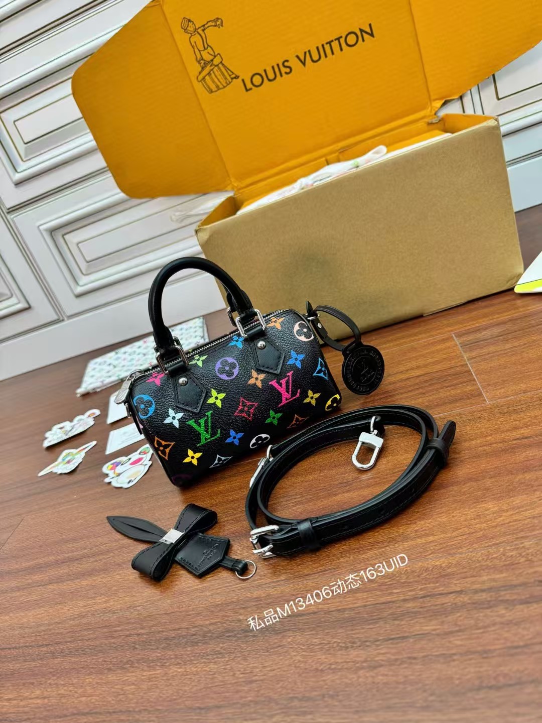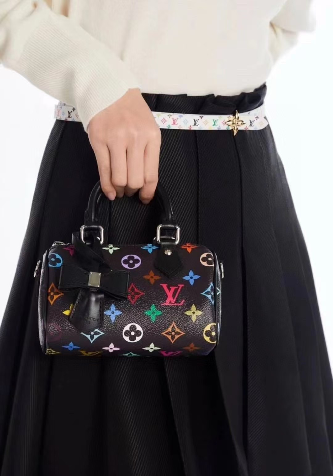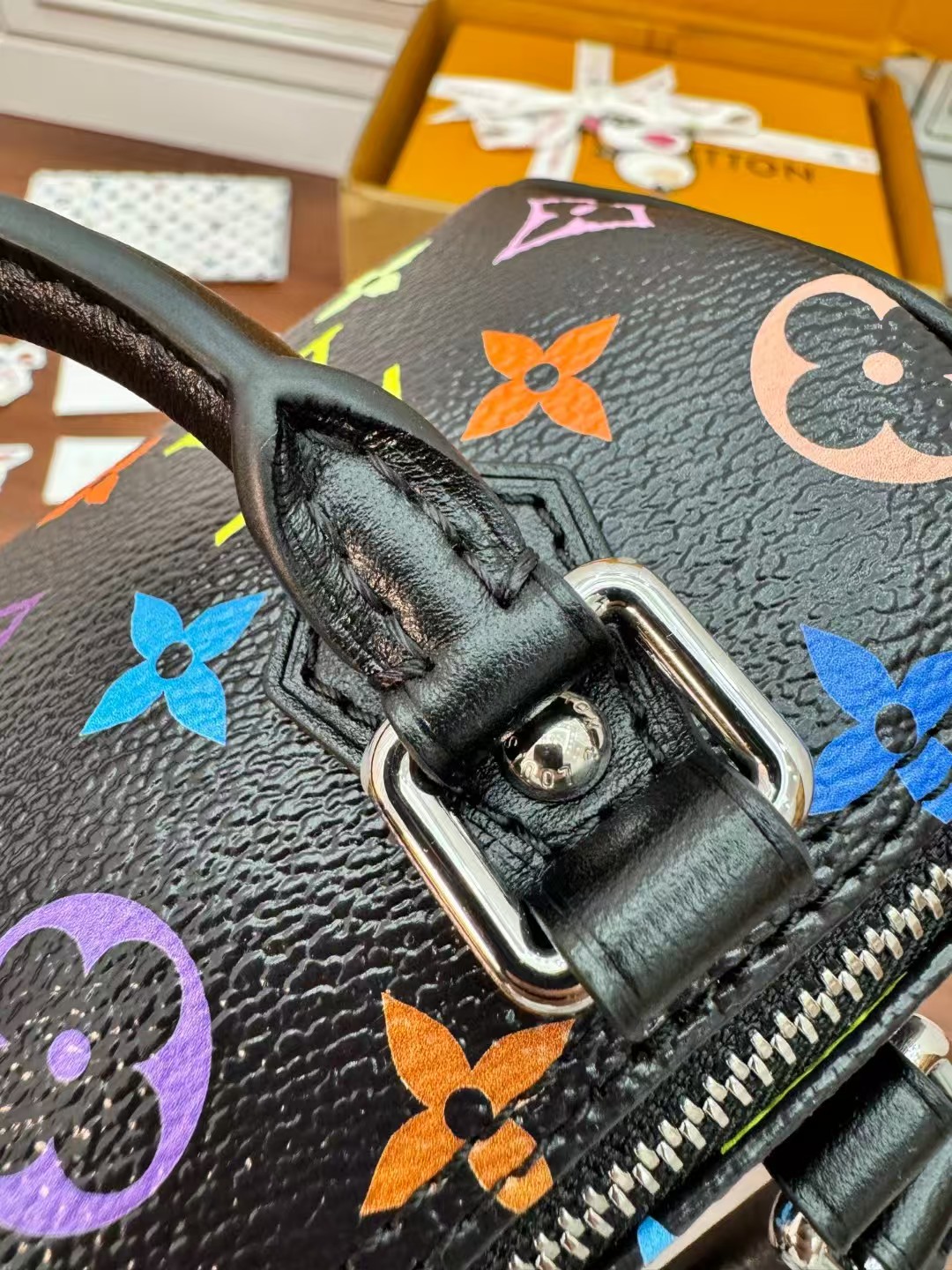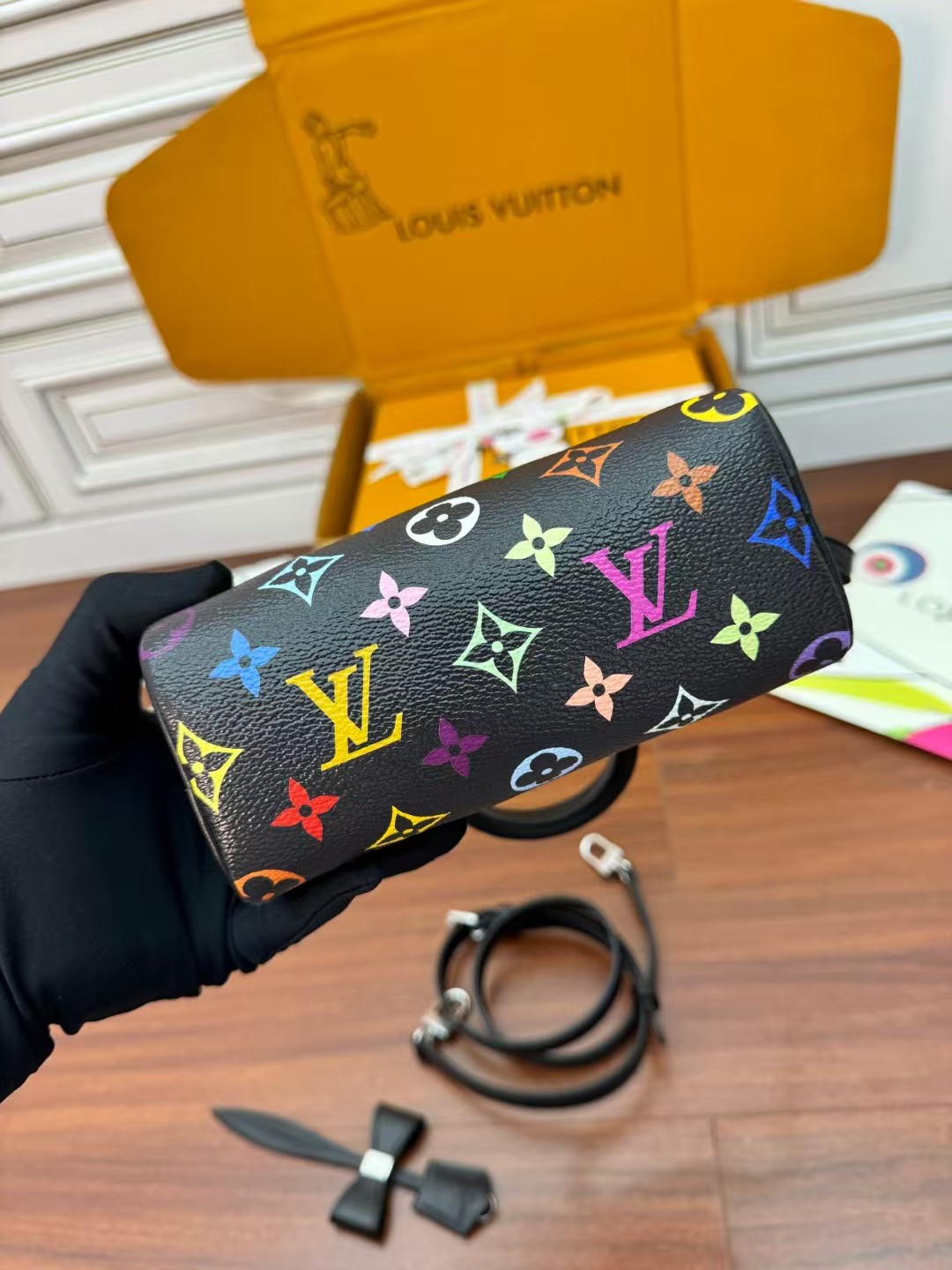 LOUIS VUITT0N x Takashi Murakami村上隆联名款 黑三彩 波士顿斜挎手提包 情侣款