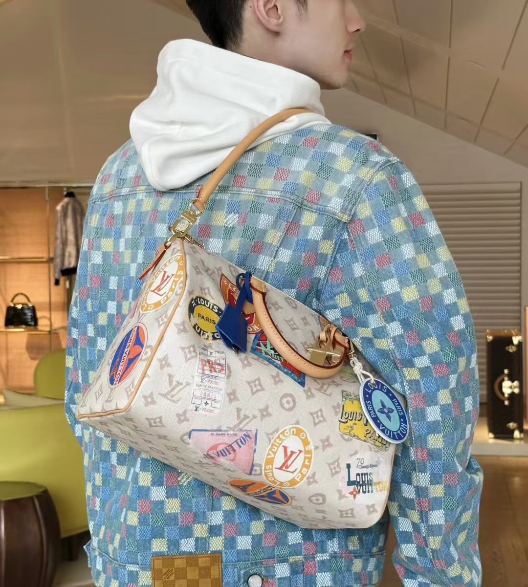 【介绍】 海外原单 动态芯片。本款 Speedy Soft 30 手袋以复古笔触演绎 Monogram Dune 元素,搭配飞机造型装饰和拼贴效果标签,致意 Gaston Louis Vuitton 典藏系列设计。长款手柄便于肩背,成就又一旅行佳伴。