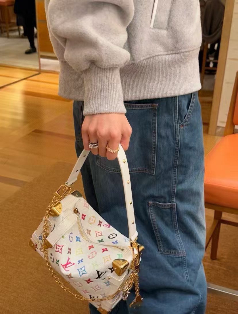 LOUIS VUITT0N x Takashi Murakami村上隆联名款 白三彩 牛皮 软盒子单肩斜挎手提包