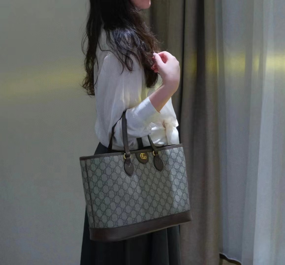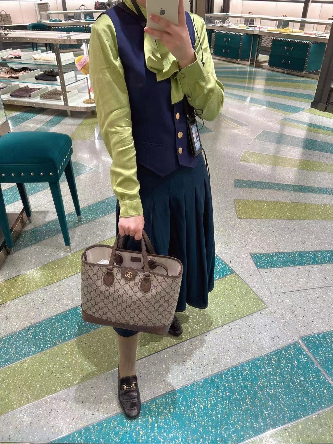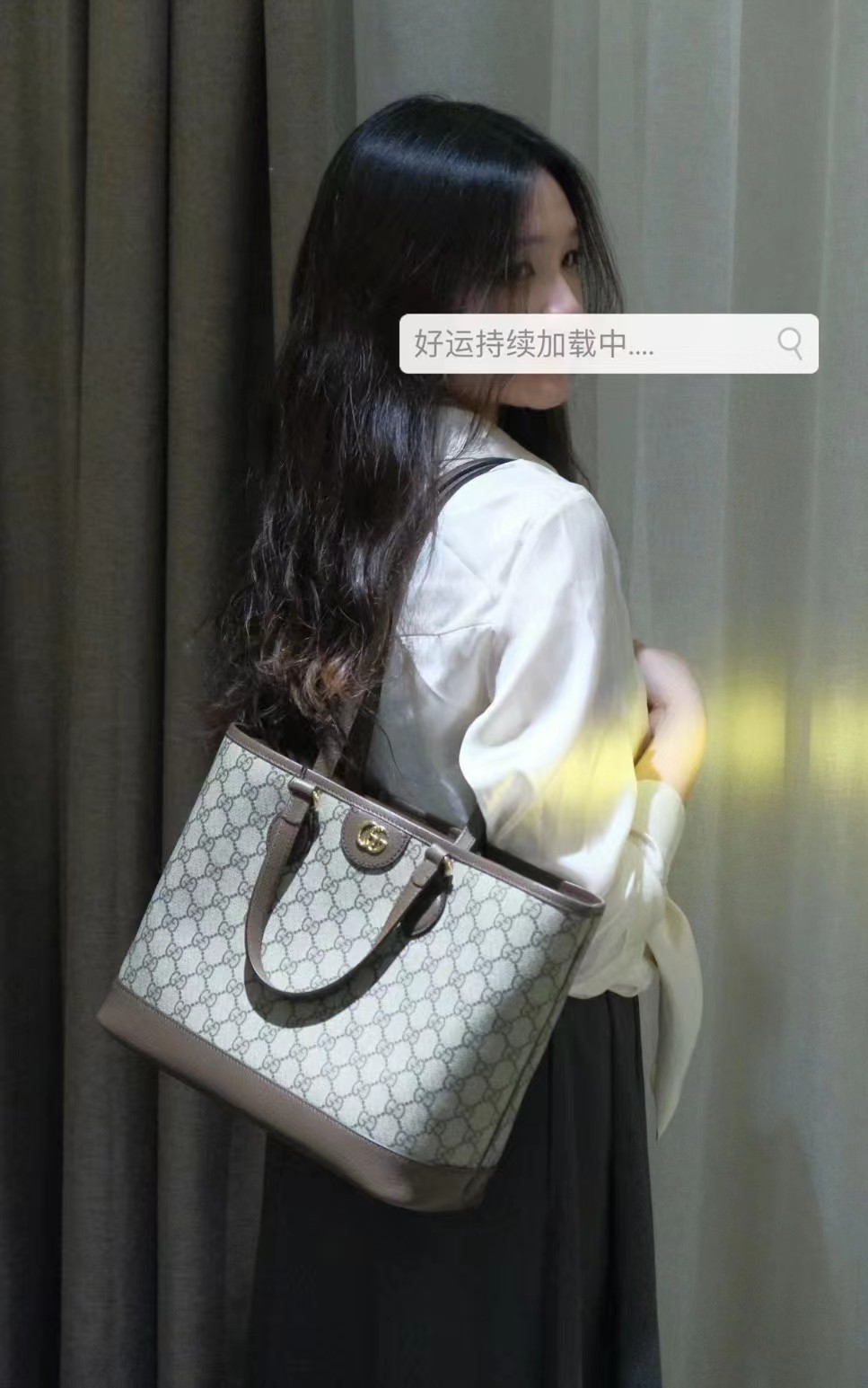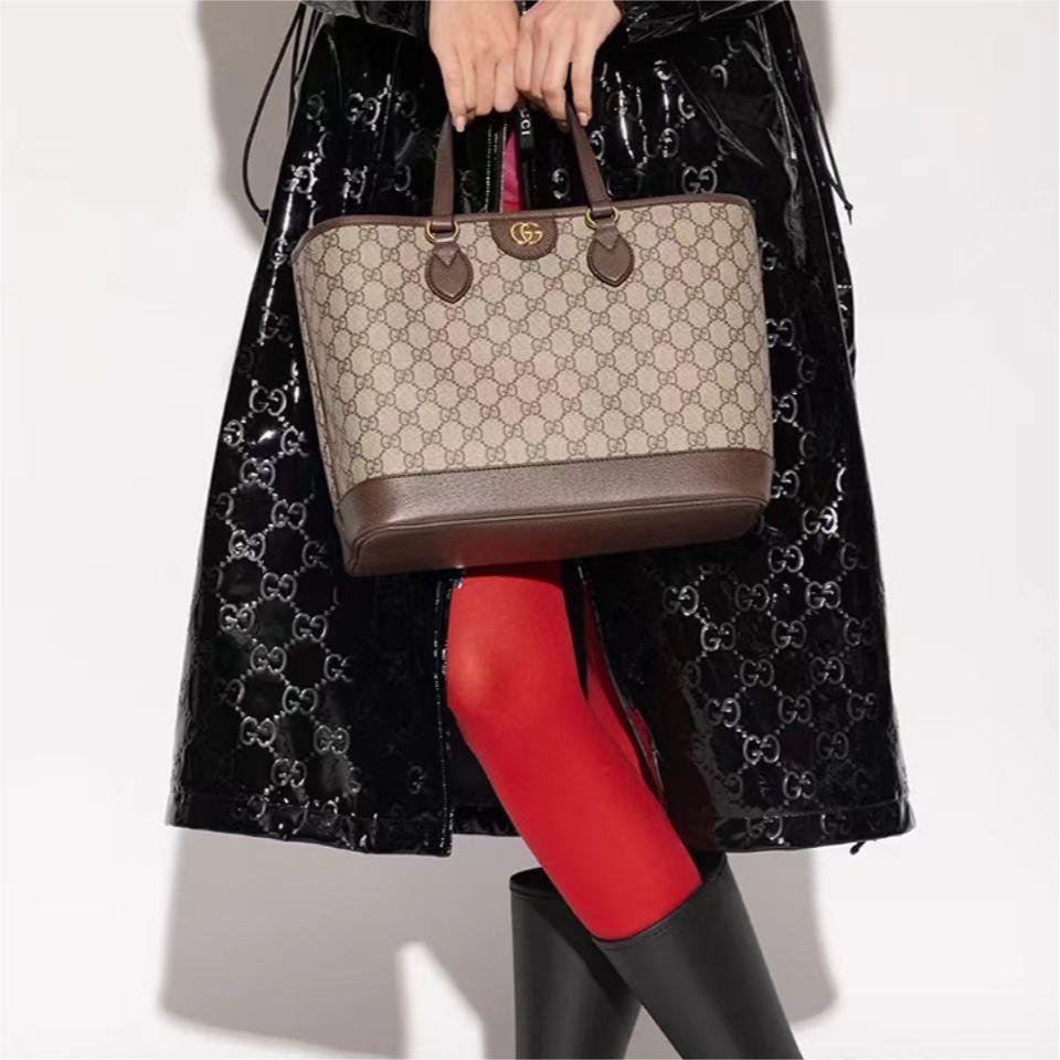 Gucci 古驰 Ophidia 双G徽标 帆布拼皮Tote包