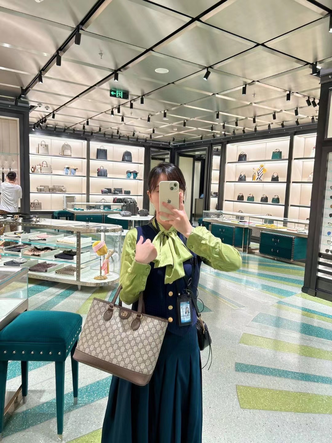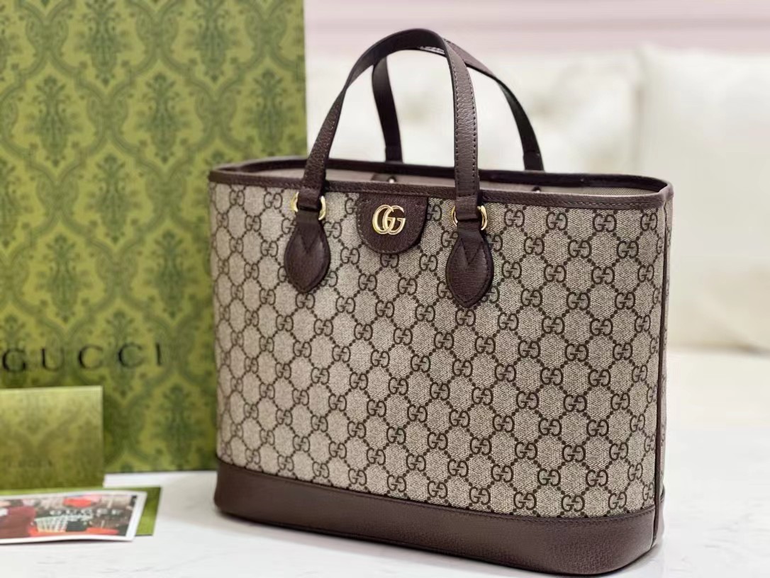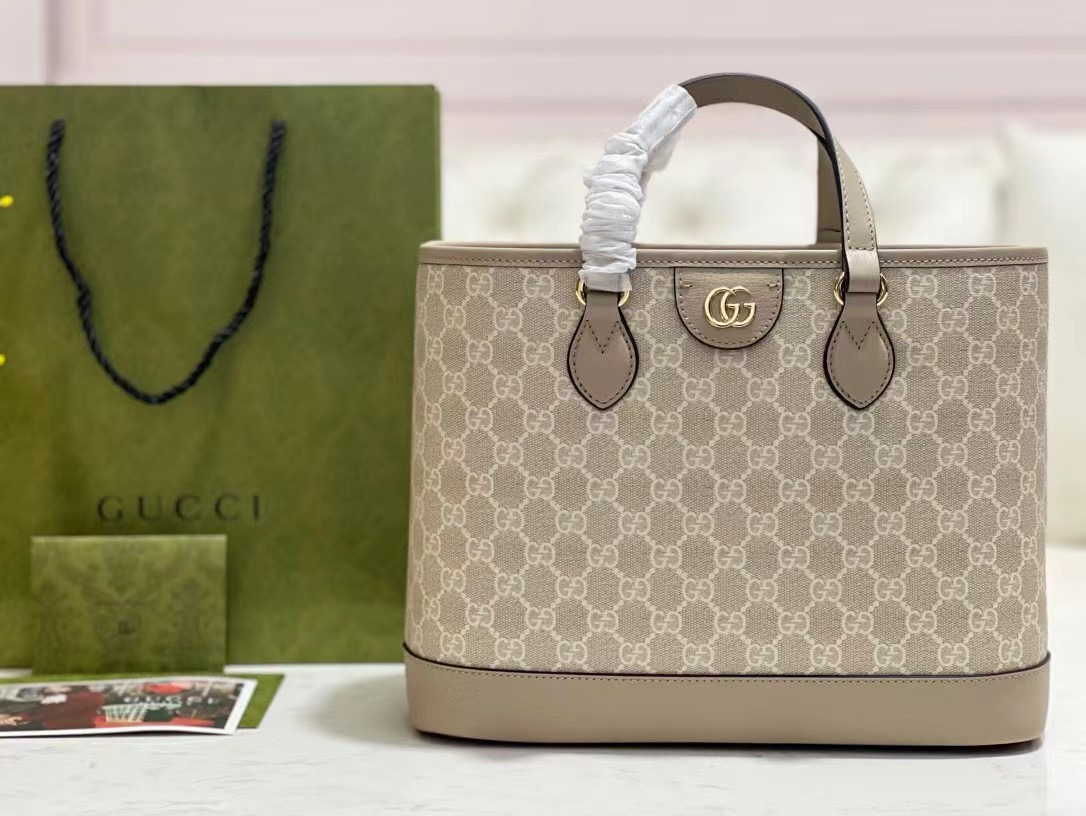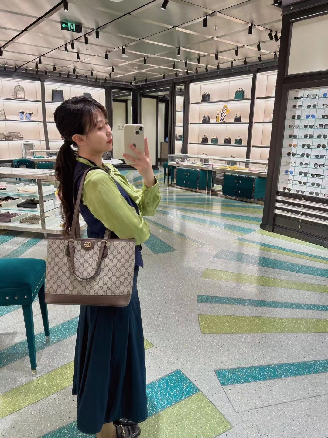 Gucci 古驰 Ophidia 双G徽标 帆布拼皮Tote包