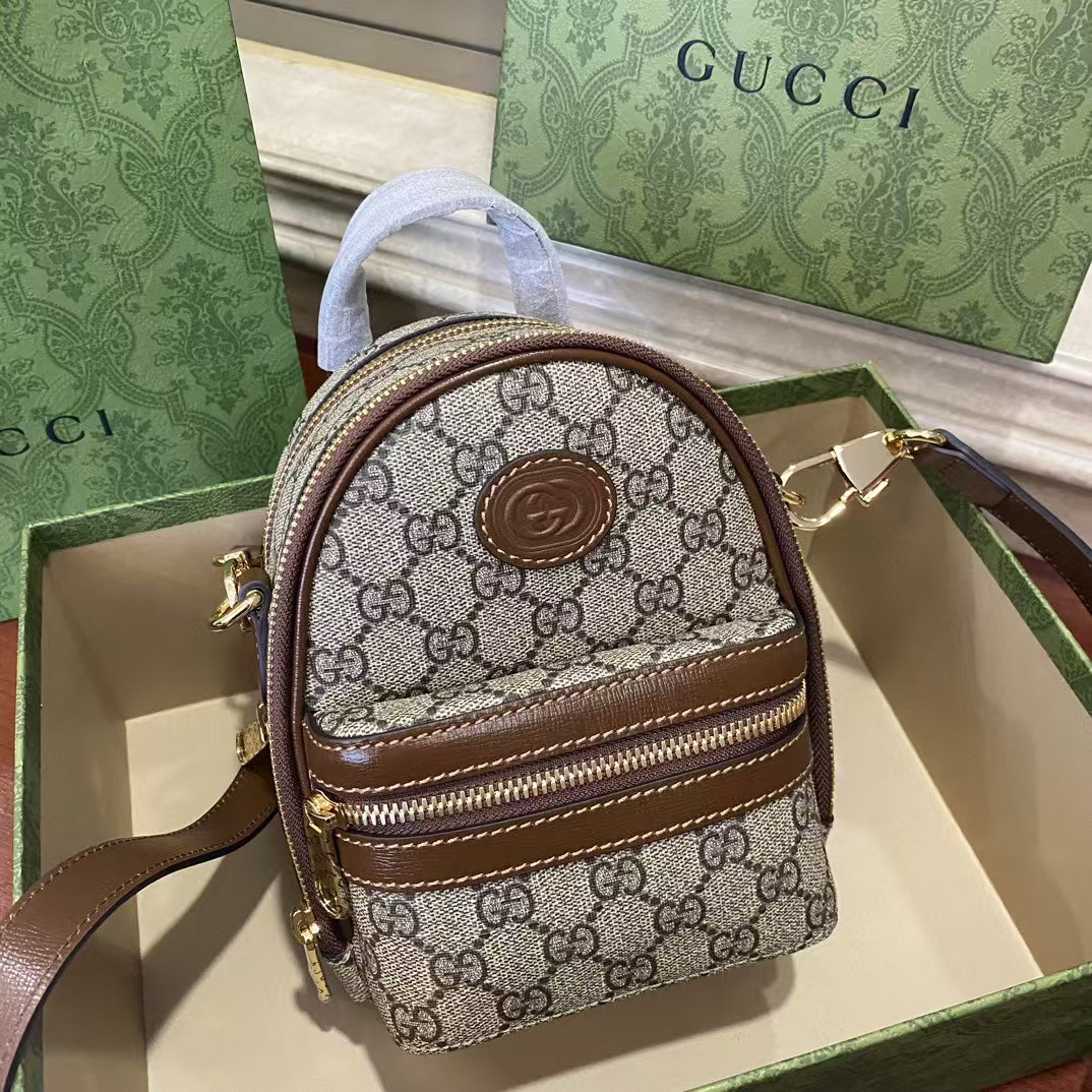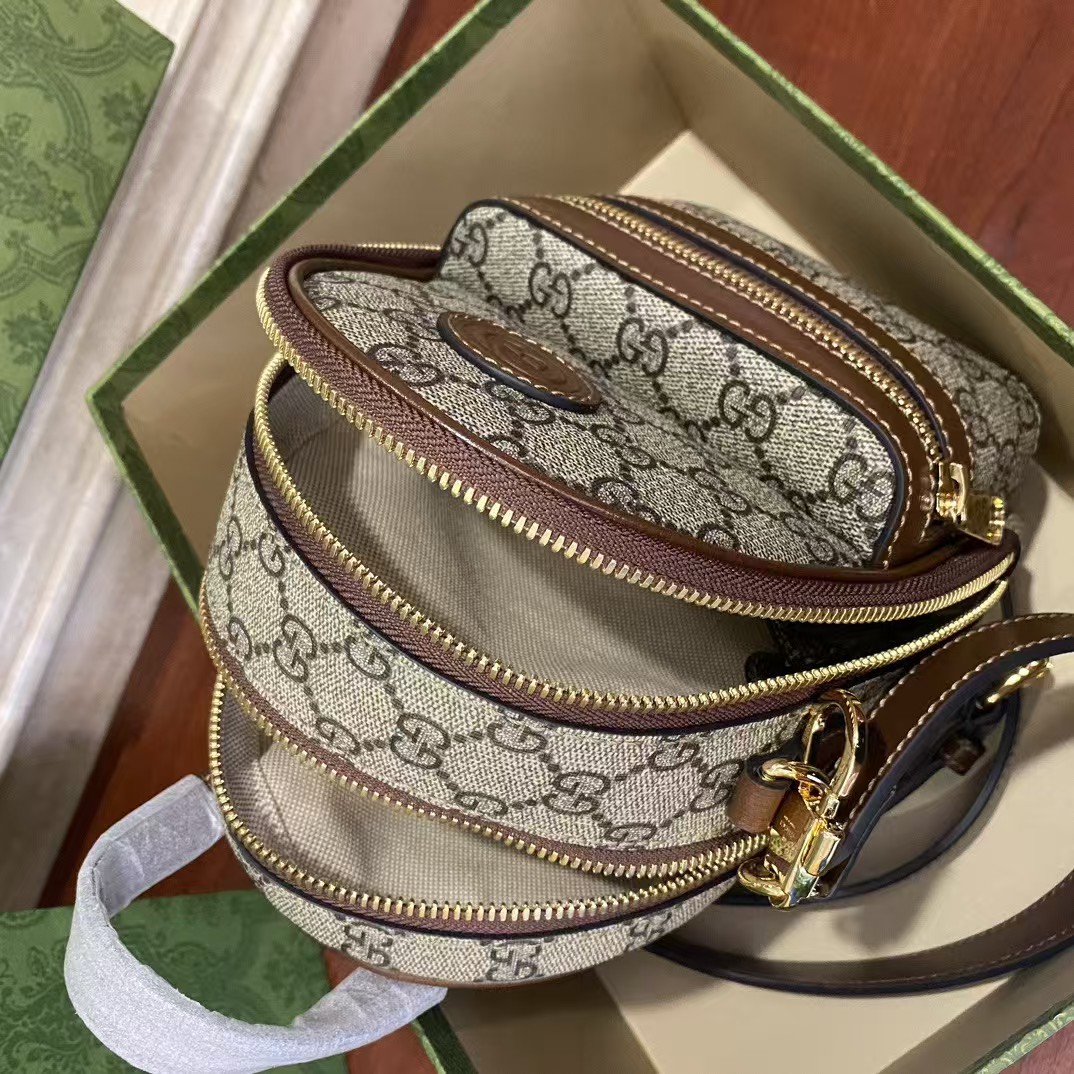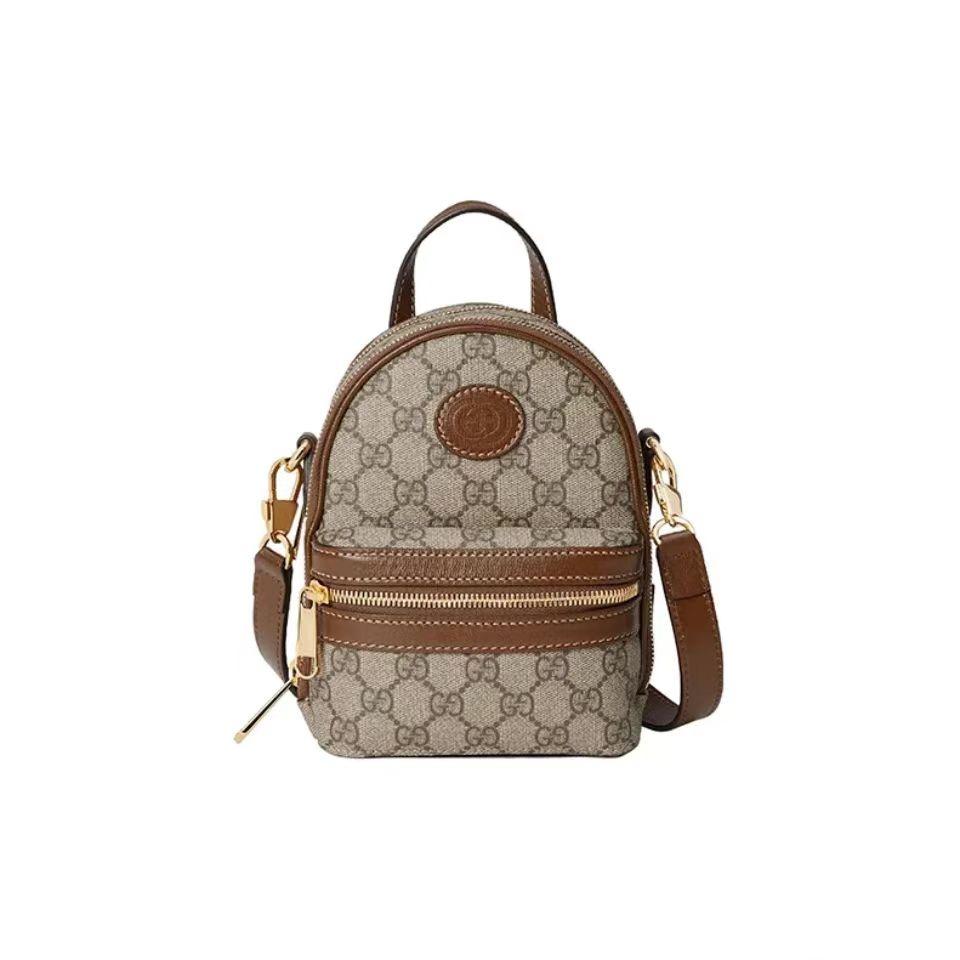 Gucci 古驰 老花LOGO 帆布拼皮革 双G多功能手袋