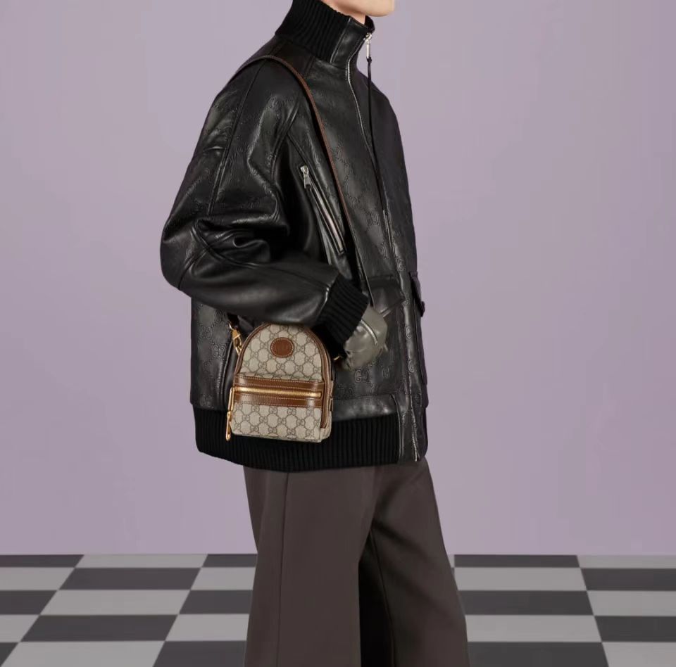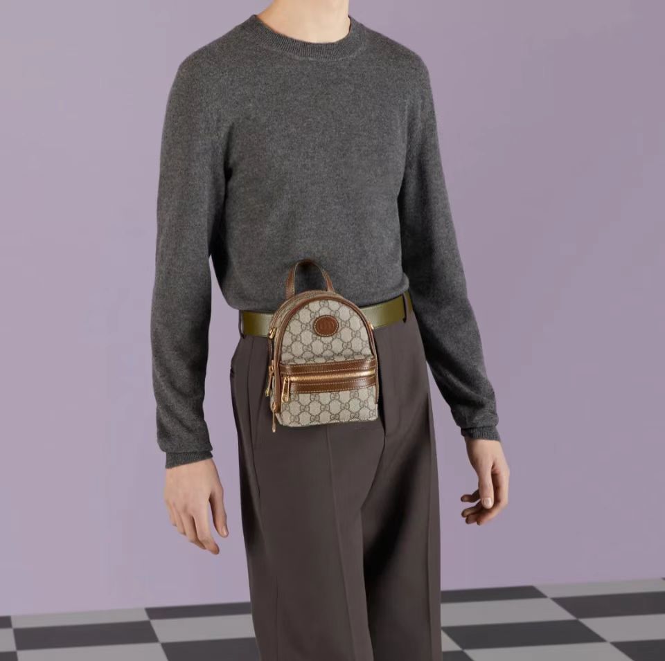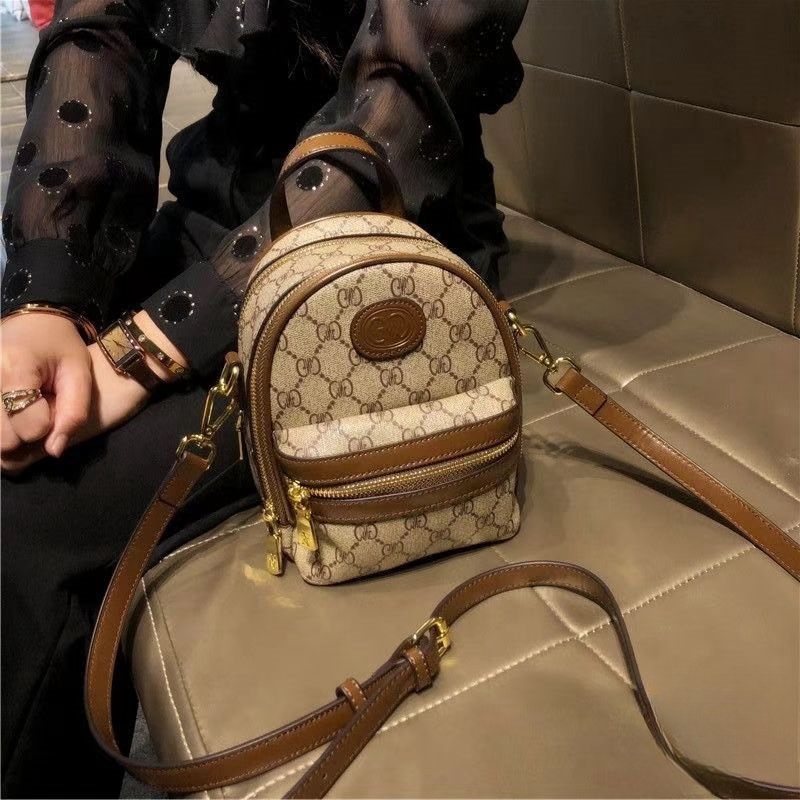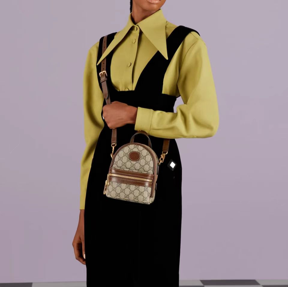 Gucci 古驰 老花LOGO 帆布拼皮革 双G多功能手袋