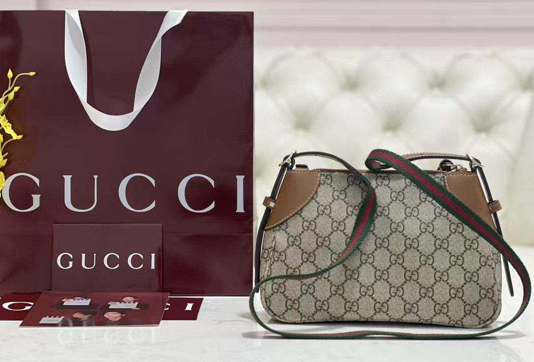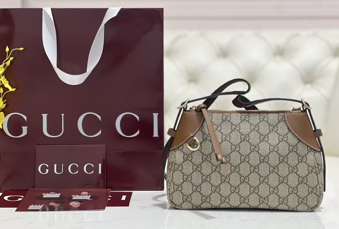 Gucci 古驰 Emblem 可调节肩带拉链开合字母图案 手提单肩包