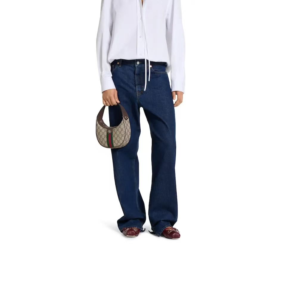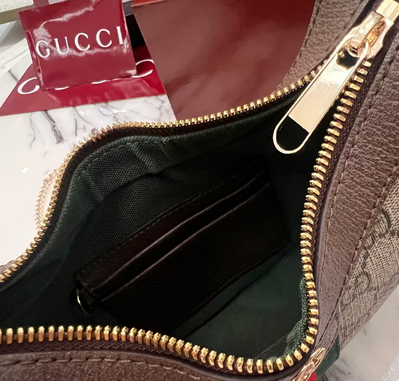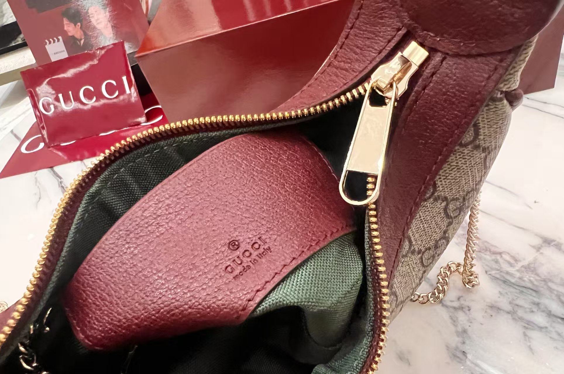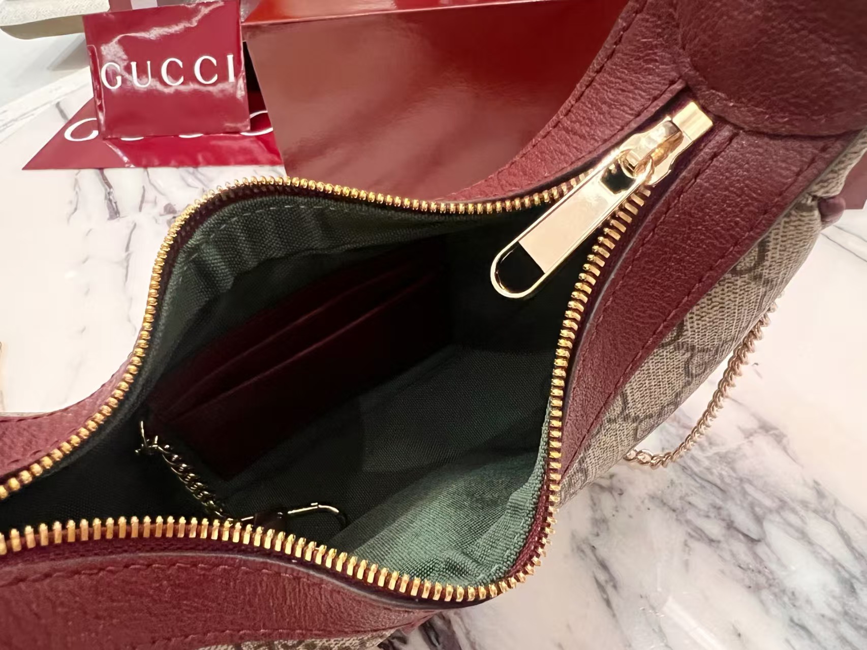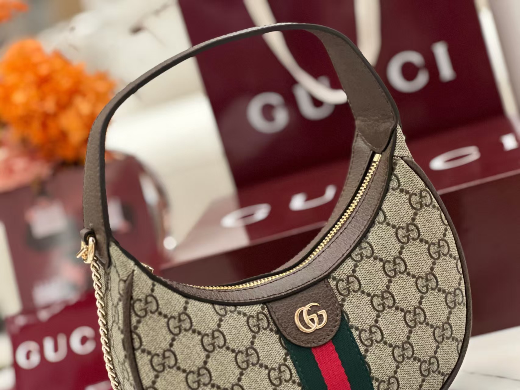 【介绍】 海外原单 Ophidia系列匠心演绎新颖廓形与功能,搭配标志性的米色和棕色配色,缔就质地柔软、风格时尚的包袋单品。这款新月造型肩背包配有一根雅致的链式包带。