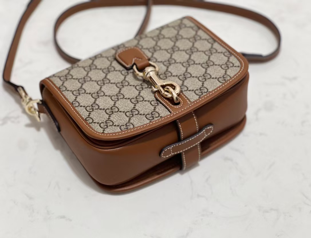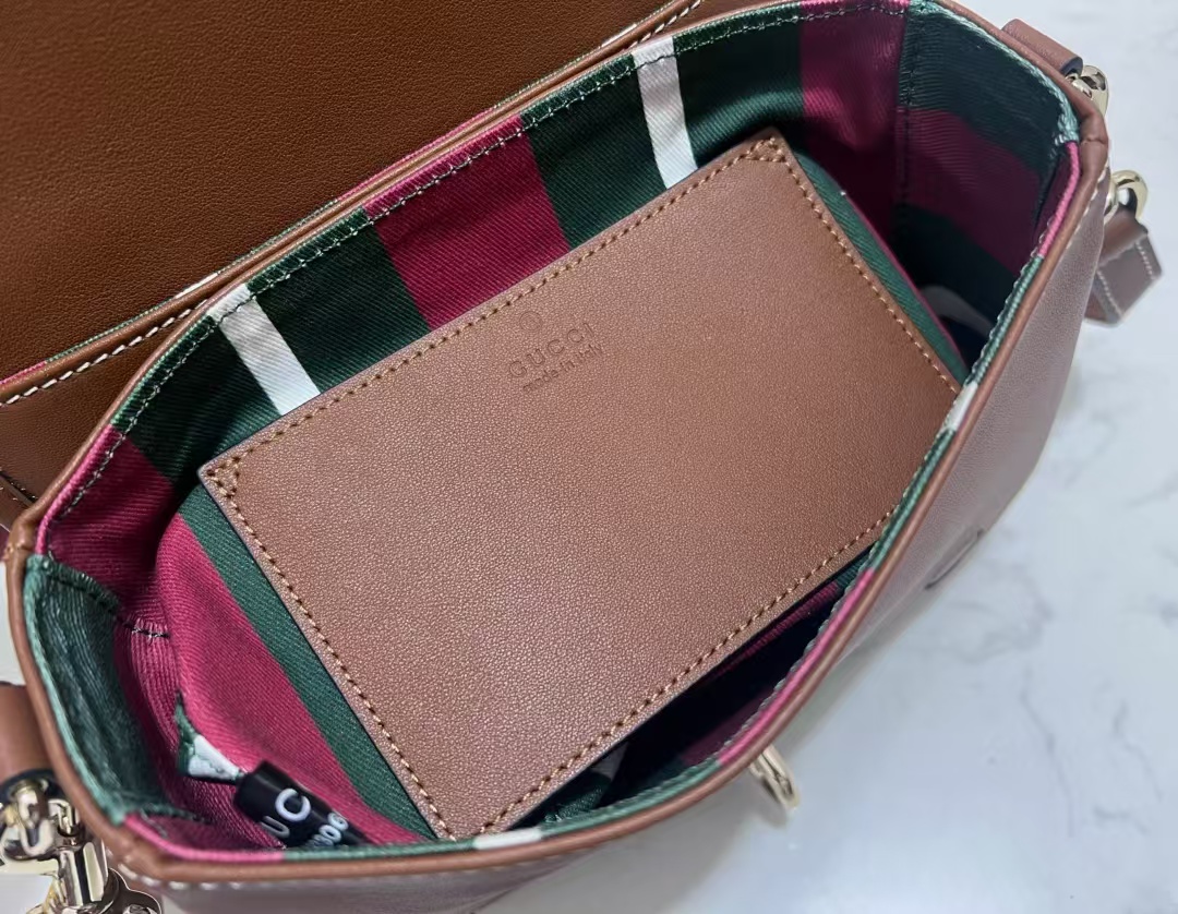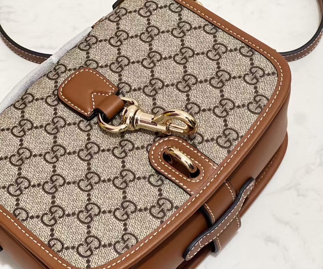 【介绍】 海外原单 GG Emblem系列迷你肩背包,全新GG Emblem系列焕新诠释品牌的隽永优雅风范和精湛工艺。这款迷你翻盖式肩背包精心搭配织带棉质衬里,采用浅金色钩扣设计。