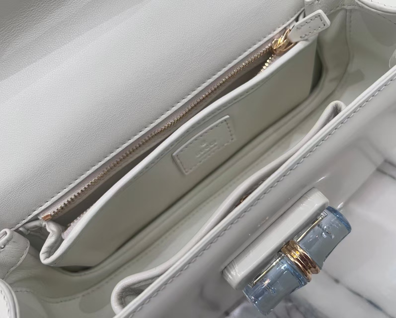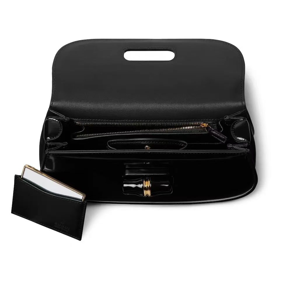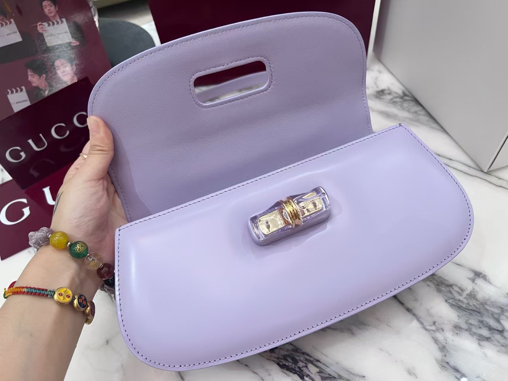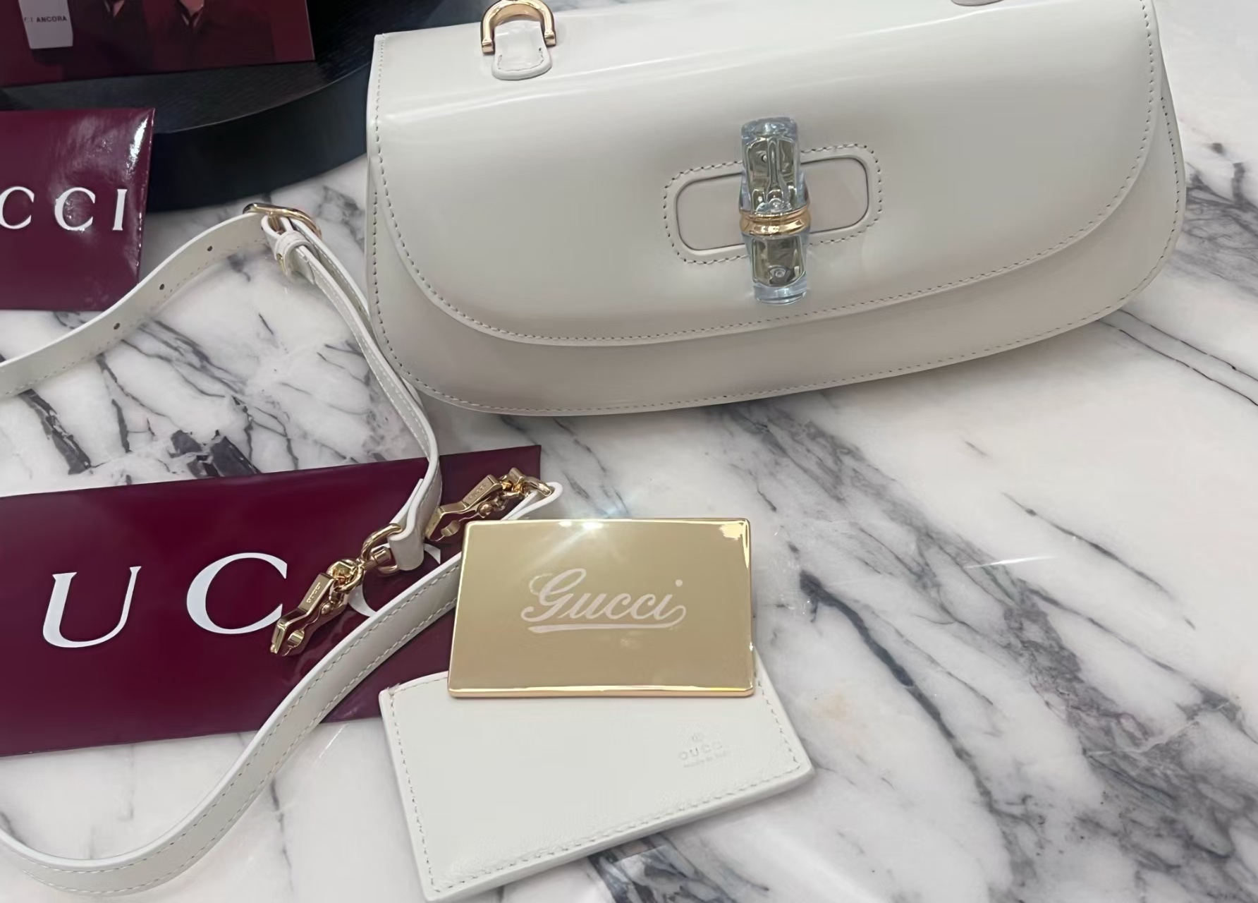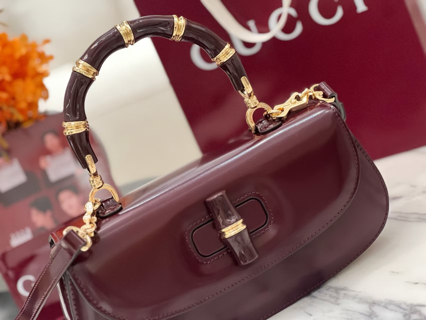 【介绍】 海外原单 这款小号手提包以树脂和黄铜细节焕新演绎标志性竹节造型配件,为2025春夏系列再添亮眼力作。Gucci Bamboo Diva手提包能为各种造型增添一抹亮色。