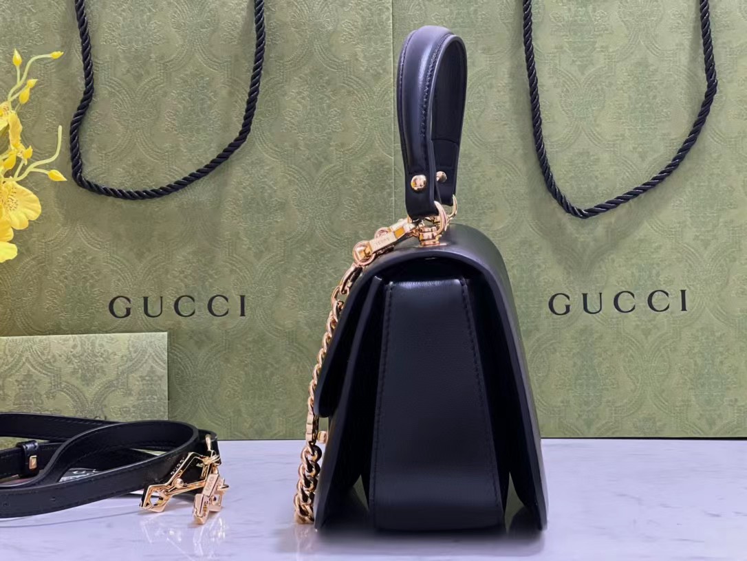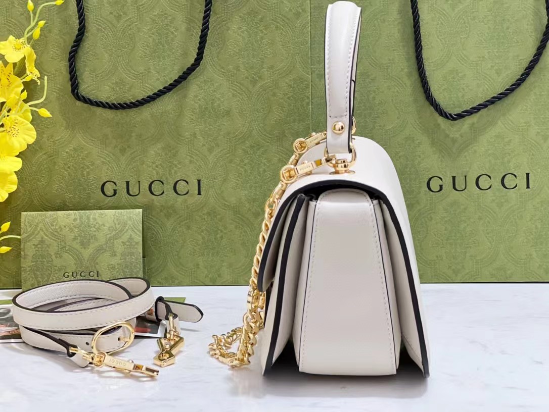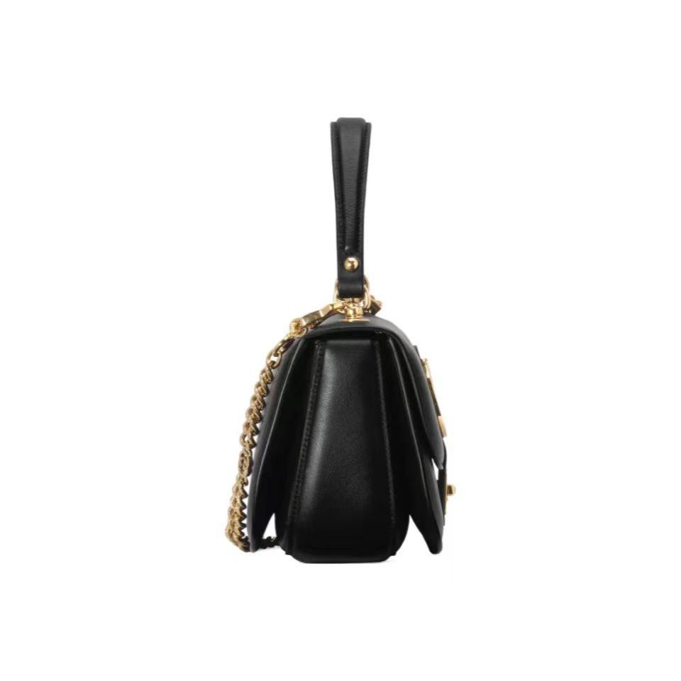 这款小号手提包从品牌典藏元素中汲取灵感,以几何造型焕新演绎圆形互扣式双G标识。整款设计时尚百搭,为金属链带和搭扣呈现的复古美学元素增添现代