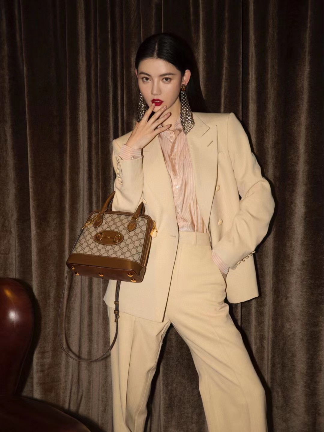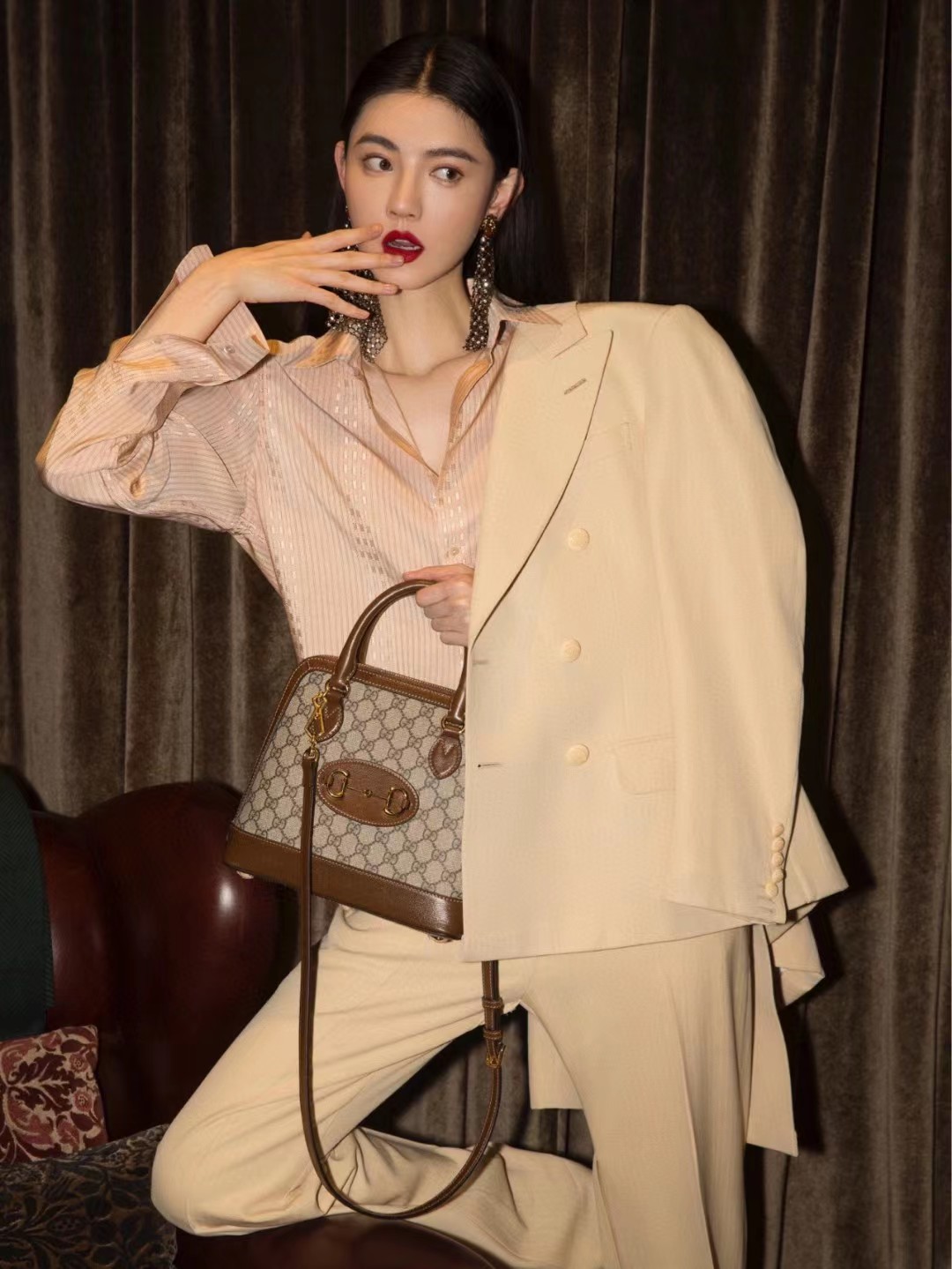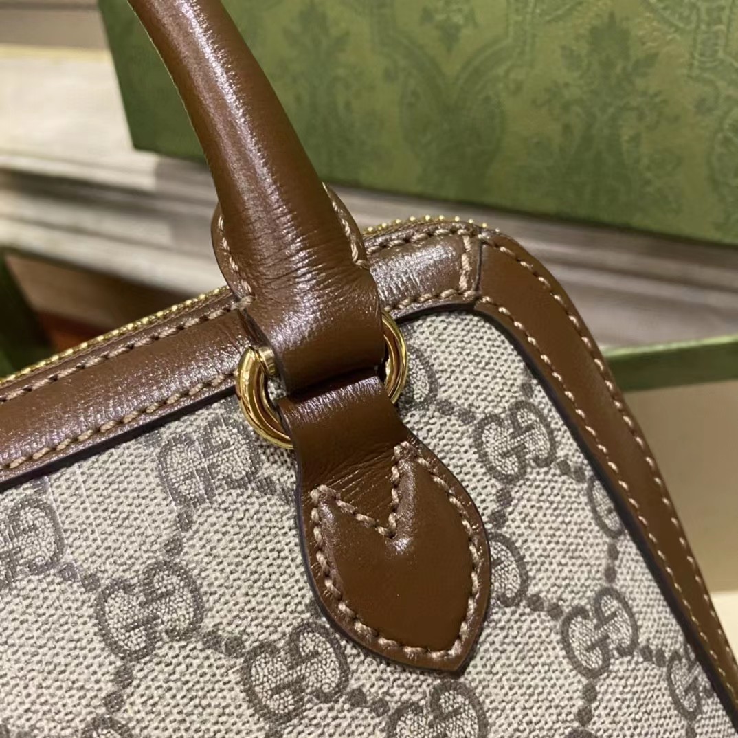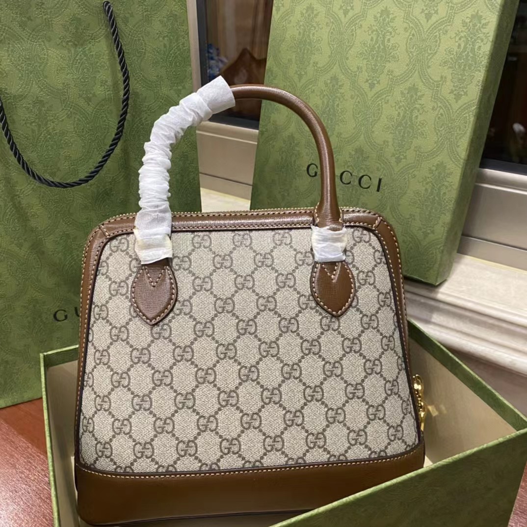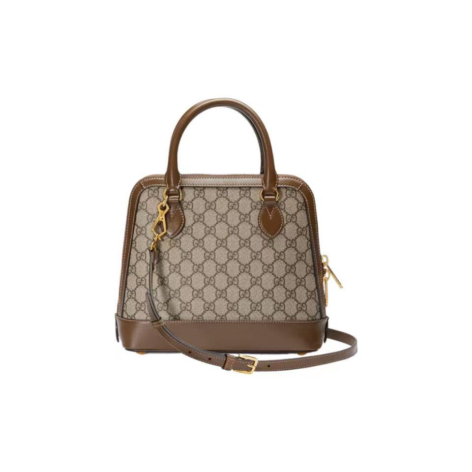 Gucci马衔扣1955系列的新成员,这款手提包采用品牌经典双G图案帆布制作,饰以鲜明的棕色皮革细节。该系列延续在六十余年前经典包袋上初次使用的设计细节,注入现代时尚精髓,彰显马衔扣的别致魅力。作为Gucci的经典传承之一,由双环和长条形两个元素构成的这一设计图案灵感源自品牌的马术本源,至今已经成为品牌十分耀眼的标志性元素之一。