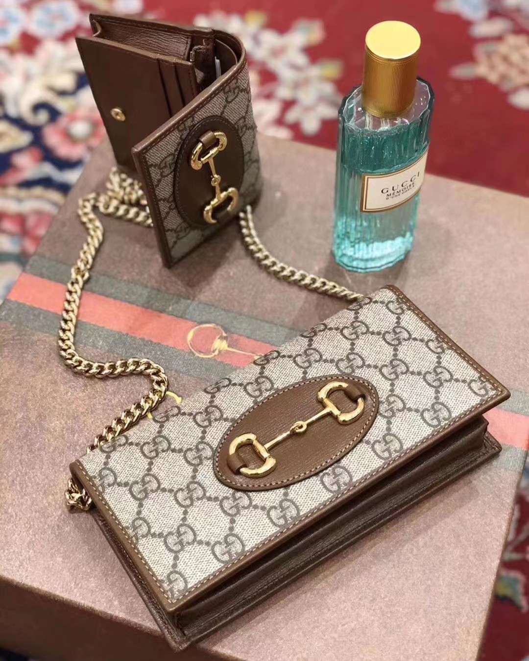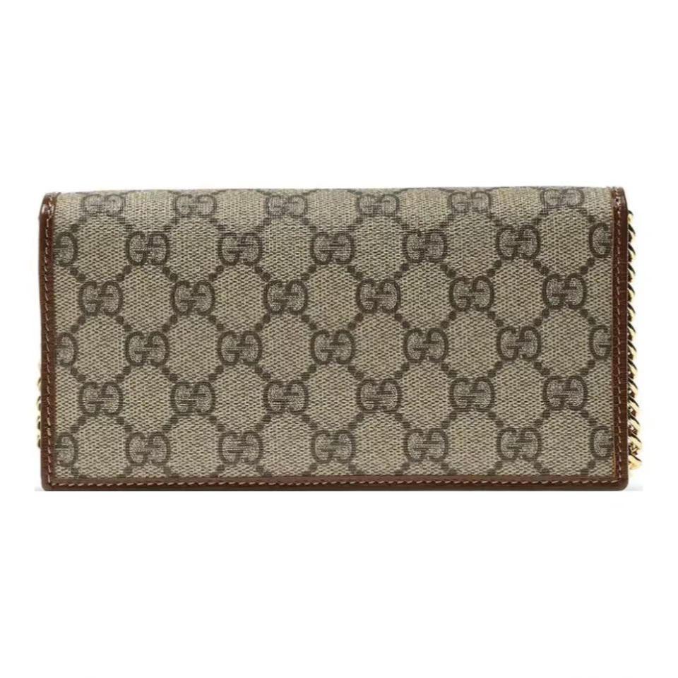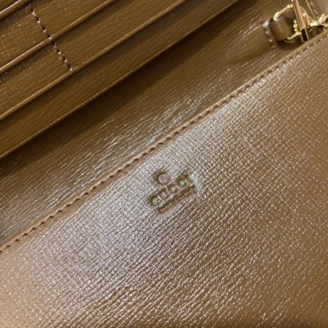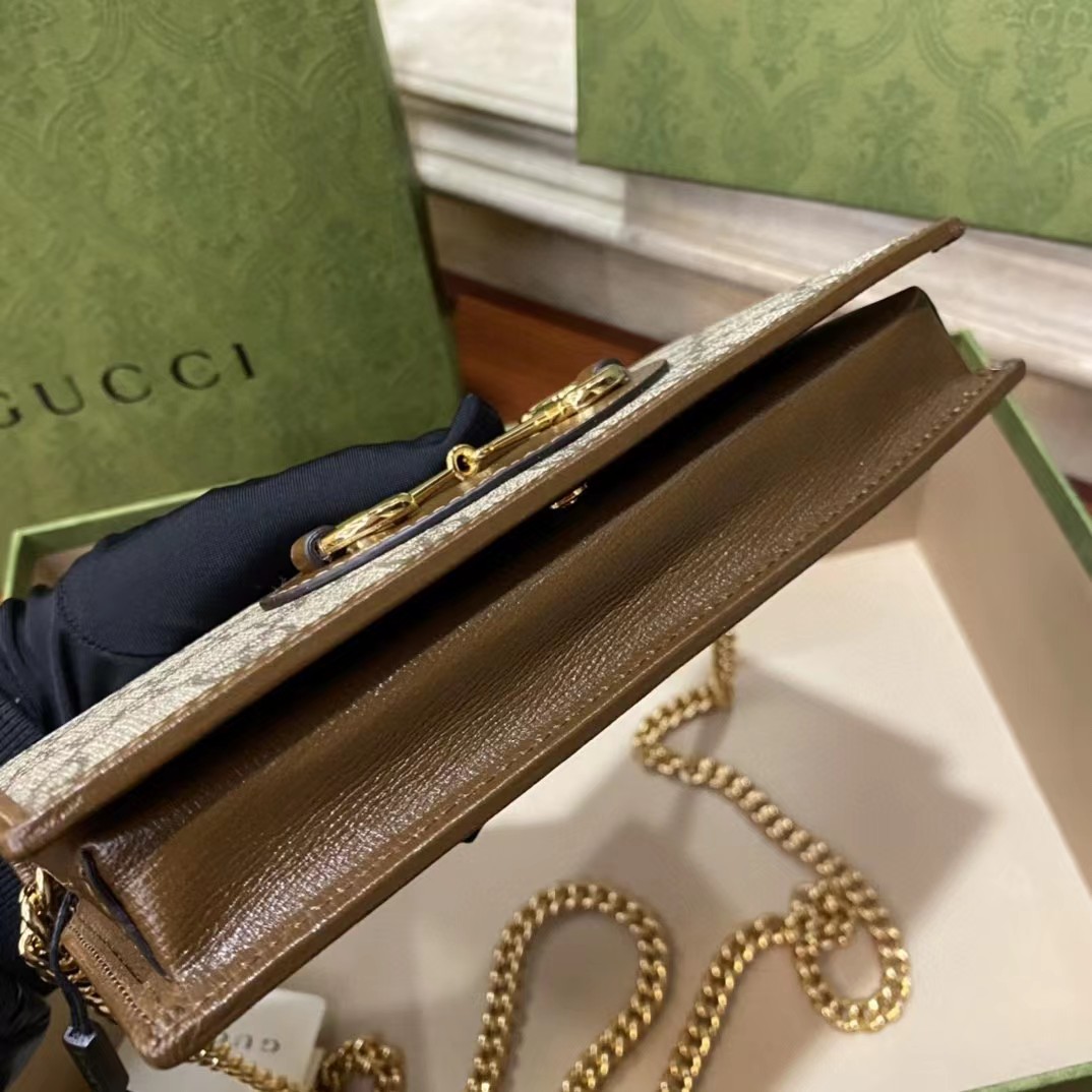 Gucci 古驰 原厂皮!1955马衔扣系列,链条包。采用GG Supreme高级人造革,配以云纹织物和麂皮衬里,海外五金,精制而成!尺寸: 长19~高10~宽4cm。 款号:621892 颜色:pVC啡色配棕色皮