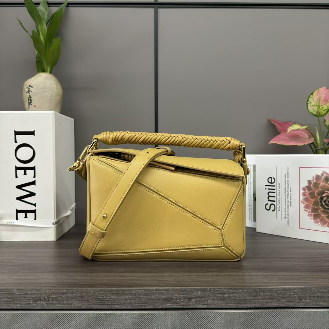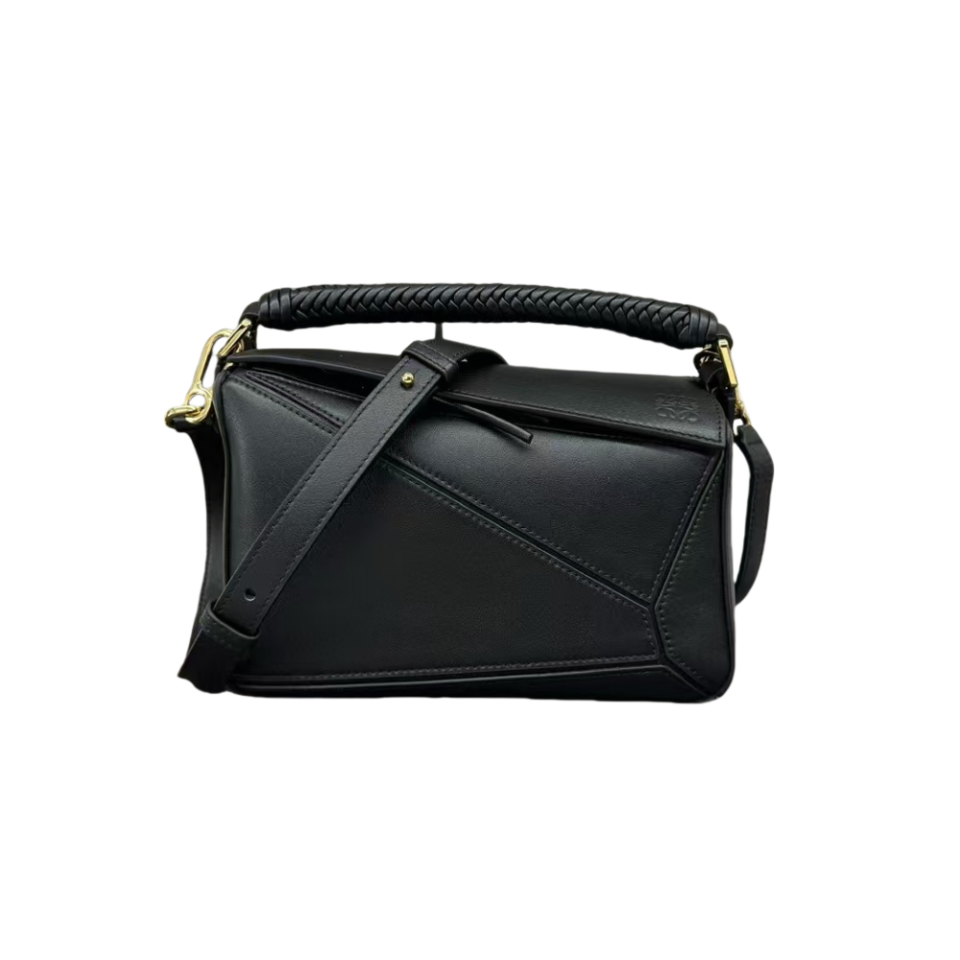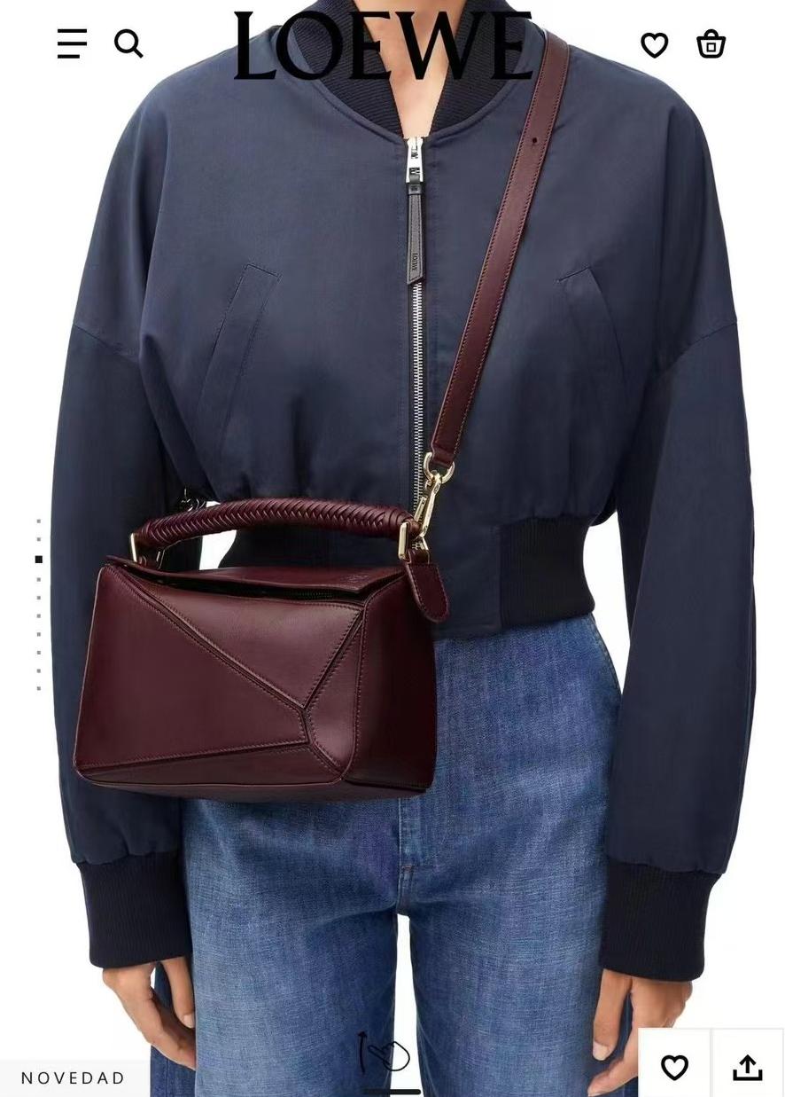 【介绍】 新款Puzzle 奢华编织手袋,牛皮革Puzzle 手袋是创意总监乔纳森·安德(JonathanAnderson)为LOEWE推出的首次亮相手提包*长方体形状和精确的切割技术创造了 Puzzle 独特的几何线条*采用纳帕牛皮革制成*带有手工编织的顶部提手。肩背或斜挎*肩带可调节,可拆卸*一个绒面内部插袋和一个外部后方拉链口袋*牛皮革拉链头*人字纹棉