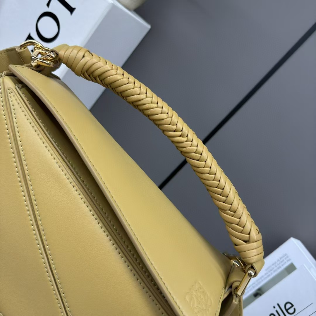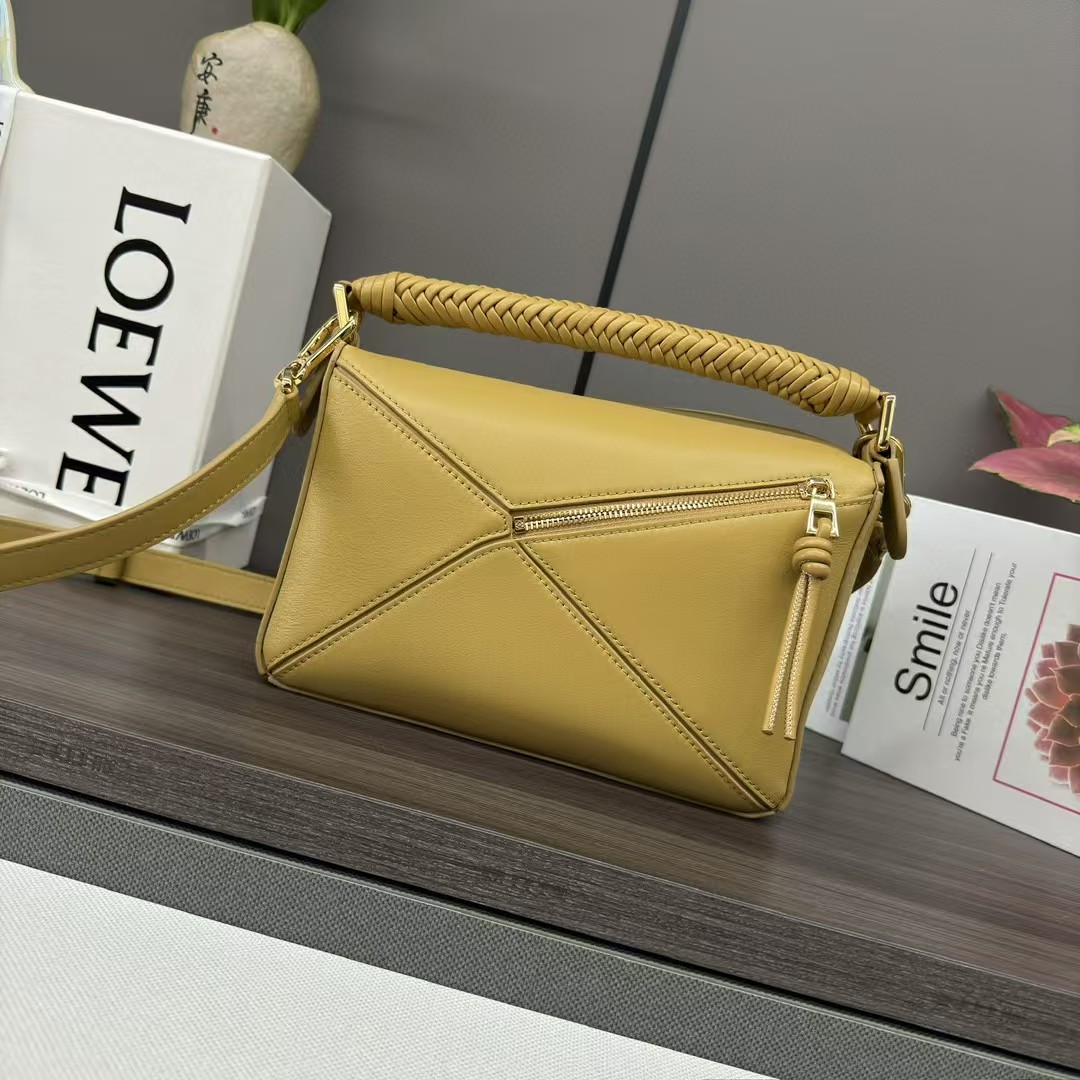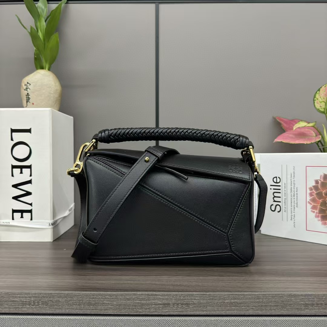 【介绍】 新款Puzzle 奢华编织手袋,牛皮革Puzzle 手袋是创意总监乔纳森·安德(JonathanAnderson)为LOEWE推出的首次亮相手提包*长方体形状和精确的切割技术创造了 Puzzle 独特的几何线条*采用纳帕牛皮革制成*带有手工编织的顶部提手。肩背或斜挎*肩带可调节,可拆卸*一个绒面内部插袋和一个外部后方拉链口袋*牛皮革拉链头*人字纹棉