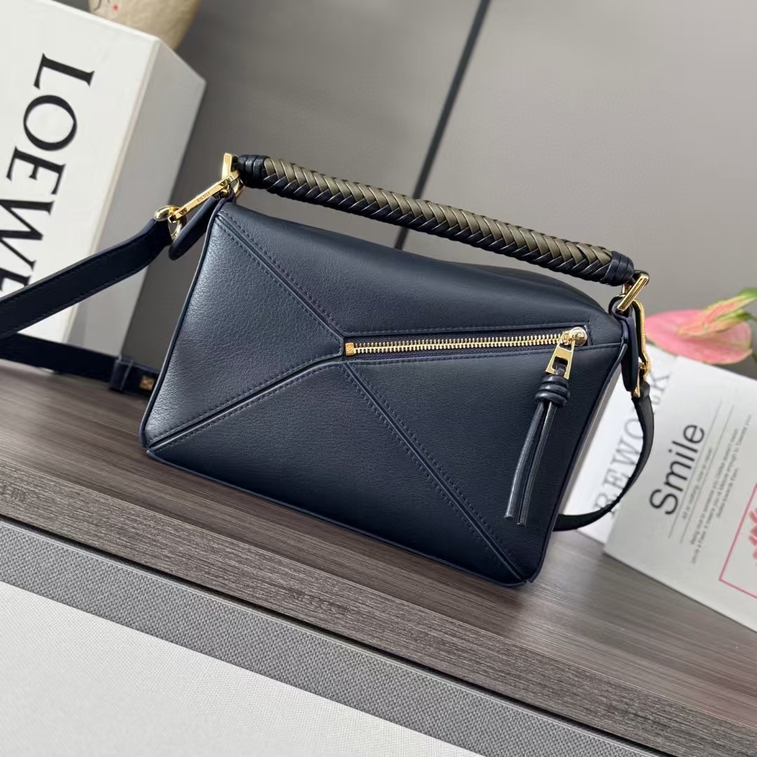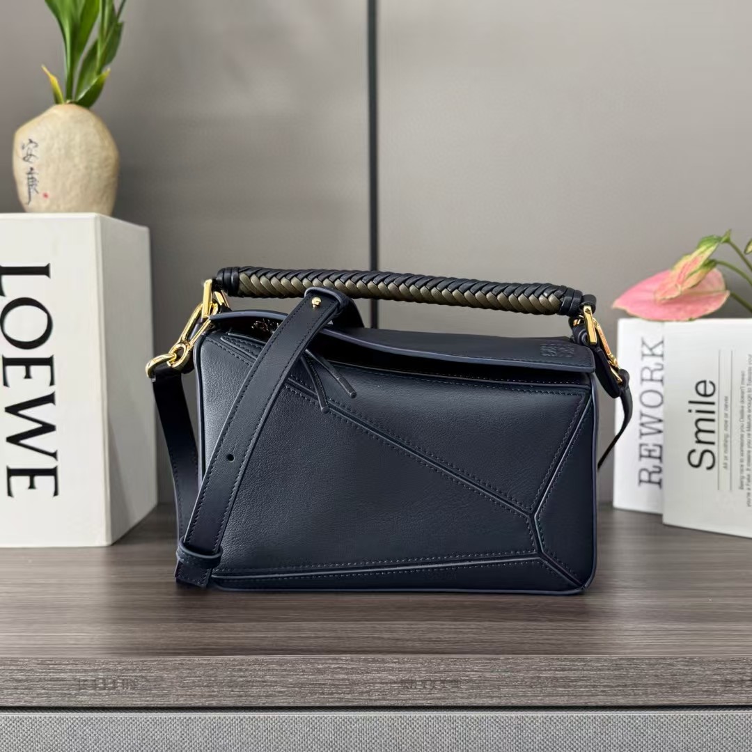 LOEWE 罗意威 光滑牛皮革 Puzzle 奢华编织手袋 深墨水色