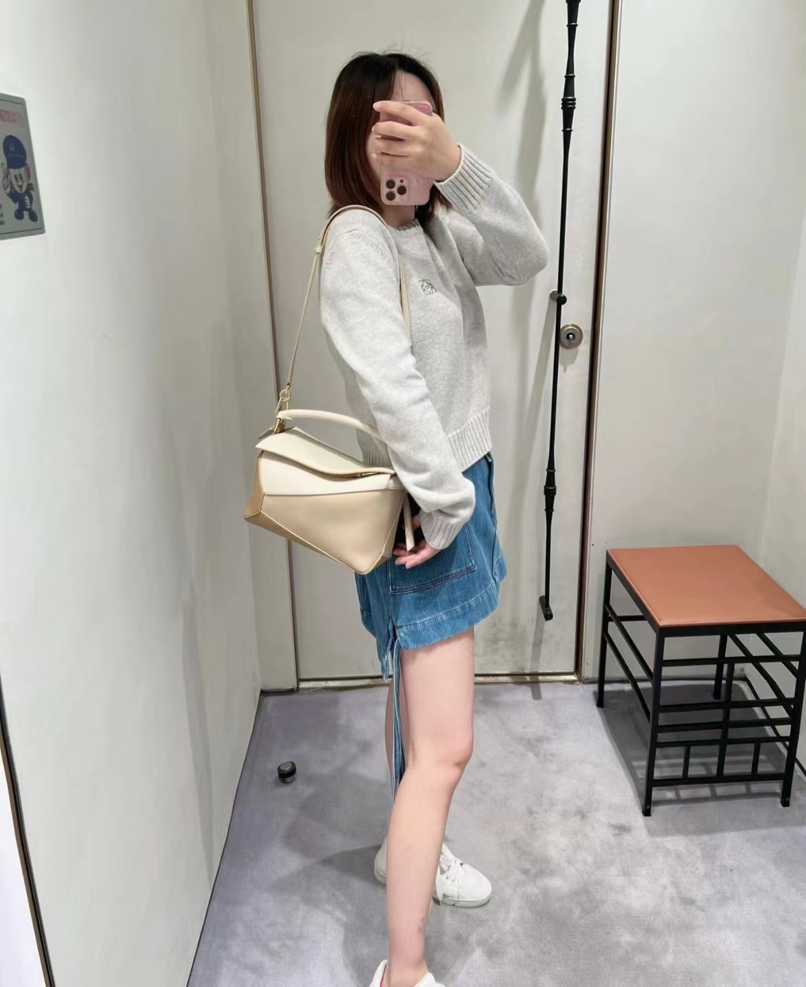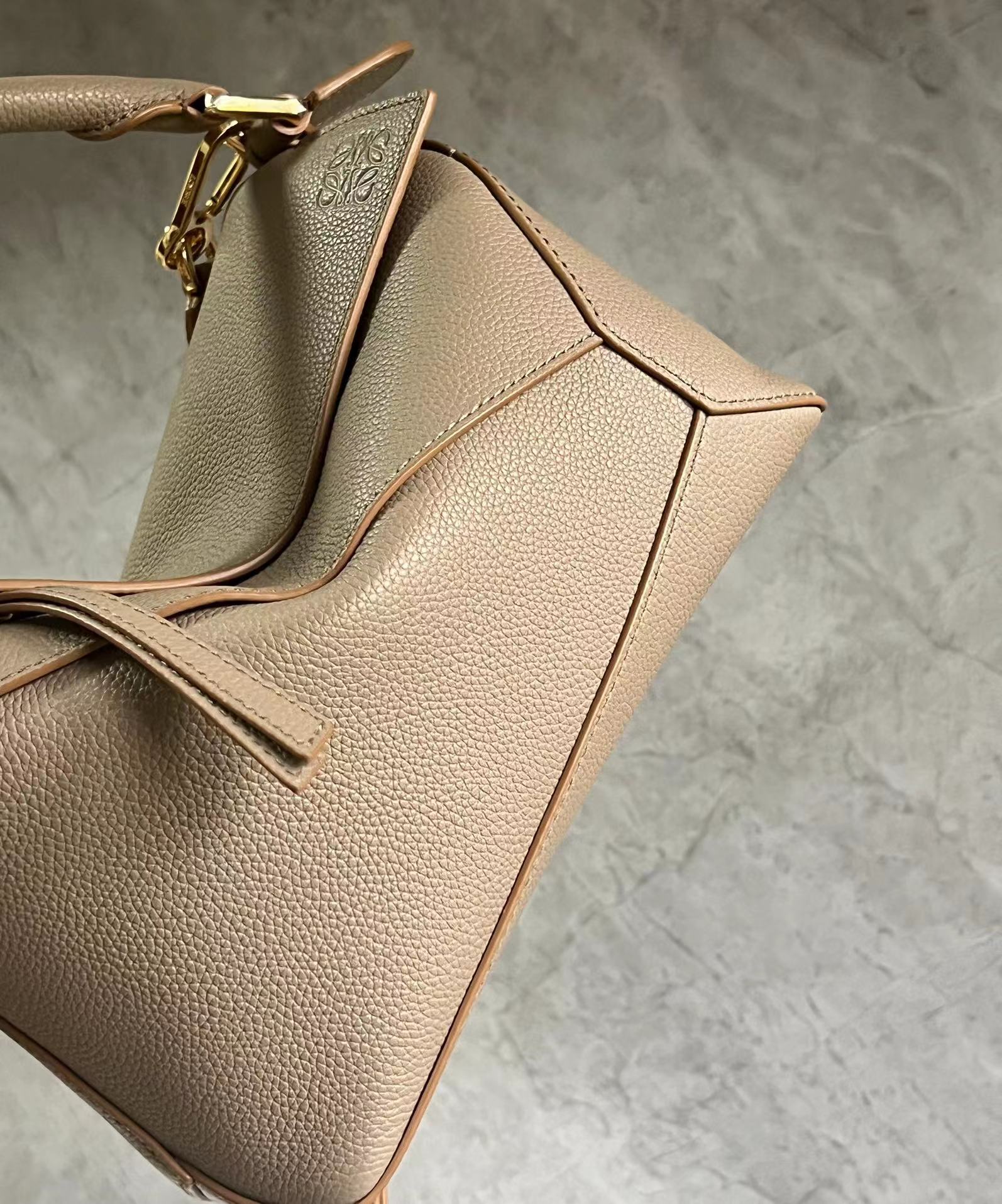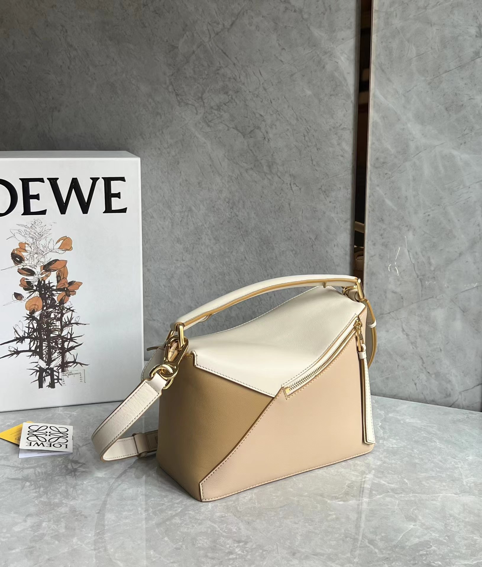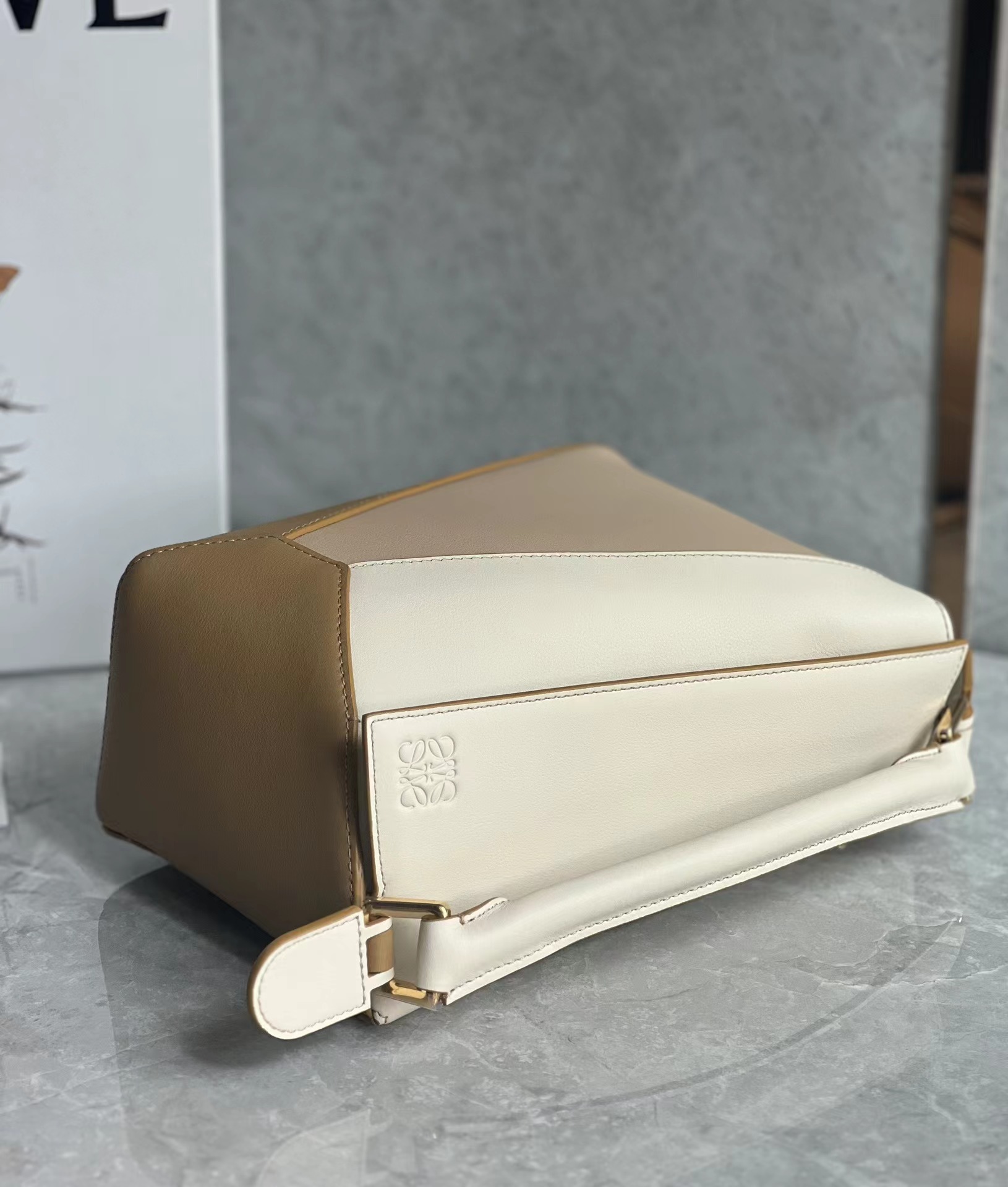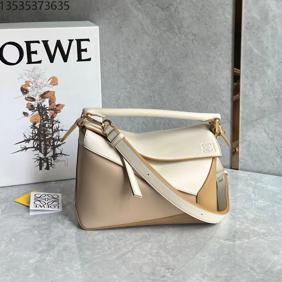 LOEWE罗意威 Puzzle Edge 选用进口荔面牛皮 ,全新版本整个包身都是沙色拼接 包包自重很轻 容量非常可观 实用百搭又方便 出行,超级百搭色是必入款~小号