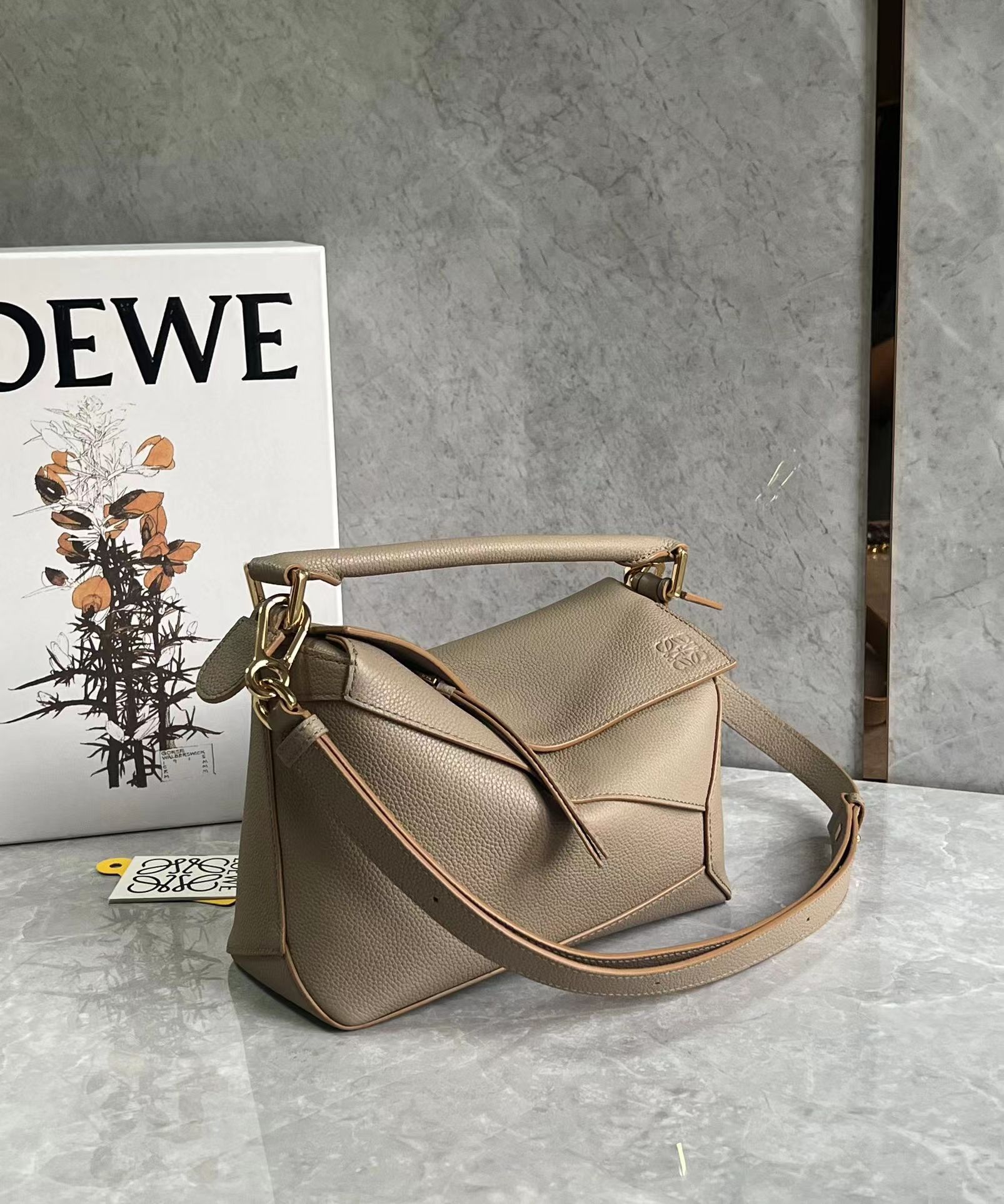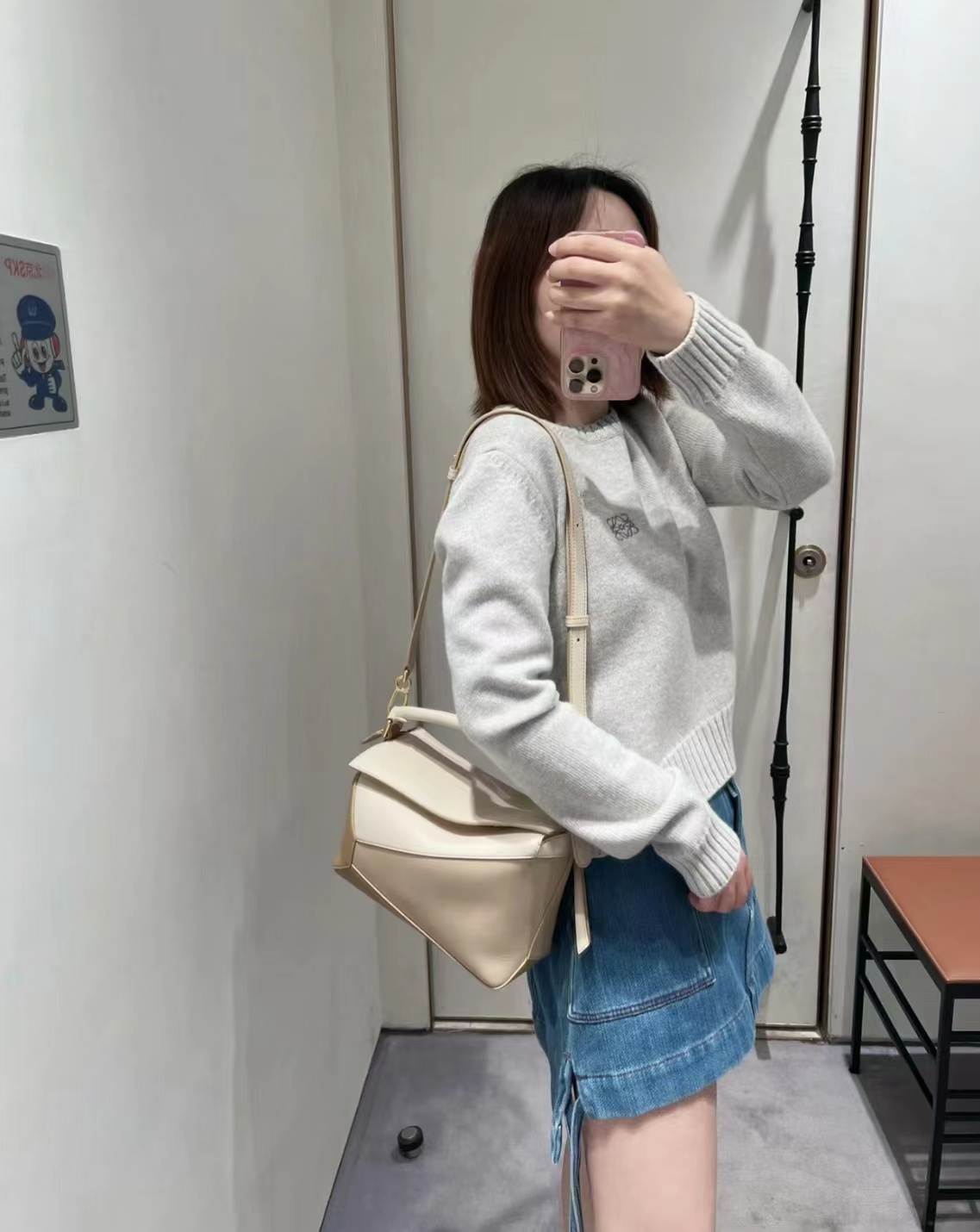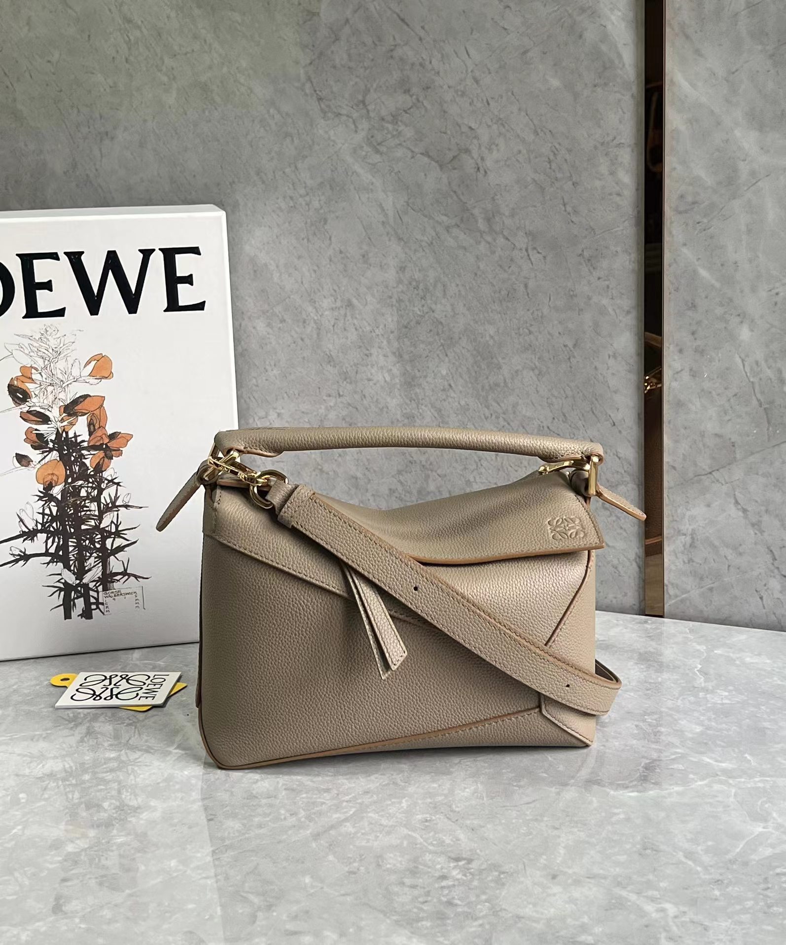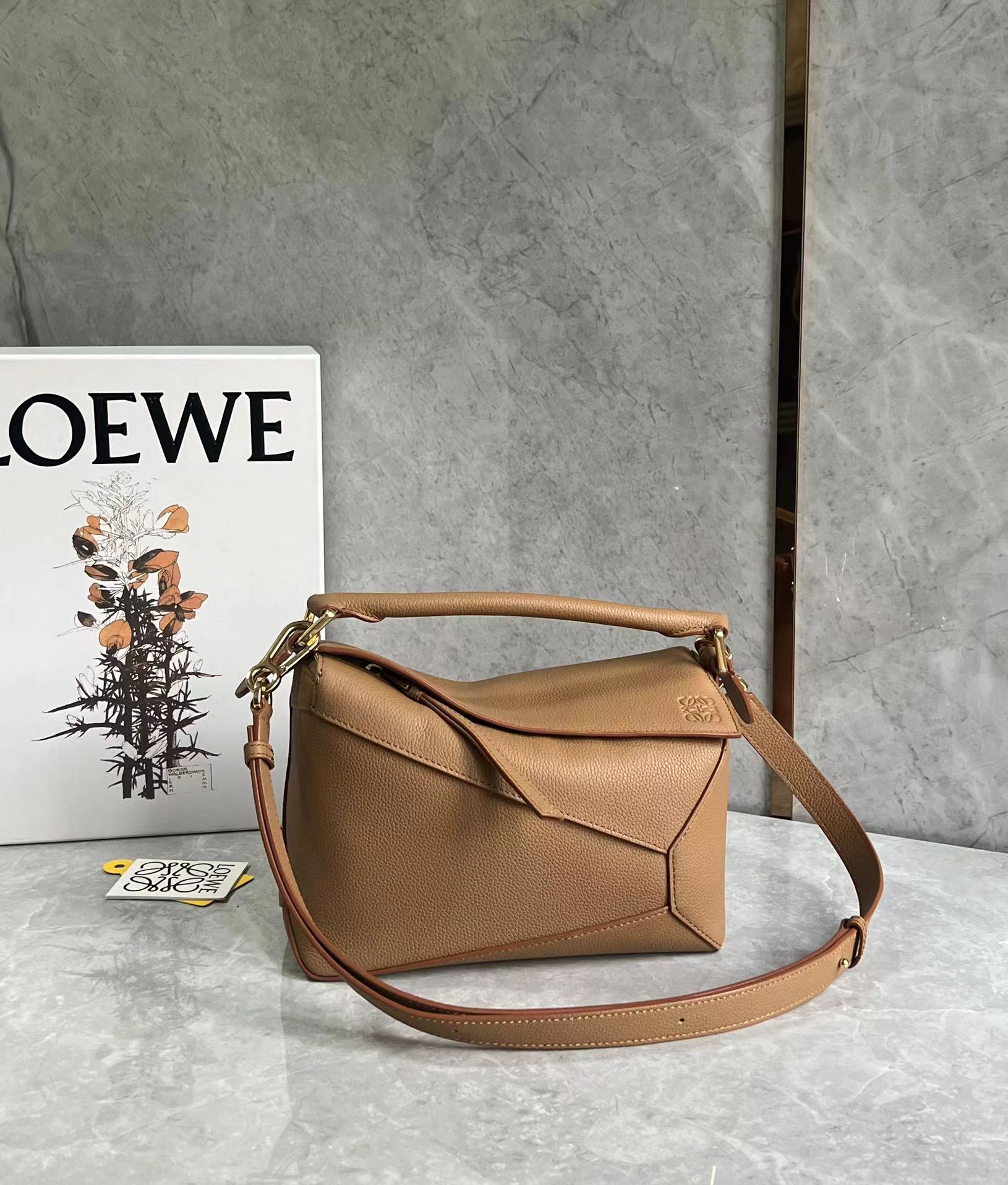 LOEWE罗意威 Puzzle Edge 选用进口荔面牛皮 ,全新版本整个包身都是沙色拼接 包包自重很轻 容量非常可观 实用百搭又方便 出行,超级百搭色是必入款~小号