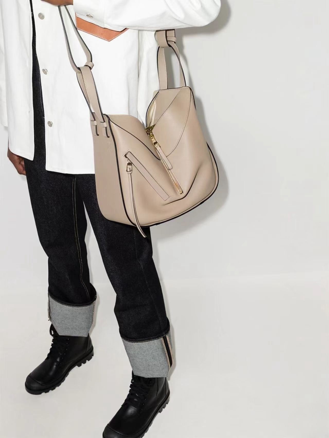 罗意威 Hammock bag吊床包设计新颖百变 可以根据需要装东西大小来调整外形、大容量、单肩、斜挎、手拎、N种背法,上身比例都恰到好处一包多用 无所不能!无论富有光泽的平纹 还是饱满柔软的粒面牛皮 都特显高级 更致命的是 每个颜色都搭配得很好看 超适合街拍 凹造型之余还特能装分分钟能将你瞬间虏获!
