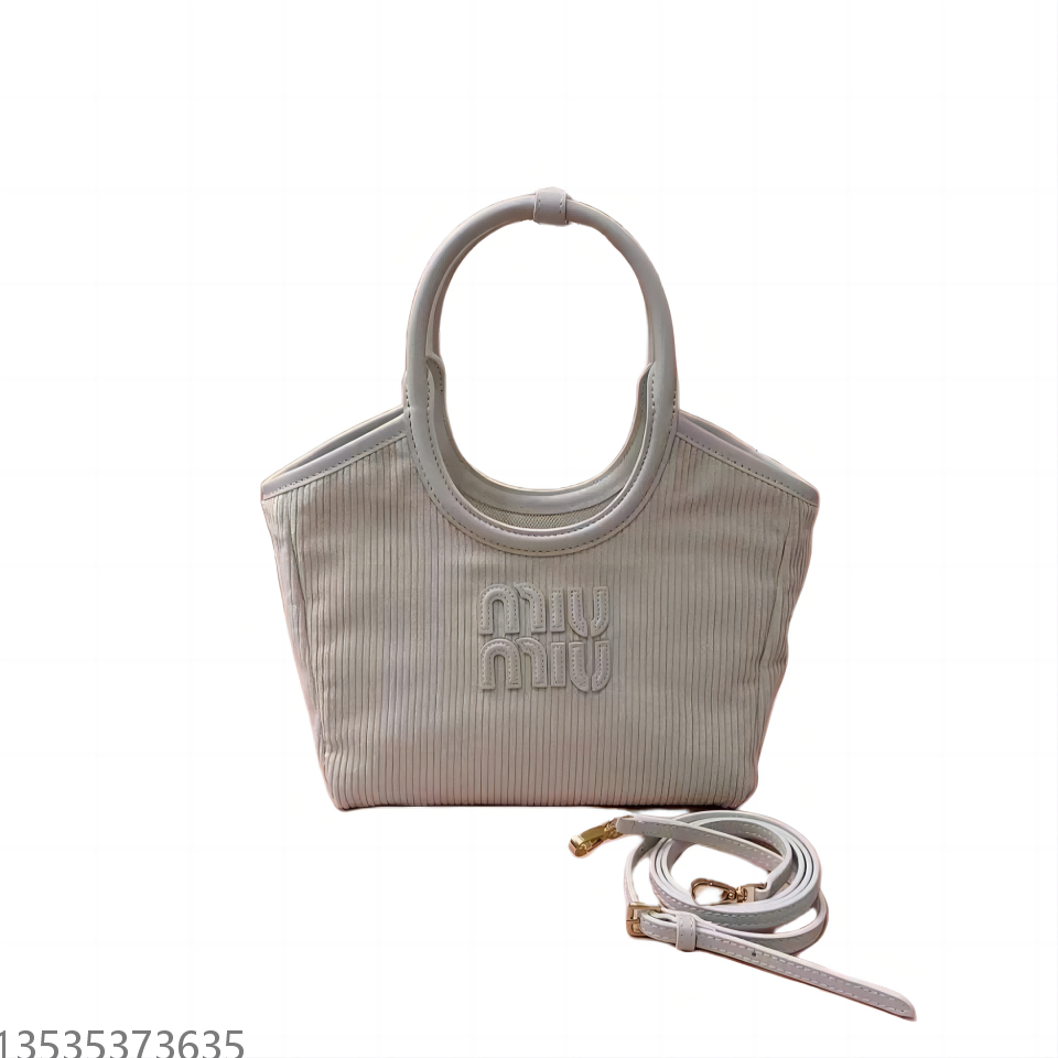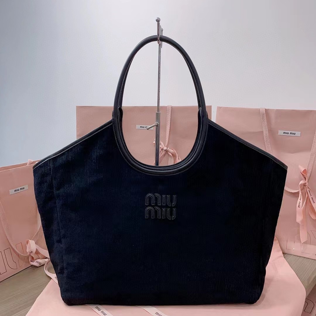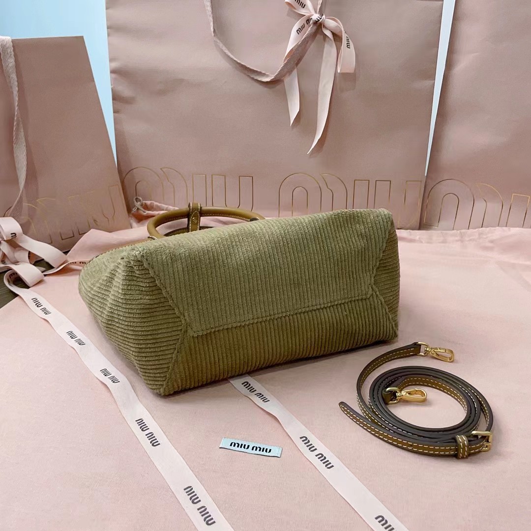 【MiuMiu缪缪】新款伊势丹限定托特包,今年绝对爆款式,全新限定版灯芯绒面料,搭配上乘的皮革质感高级,包身软而不塌,小尺寸设计更加精致,气质随性慵懒,日常出街背它回头率百分百,手工缝制皮面Logo标志,内里全新麻布里,配两个拉链式口袋,可调节皮革长肩带!
