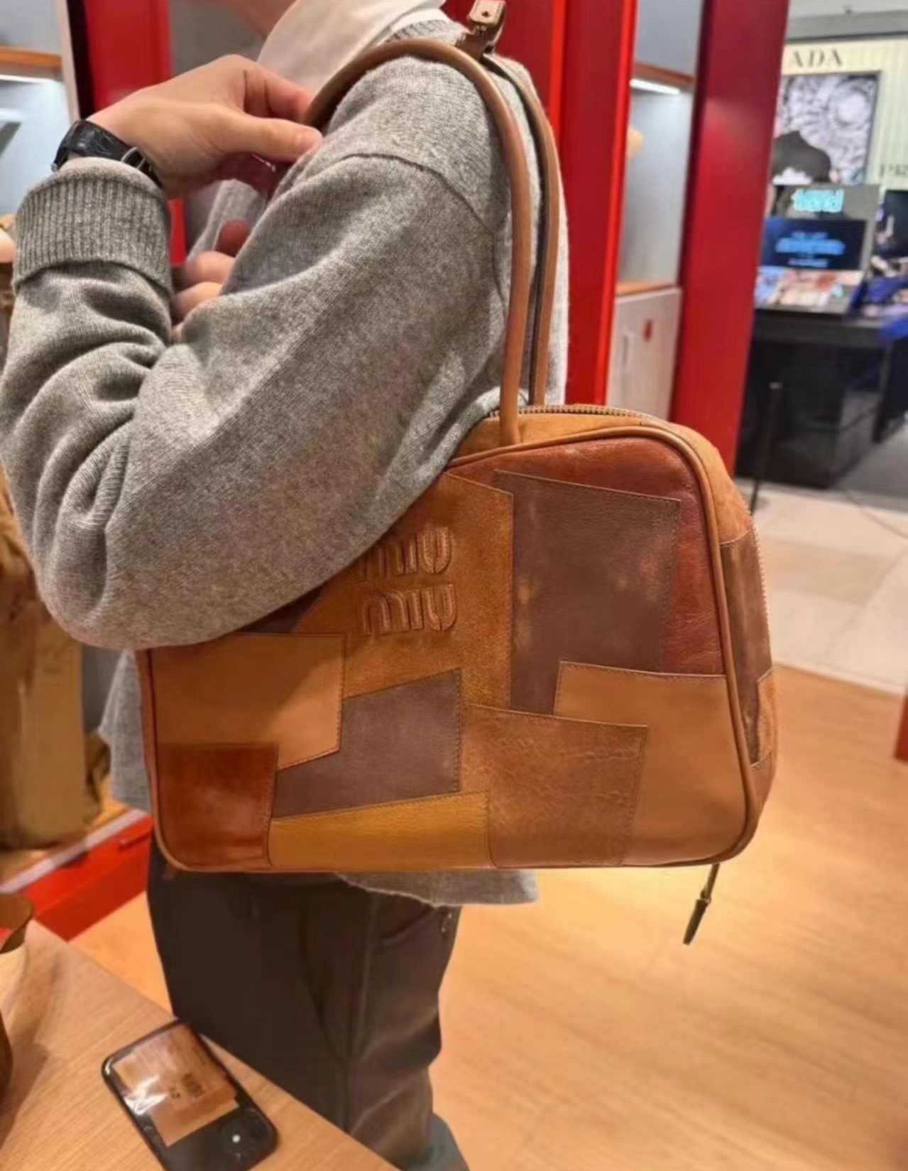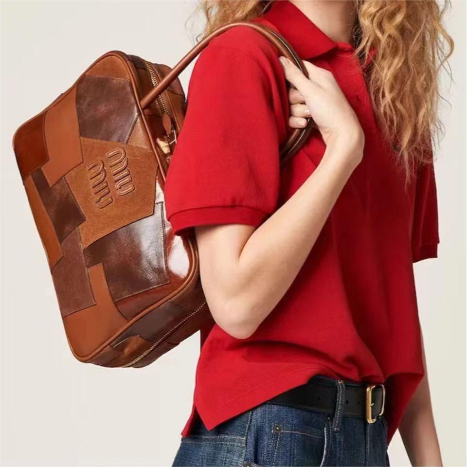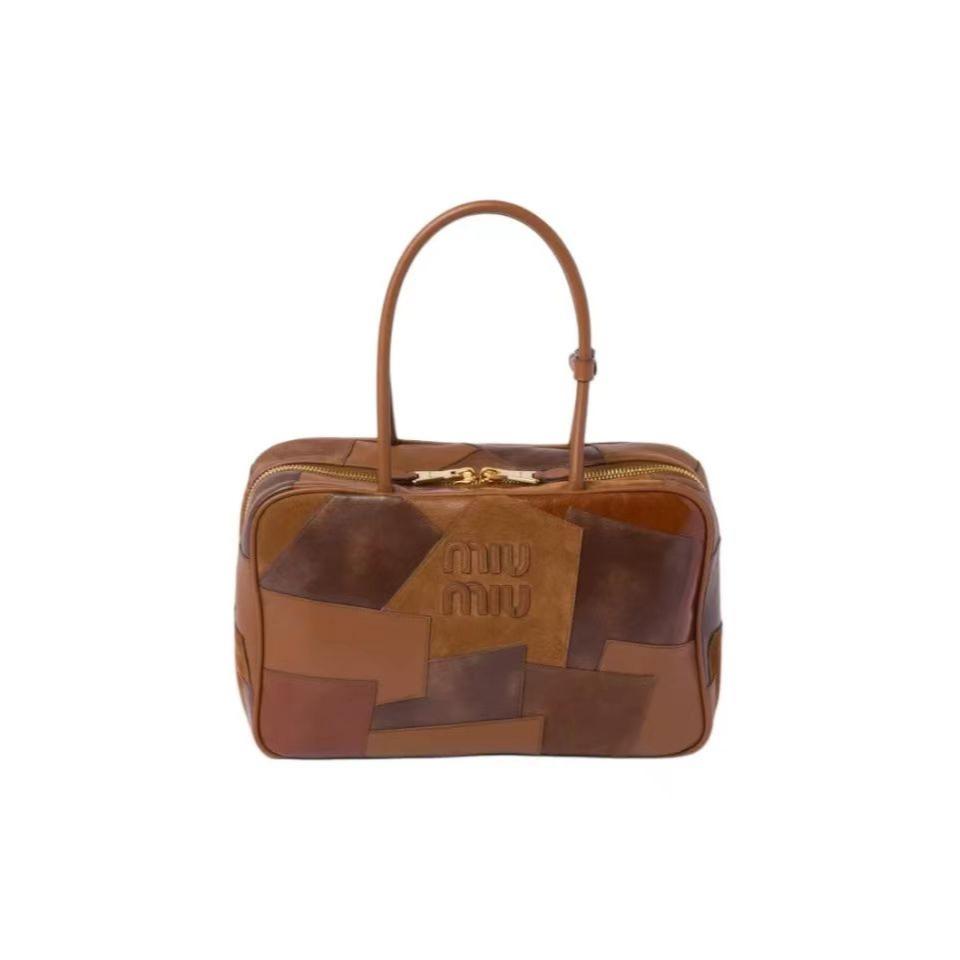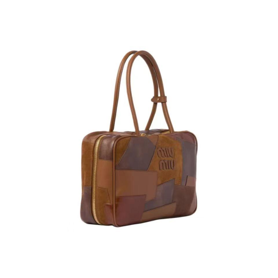 Miu Miu缪缪 新款牛皮革拼羊皮革 保龄球包