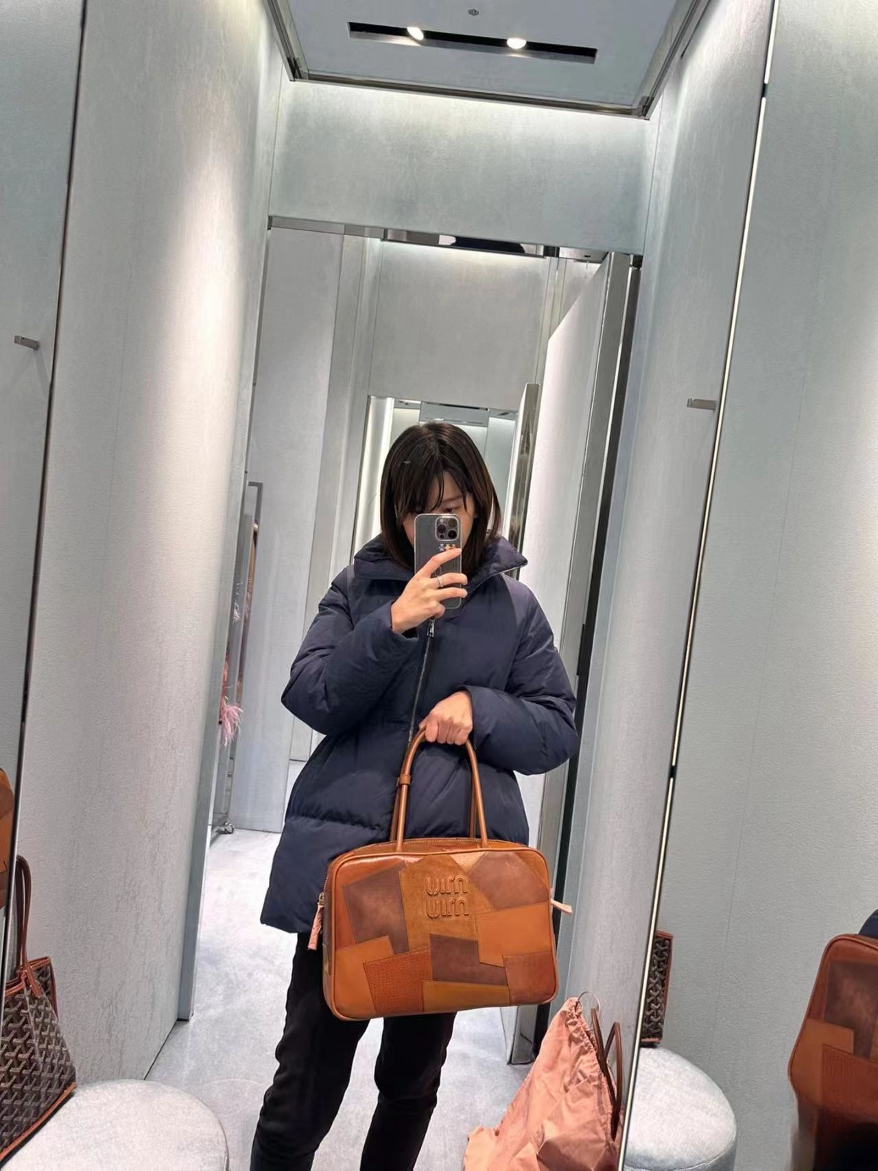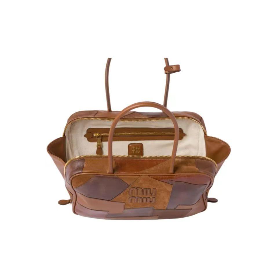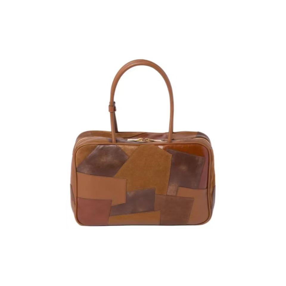 Miu Miu缪缪 新款牛皮革拼羊皮革 保龄球包