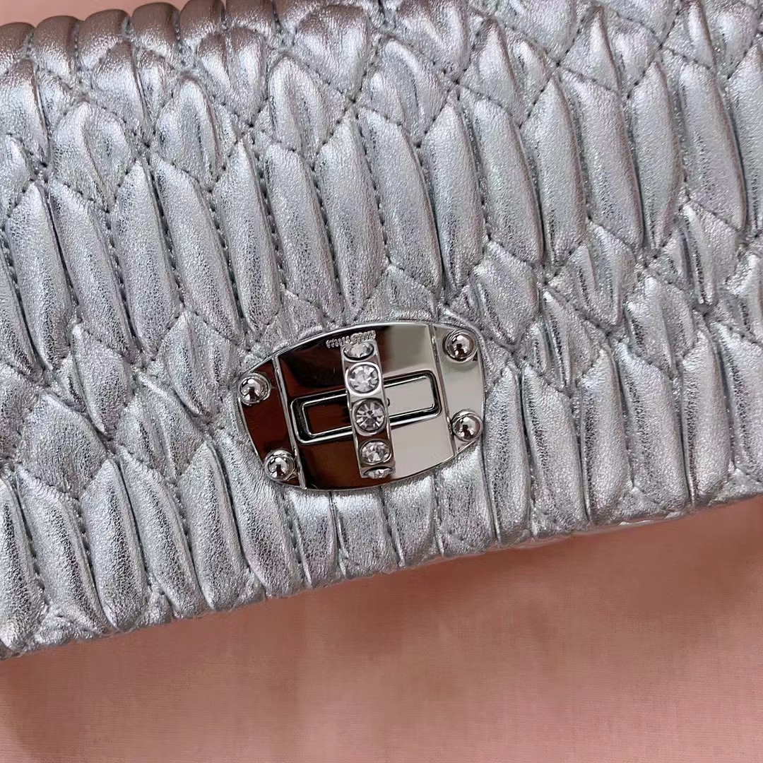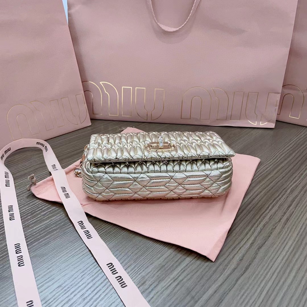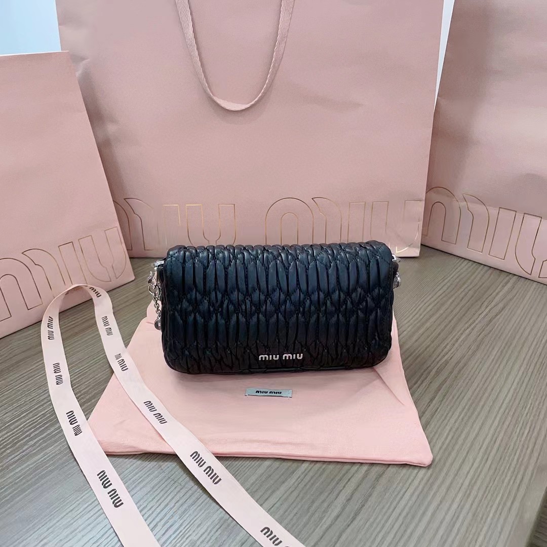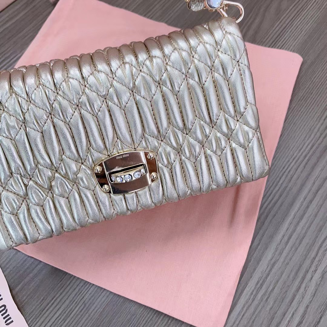 【MiuMiu缪缪】新品水晶链条包,小提花皱褶凸纹压花做法,Cloquet进口小羊皮,抛光纲质五金,全新旋转锁扣开合,棉缎衬里,双肩带设计,炫目水晶长肩带,可手拿肩背斜挎,造型百搭时尚!