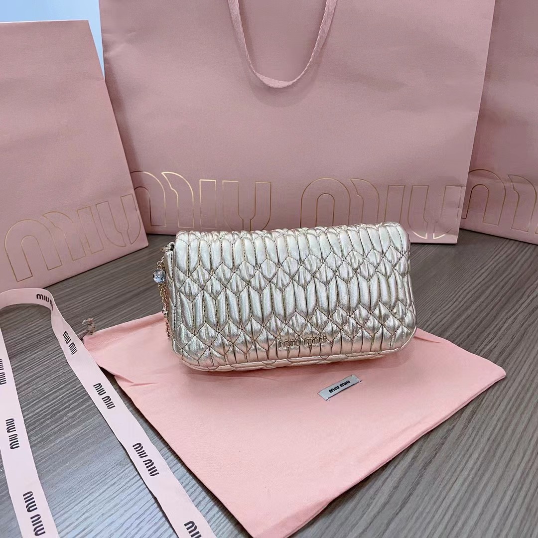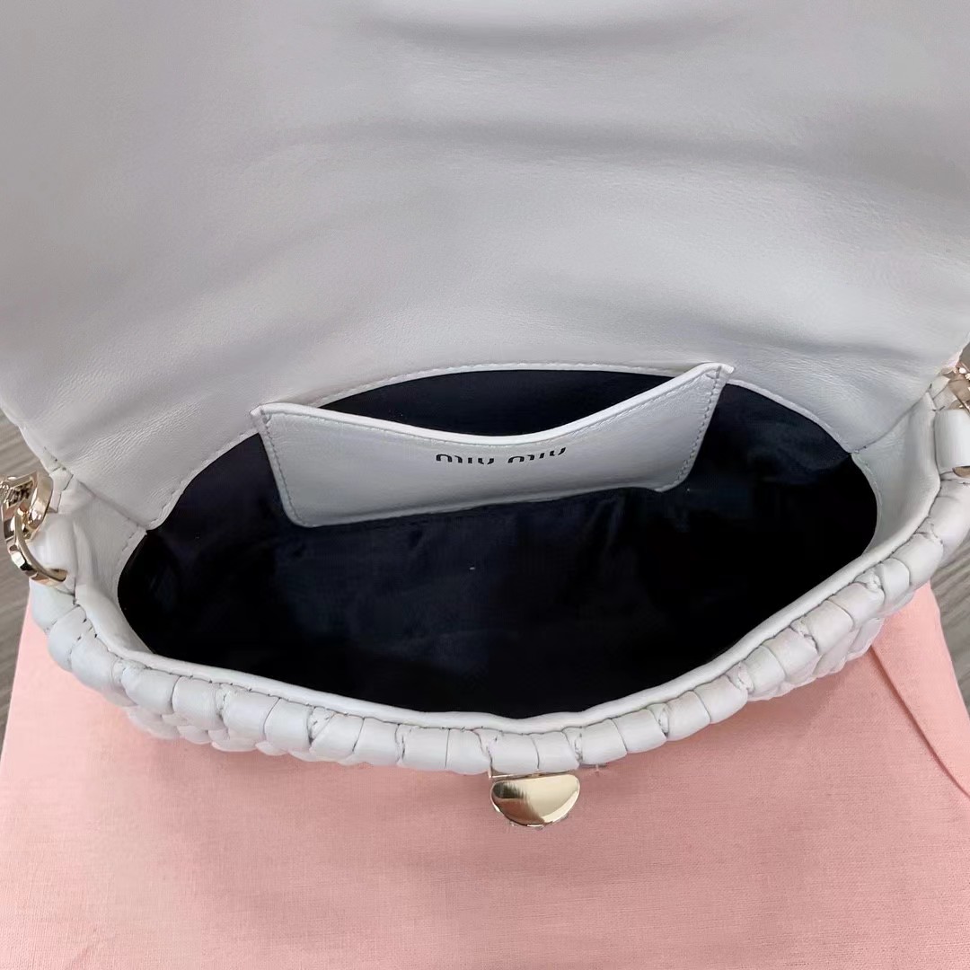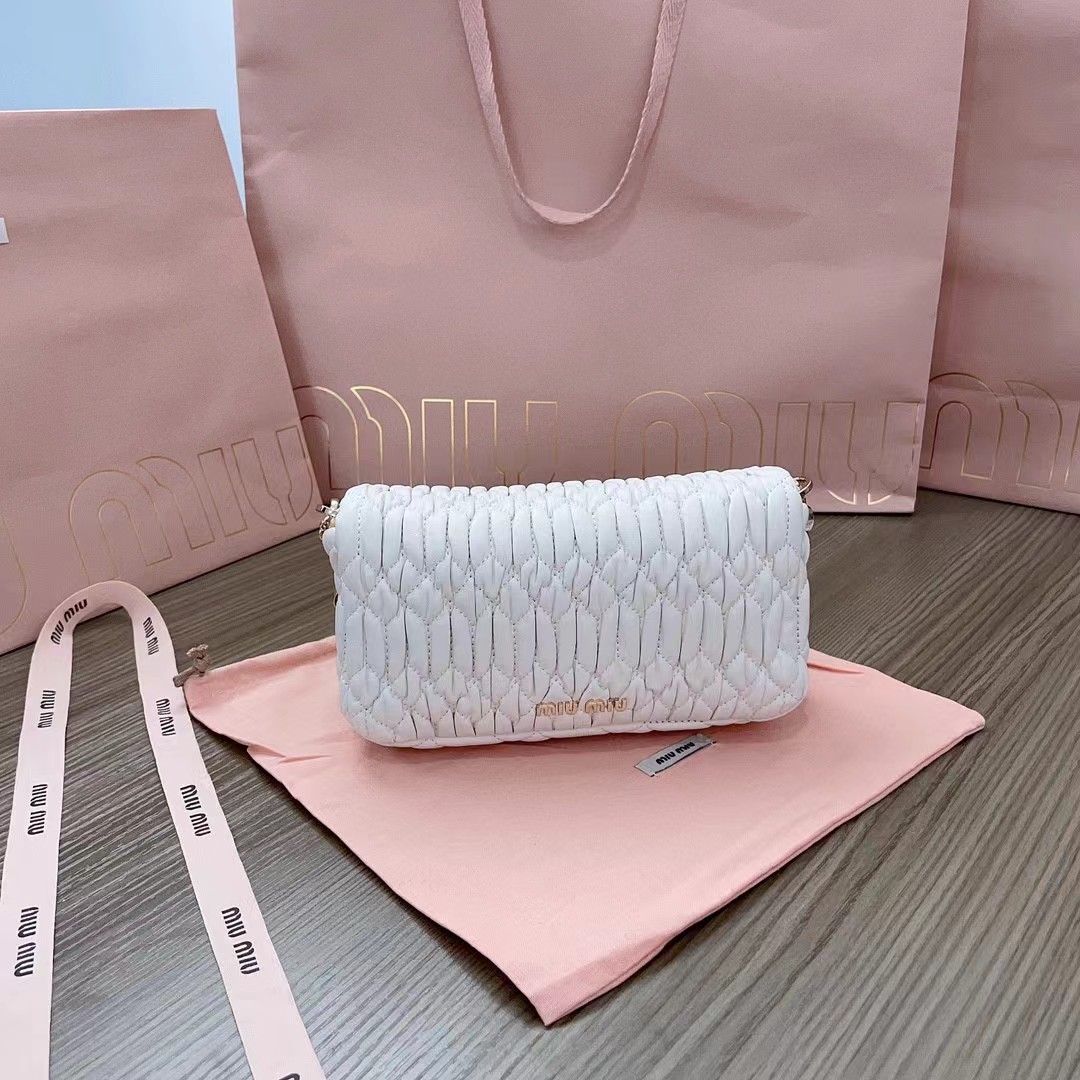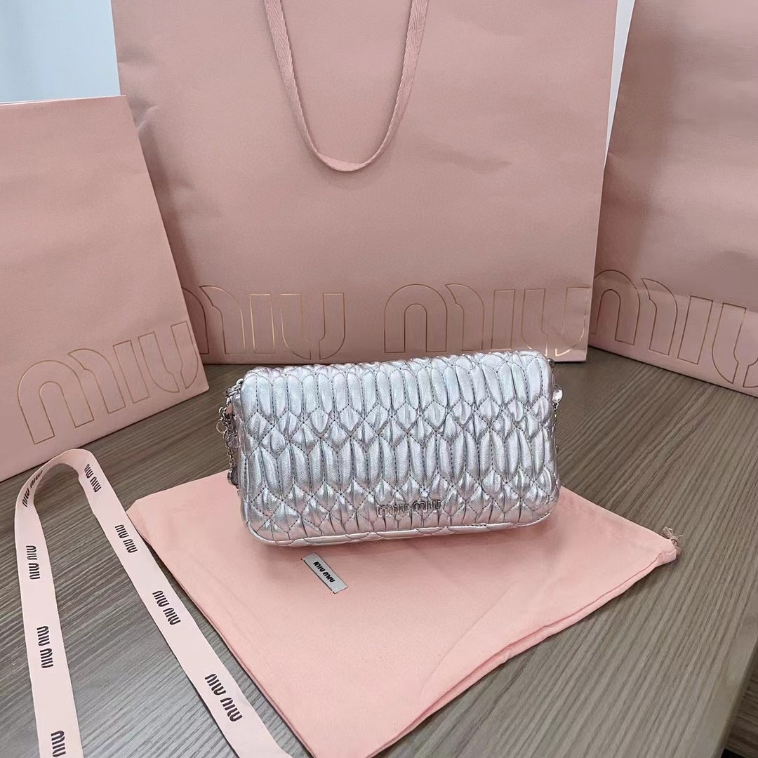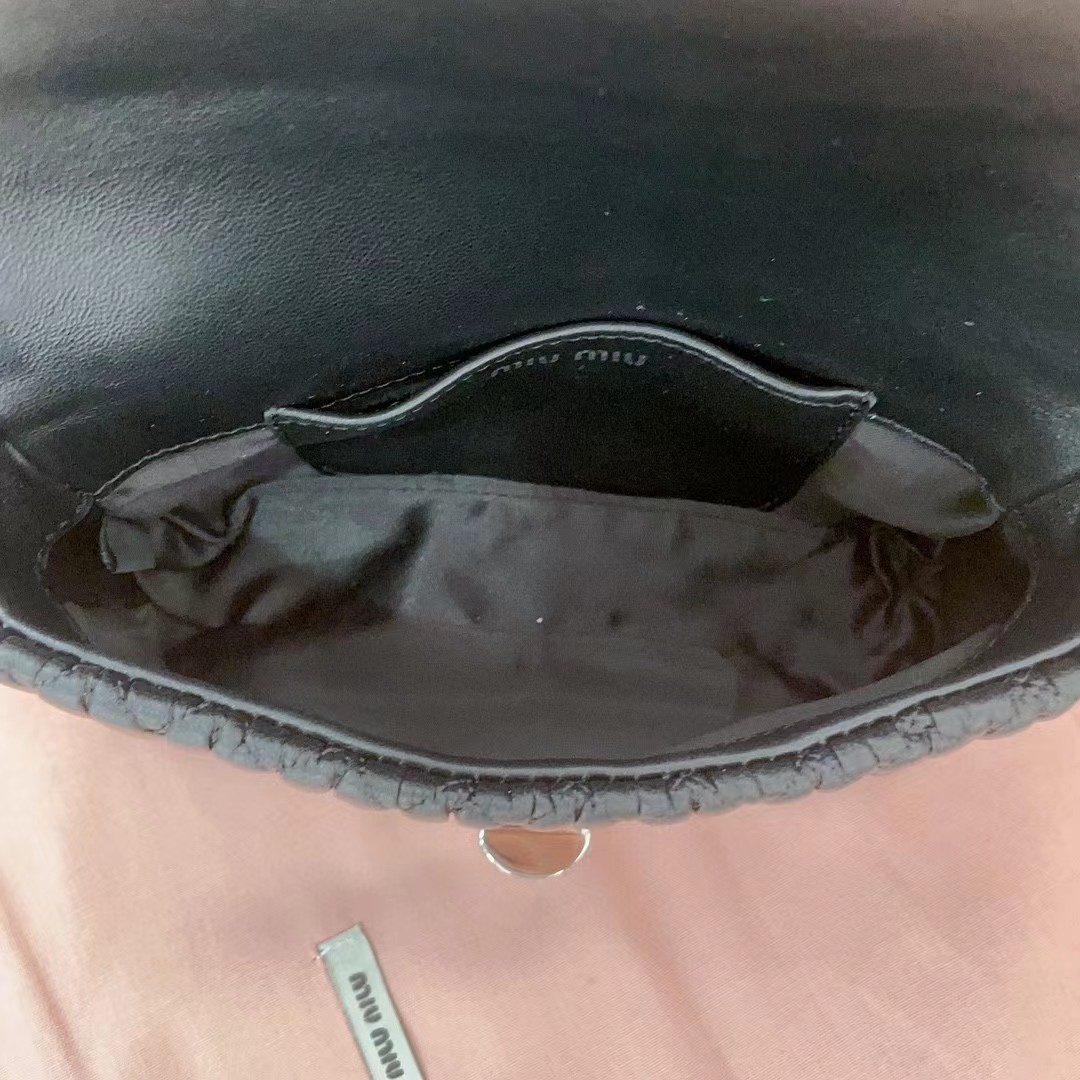 【MiuMiu缪缪】新品水晶链条包,小提花皱褶凸纹压花做法,Cloquet进口小羊皮,抛光纲质五金,全新旋转锁扣开合,棉缎衬里,双肩带设计,炫目水晶长肩带,可手拿肩背斜挎,造型百搭时尚!