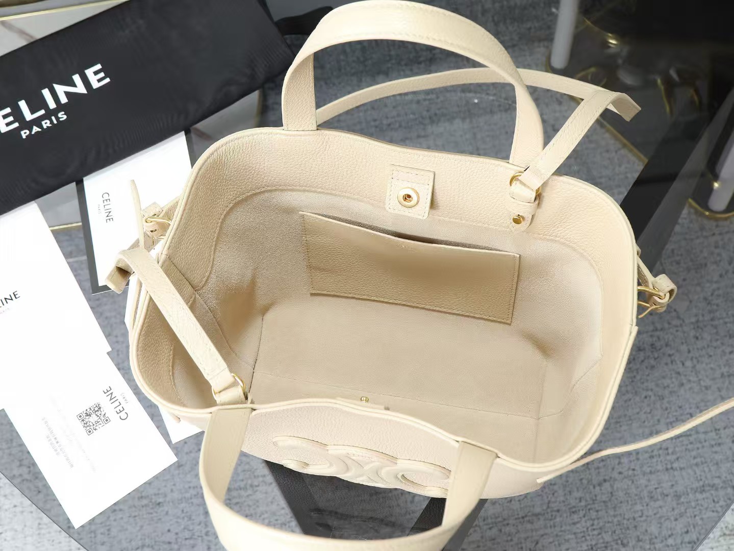 【介绍】 cabas anais 粒面牛皮革手袋。ce最新款托特包 不一样的托特包,上身特别的高级 精致 庸庸懒懒的复古风 简单不浮夸 简直不要太好用 粒面牛皮完全不用害怕刮花,很适合粗心大意的宝子们~ 两侧边耳朵可随意收放,敞开可轻松装下笔记本,文件 或日常所需物品.,内设一个主隔层 ,一个内侧扁平口袋,两个长皮革手提。