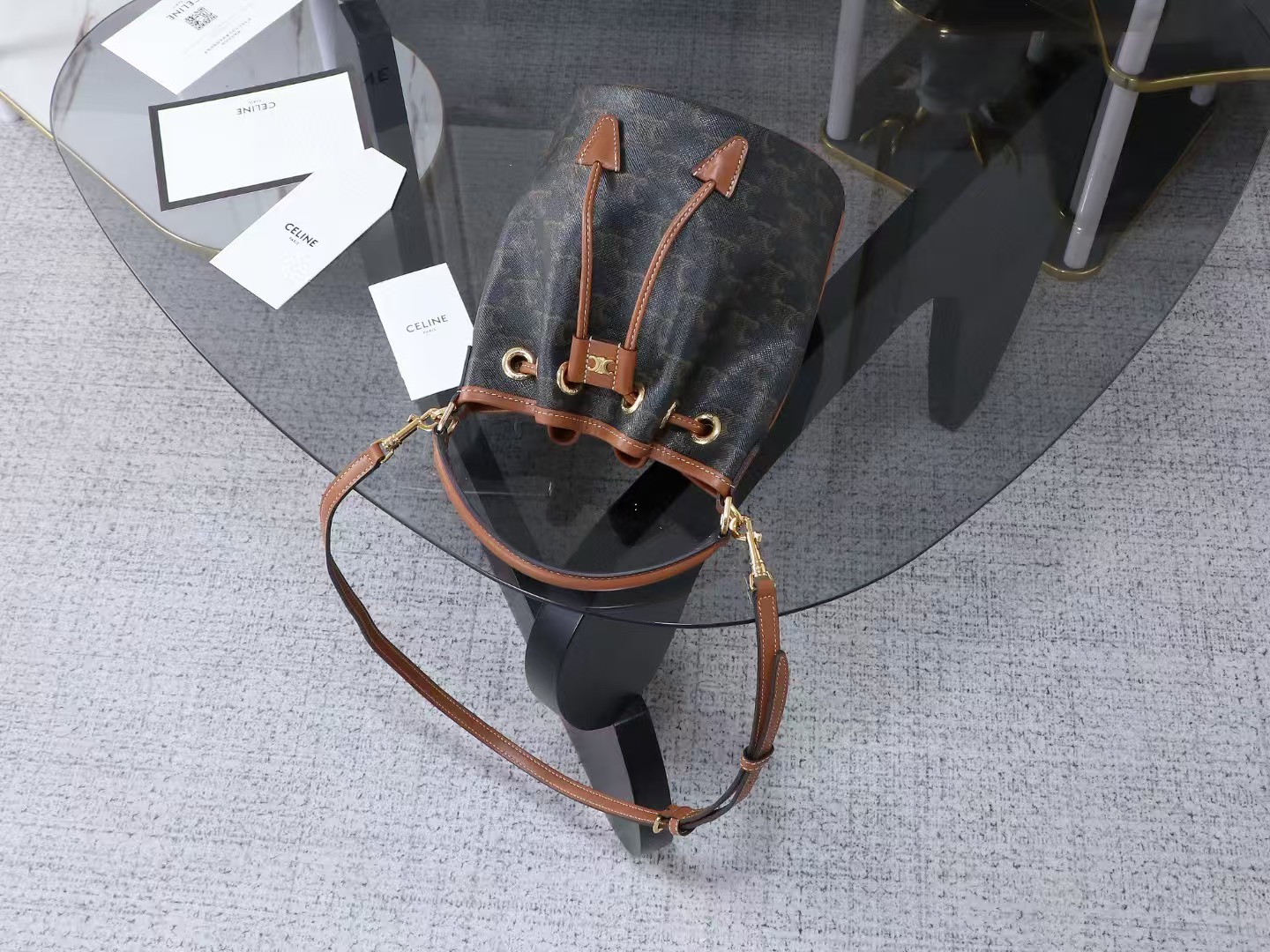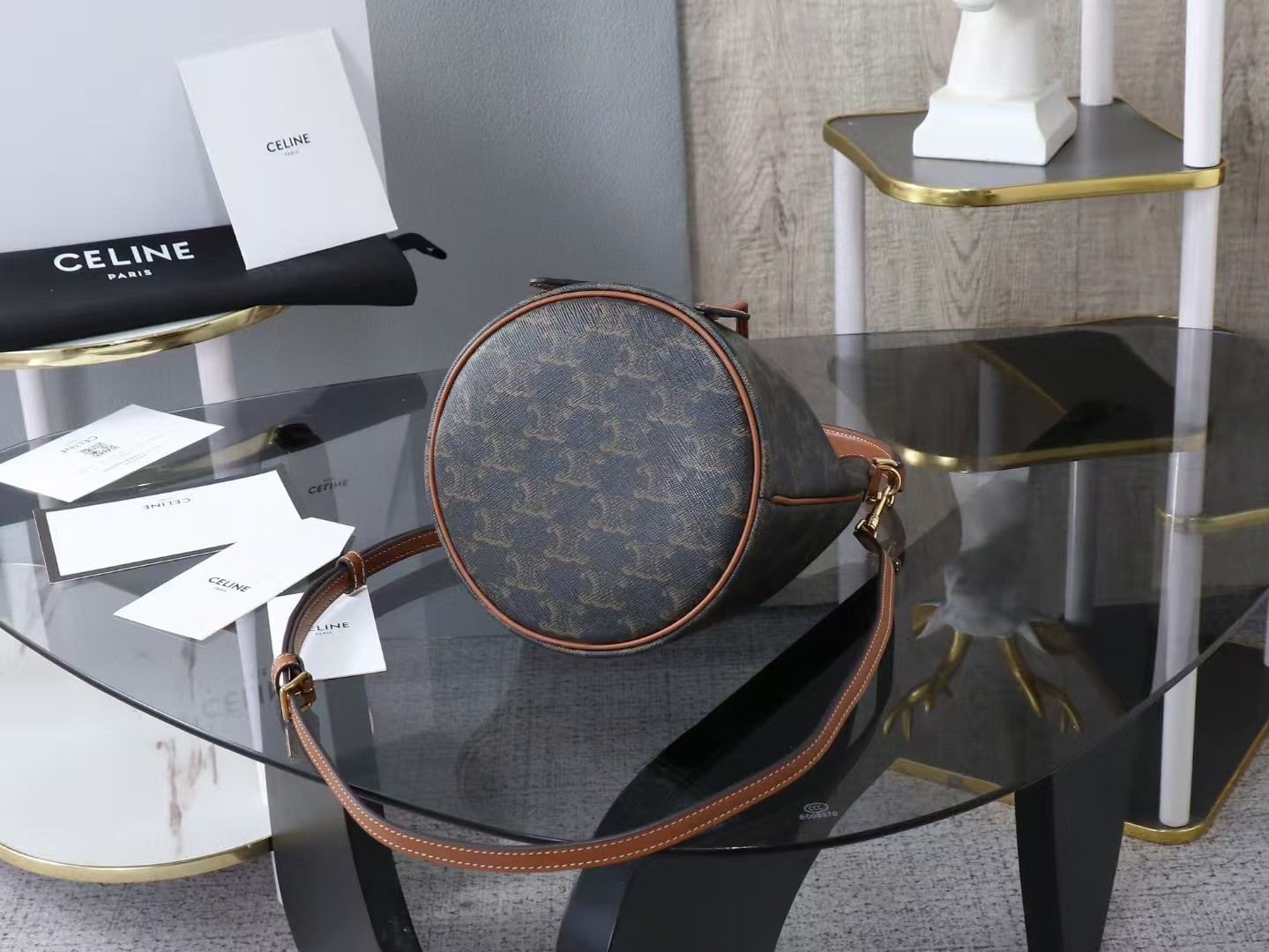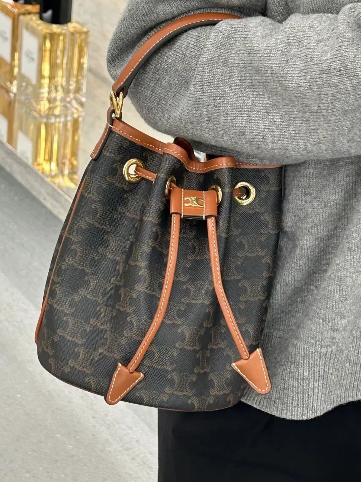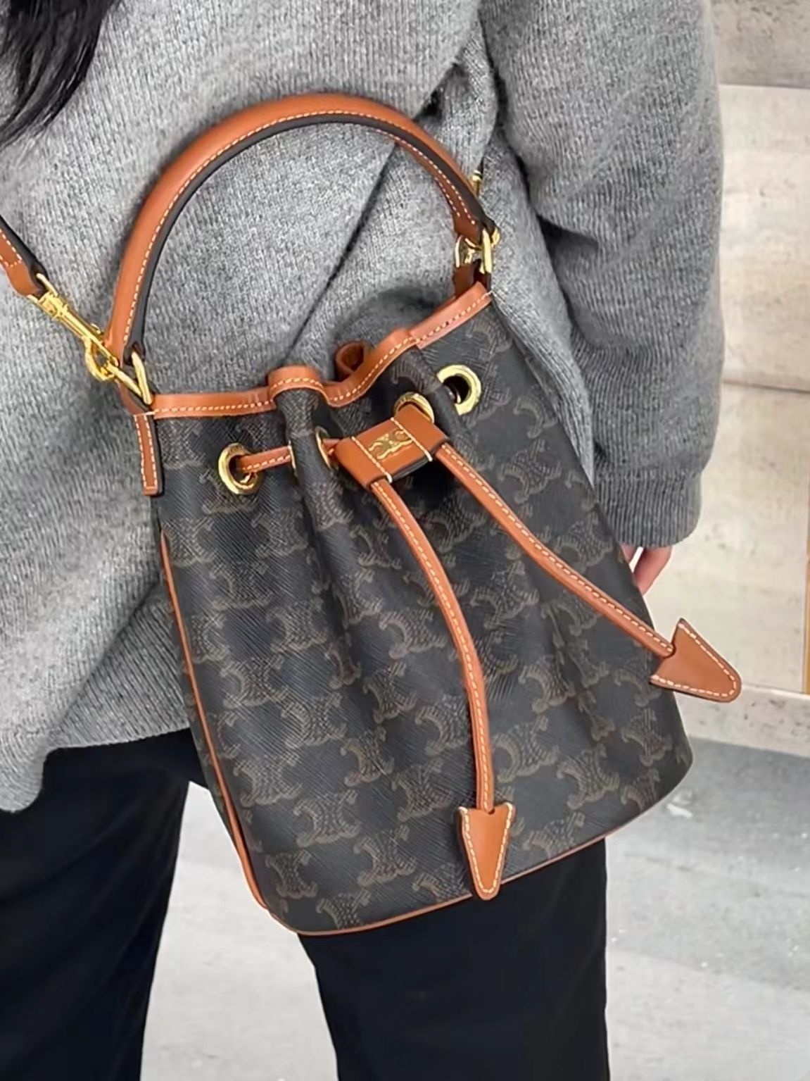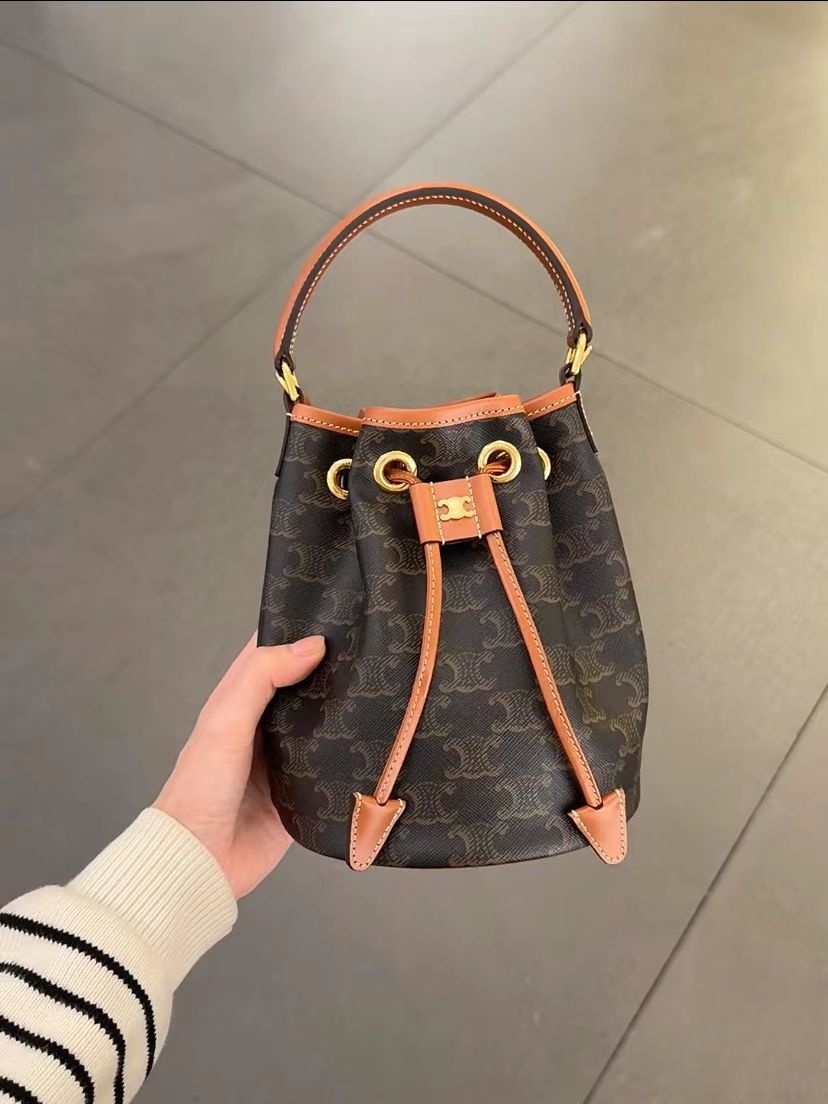 Celine 赛琳 Teen Clara 品牌徽标印花 牛皮单肩斜挎手提水桶包