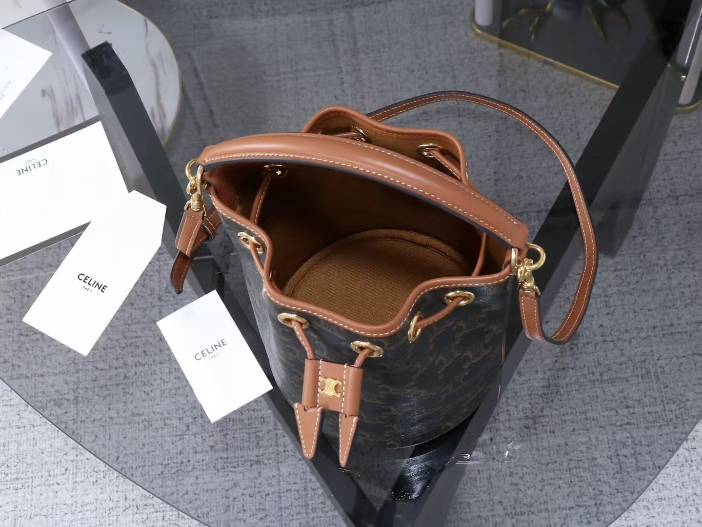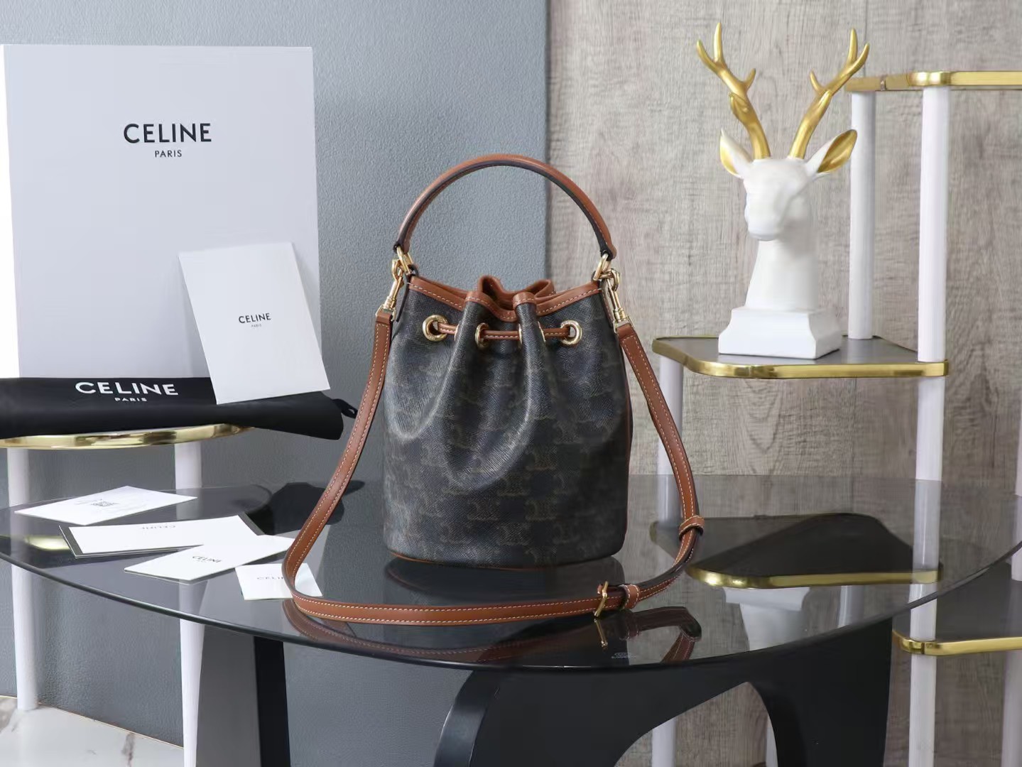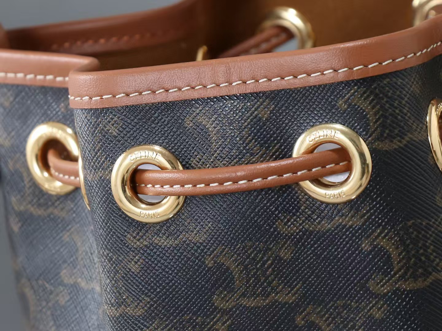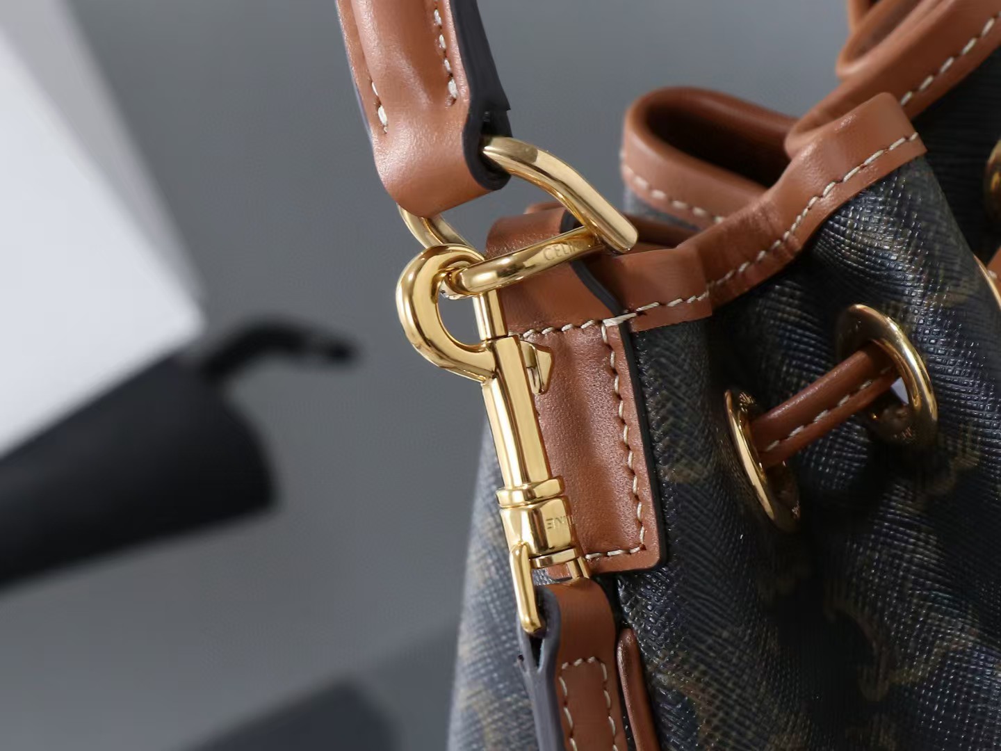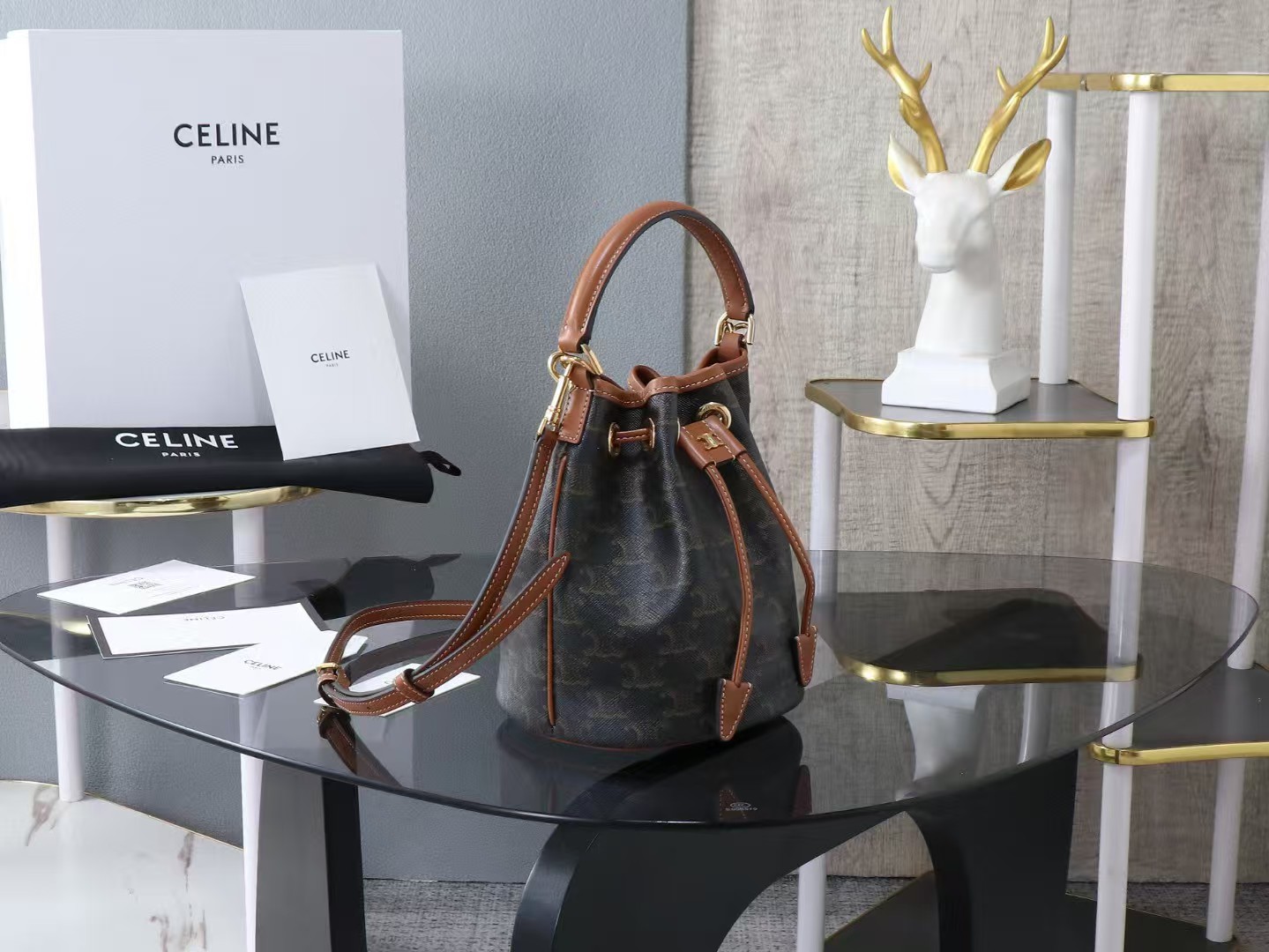 Celine 赛琳 Teen Clara 品牌徽标印花 牛皮单肩斜挎手提水桶包