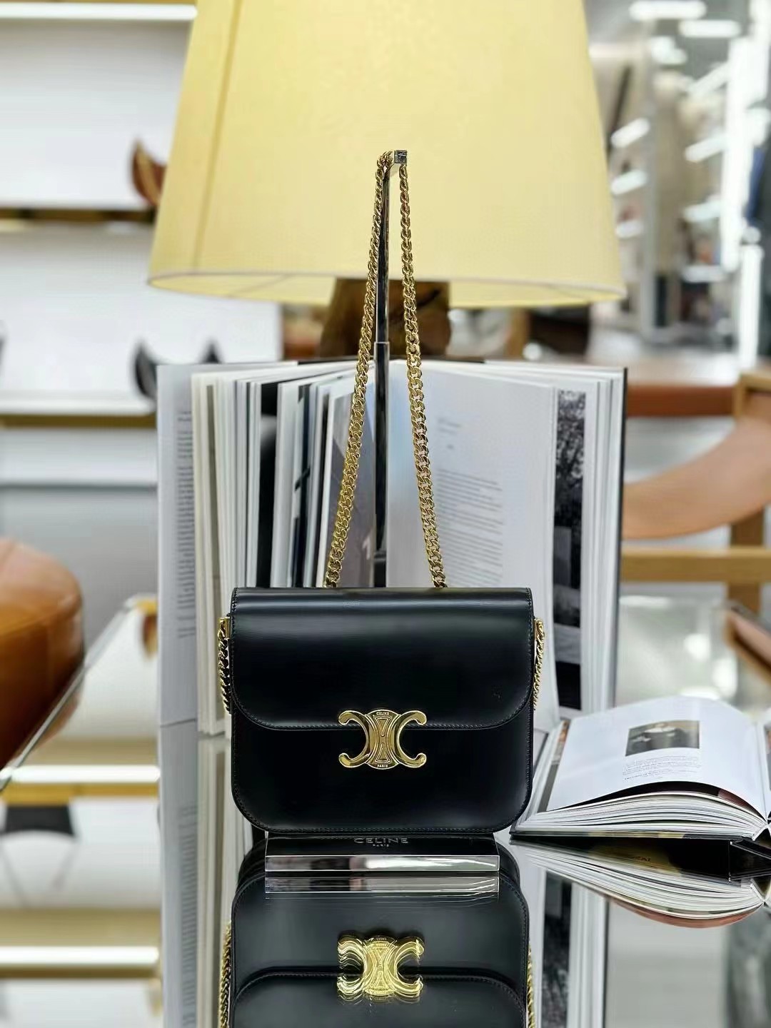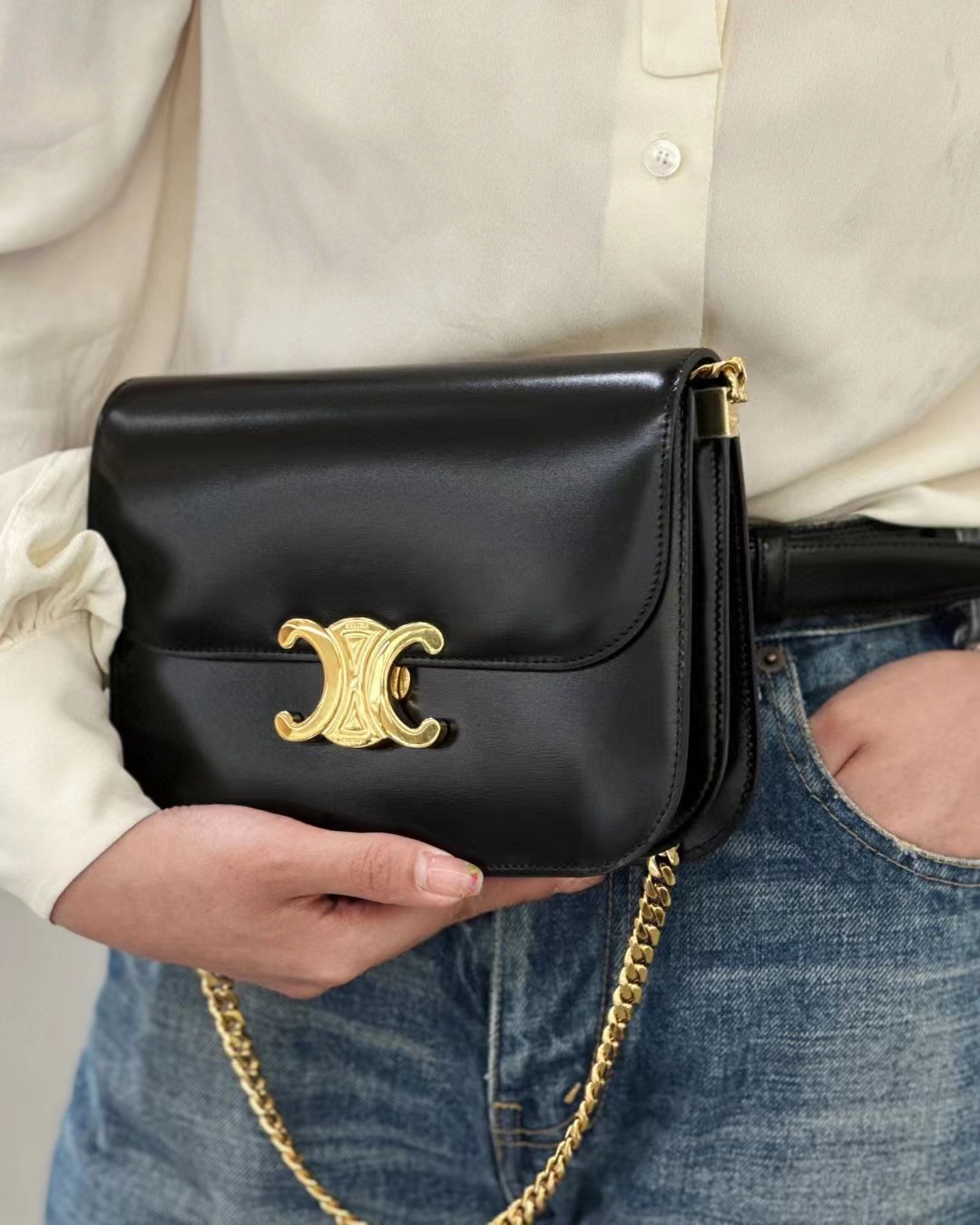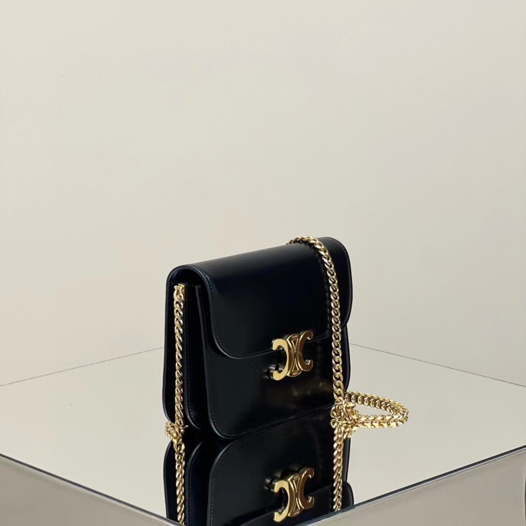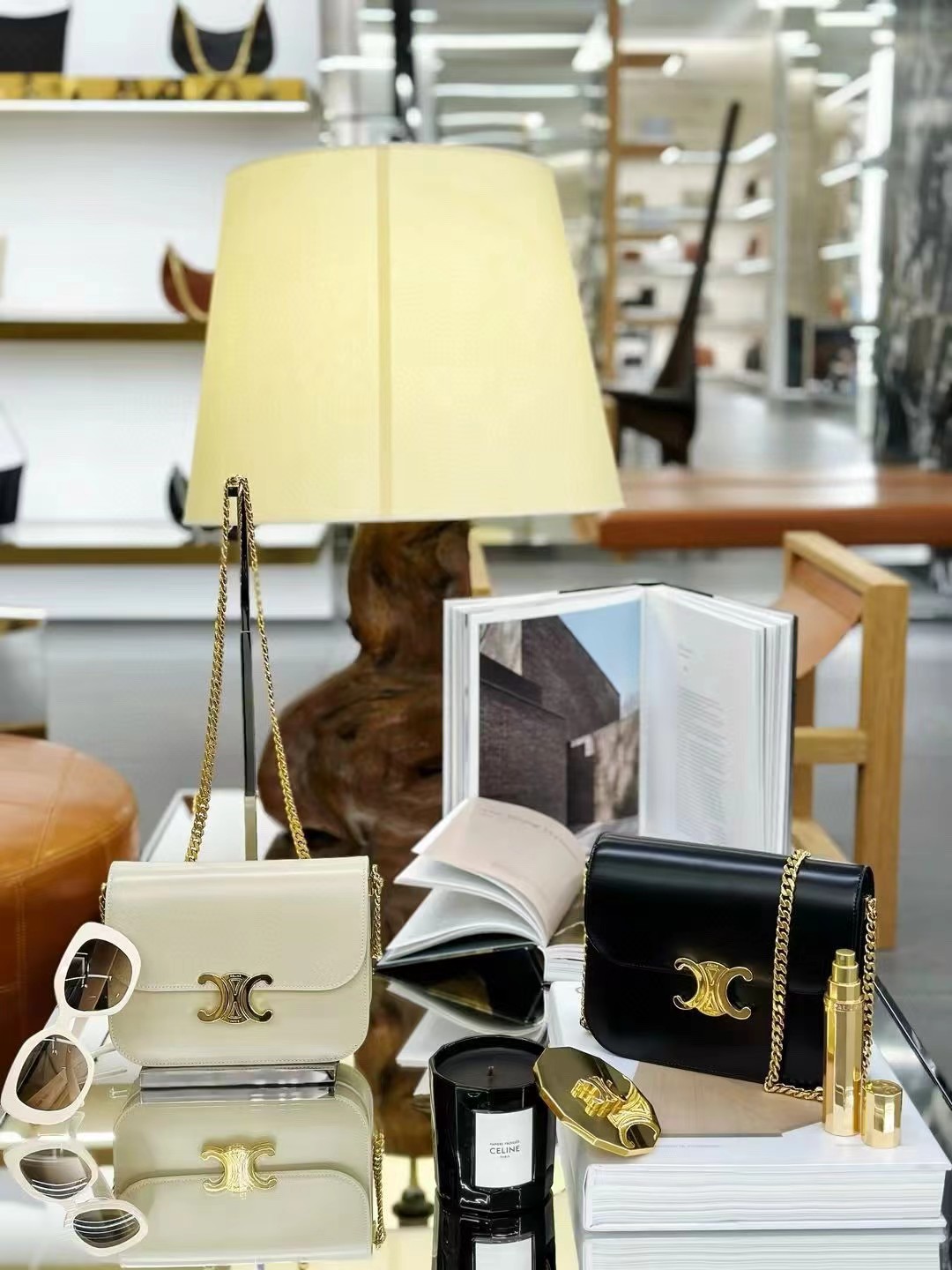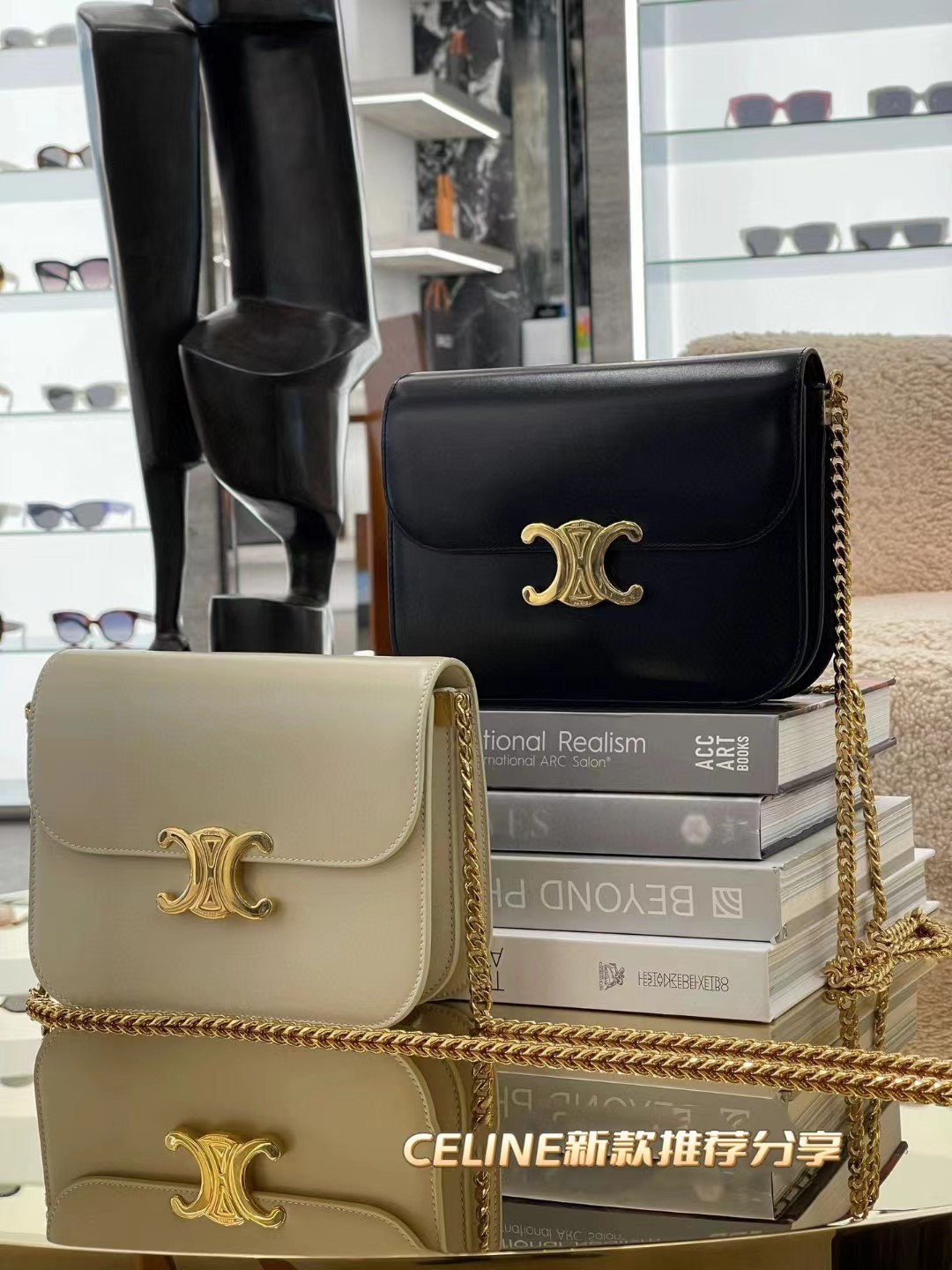CELINE 23s凯旋门秋冬新品|COLLEGE TRIOMPHE亮泽牛皮革链条手袋