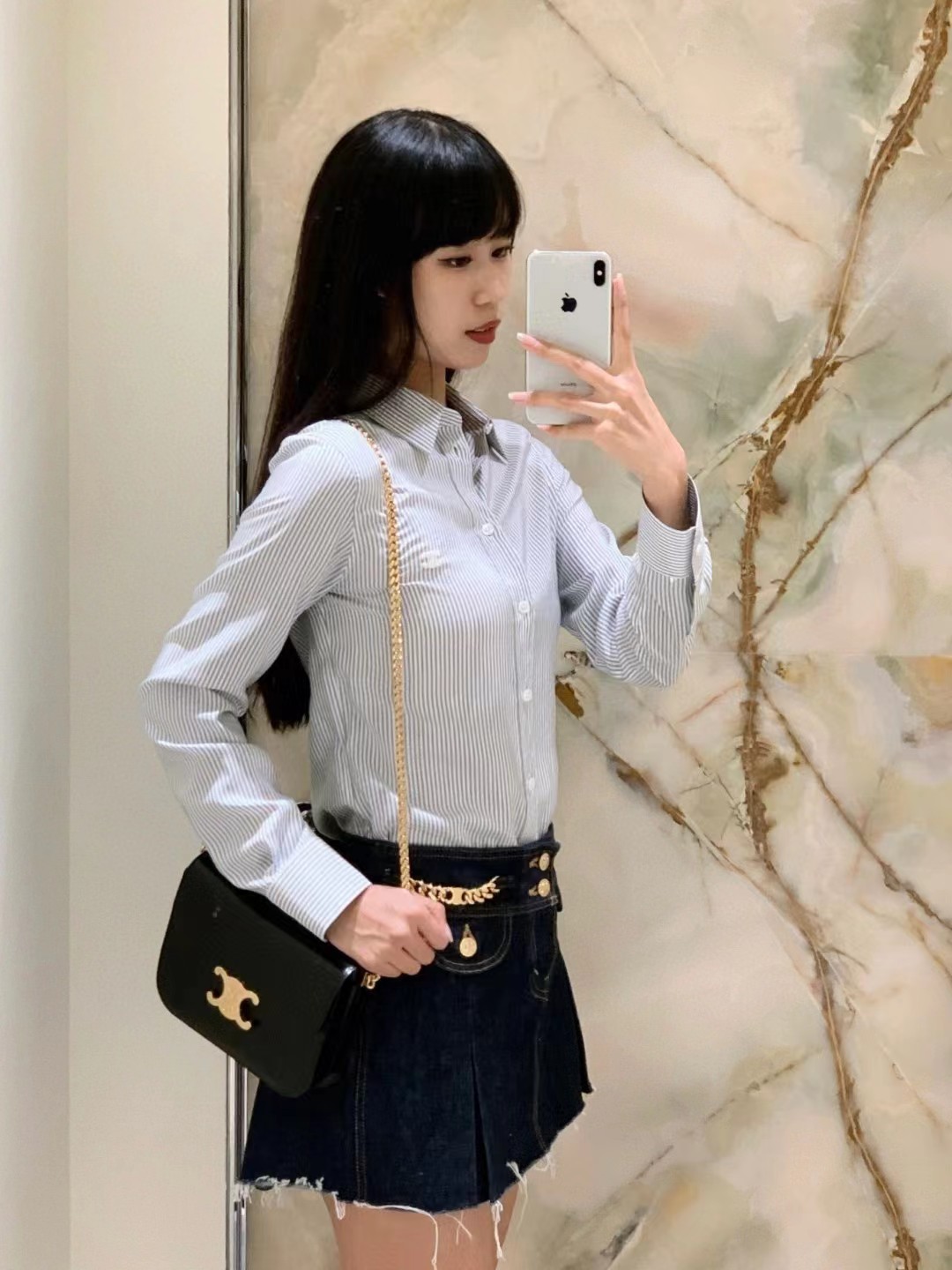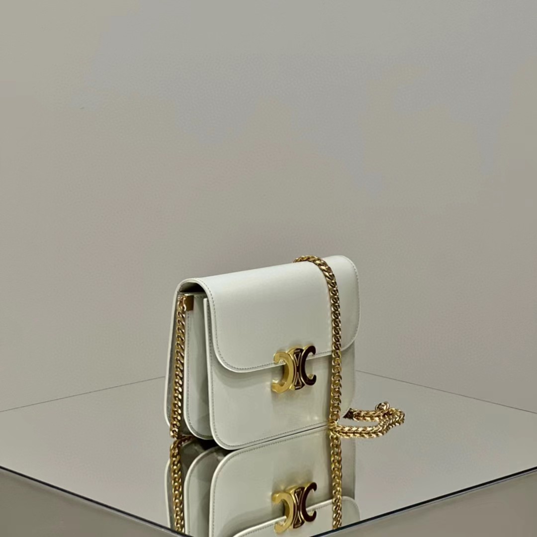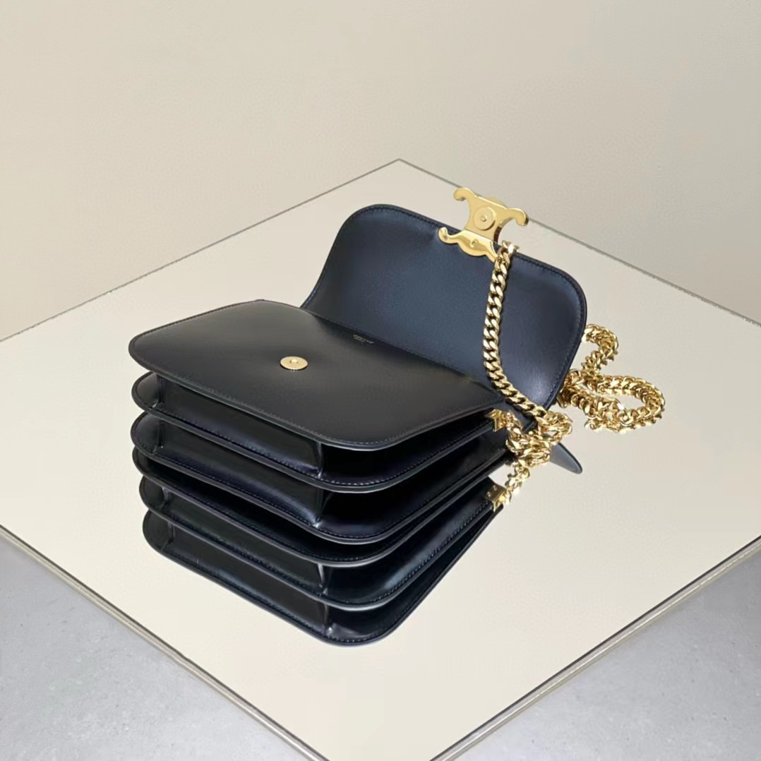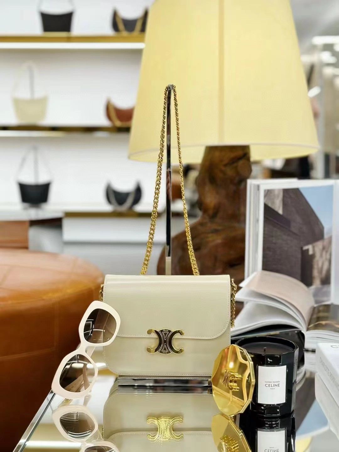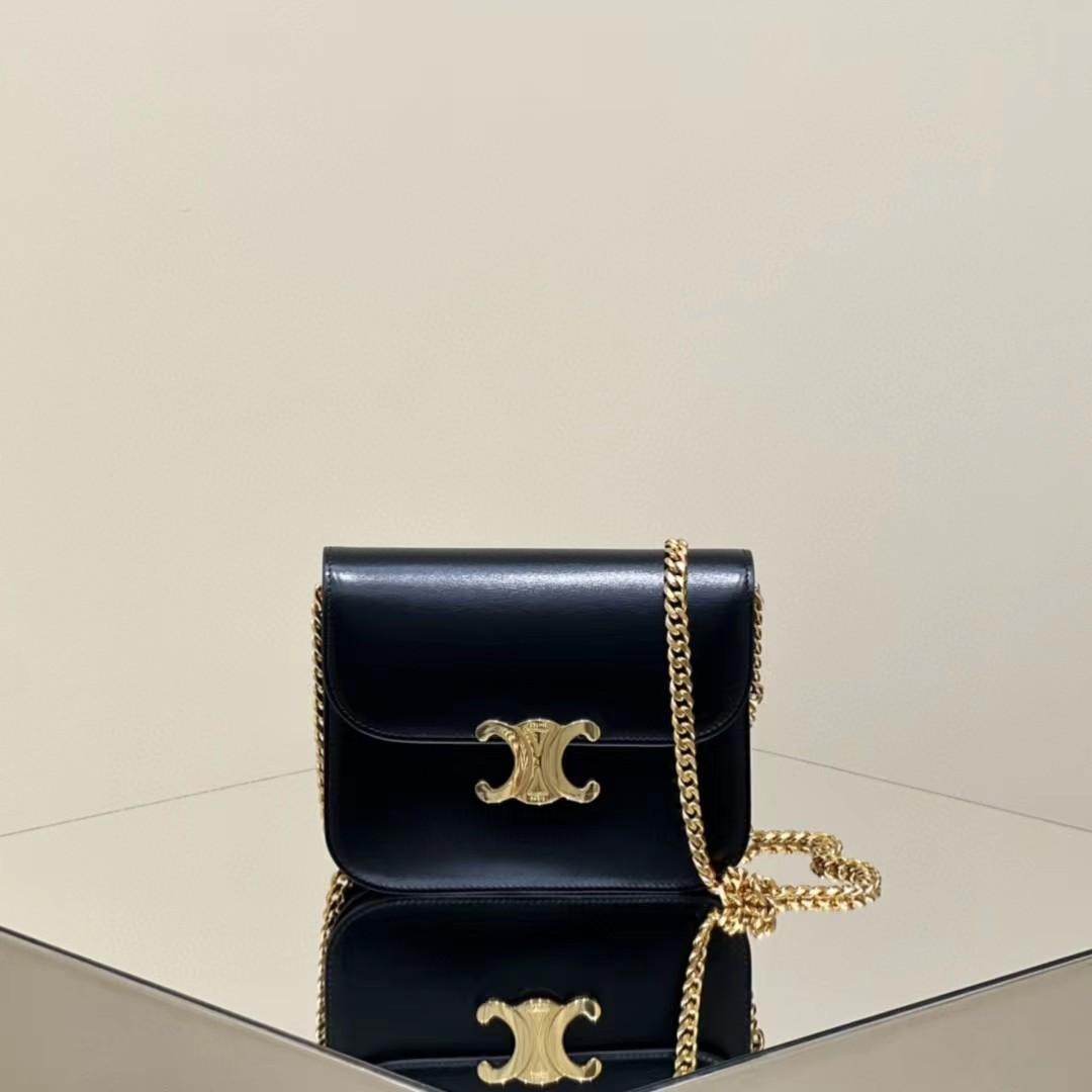 CELINE 23s凯旋门秋冬新品|COLLEGE TRIOMPHE亮泽牛皮革链条手袋