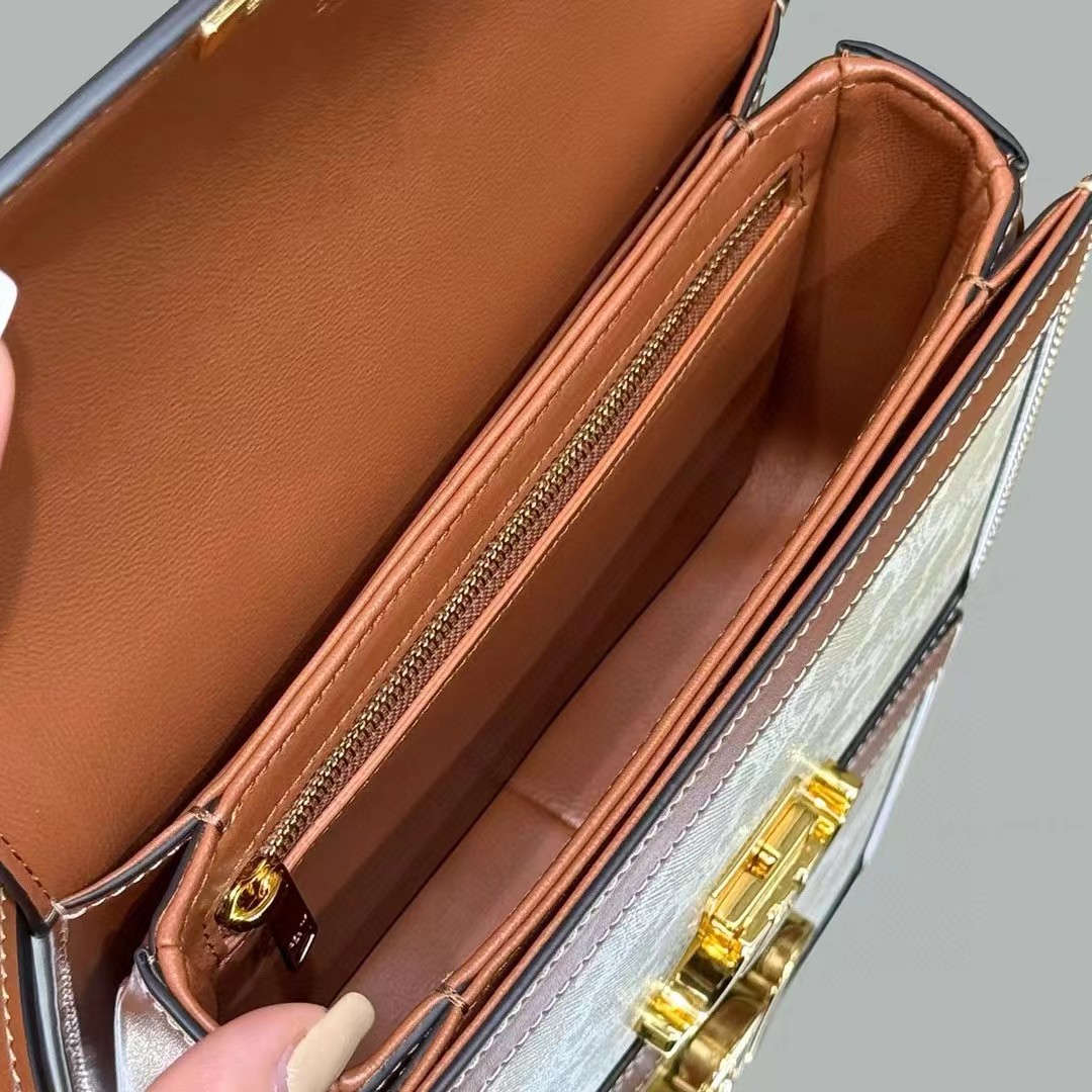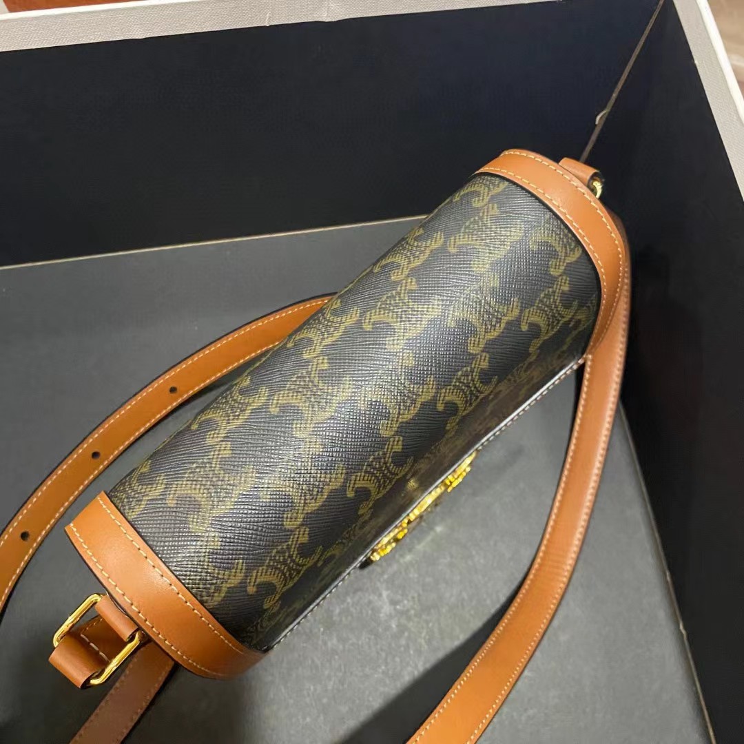 Celine 条纹包小号CELINE TRIOMPHE提花帆布和小牛皮小号手袋 新设计凯旋门回旋扣 金色金属件 斜挎和肩背 内侧拉链口袋和扁平口袋 !可调节皮革肩带长17英寸(42厘米)尺寸:长18.5~高14~宽6cm 款号:188882