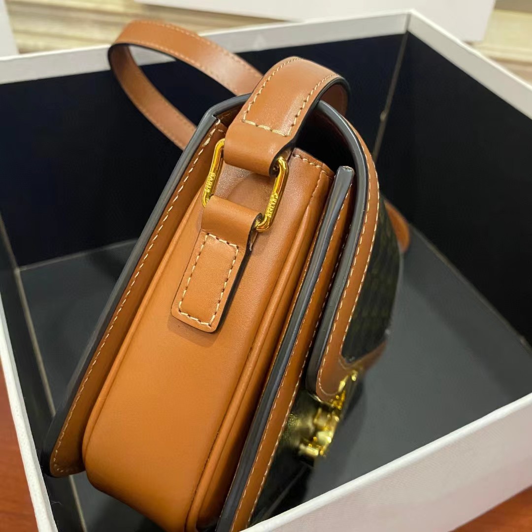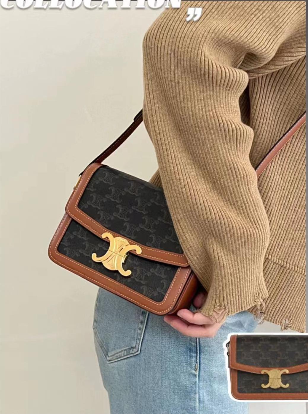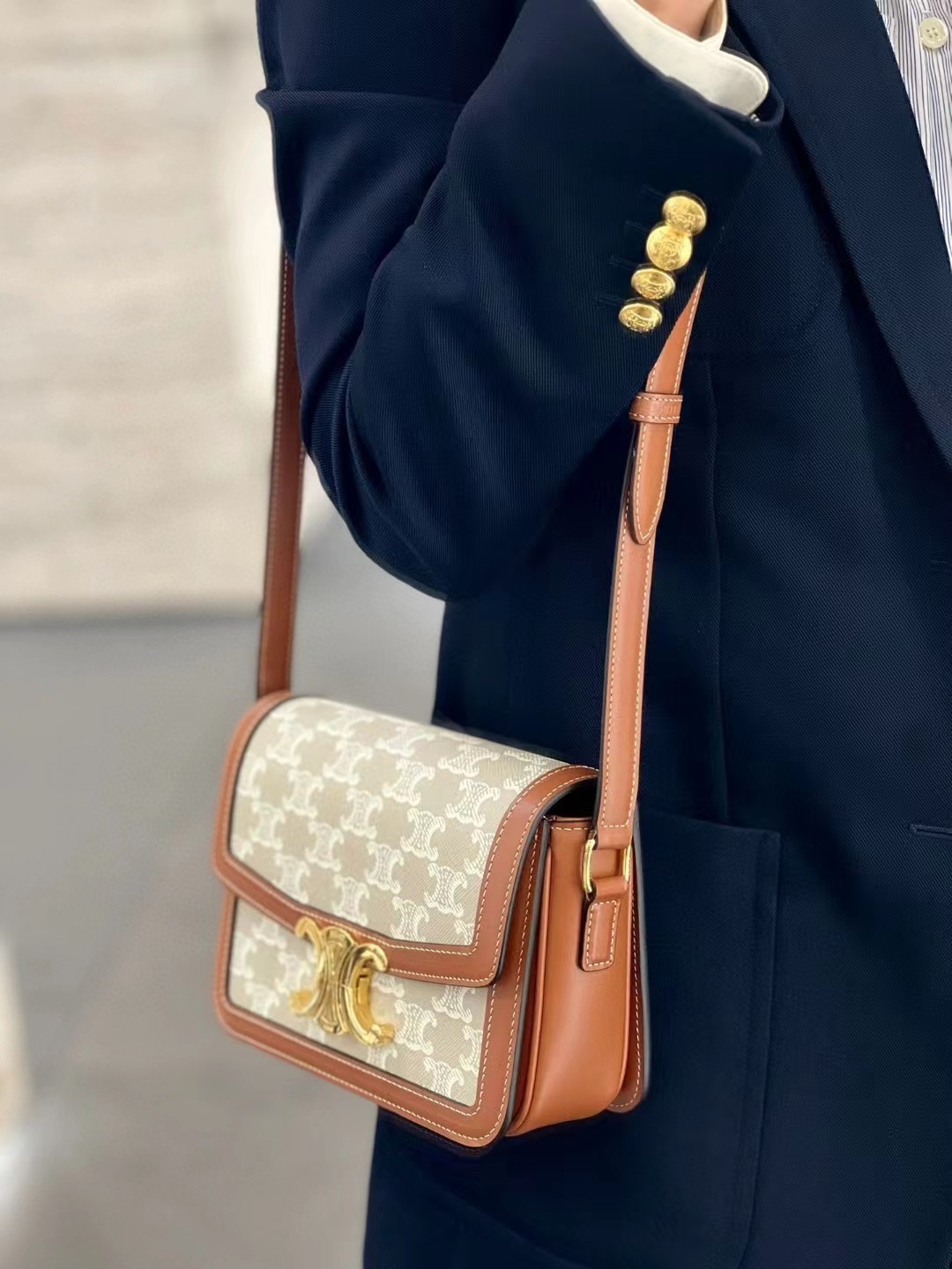 Celine 赛琳 Triomphe 提花帆布 小牛皮手袋
