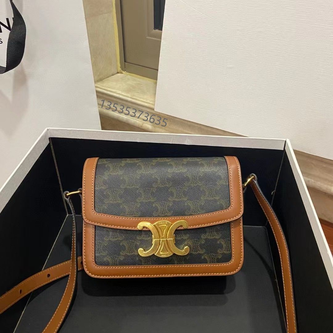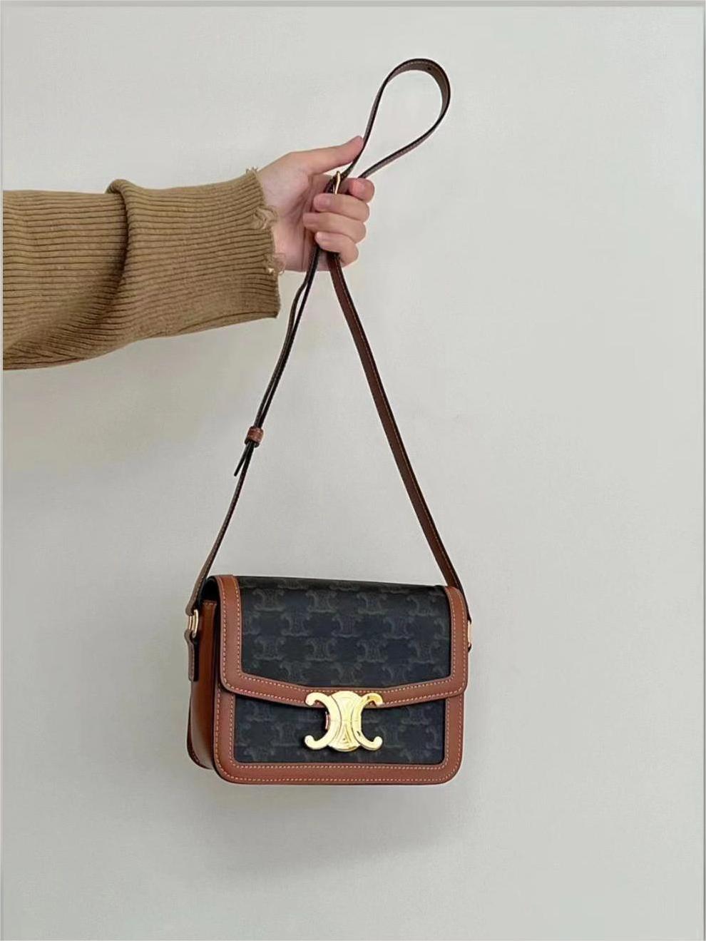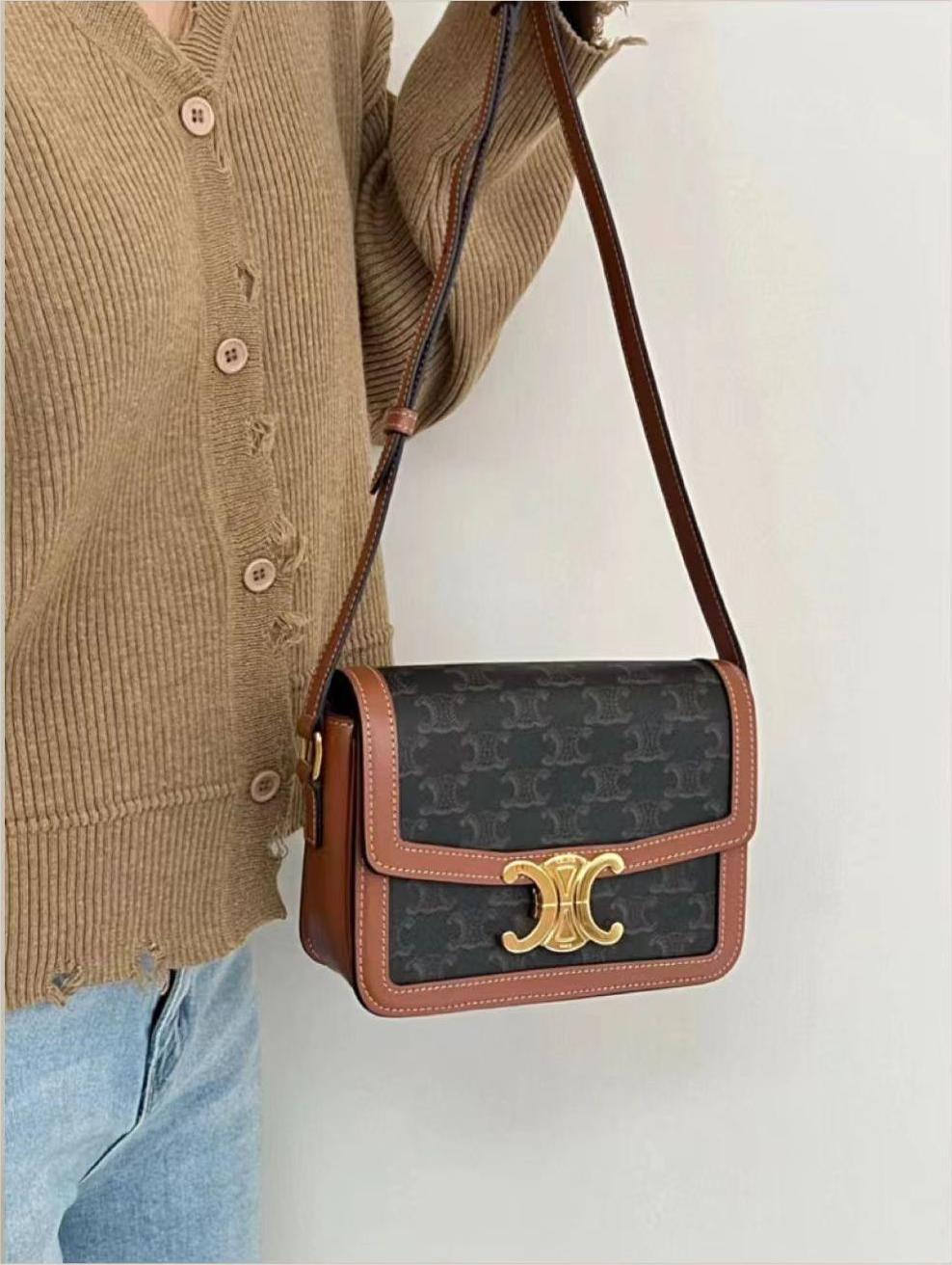 Celine 赛琳 Triomphe 提花帆布 小牛皮手袋