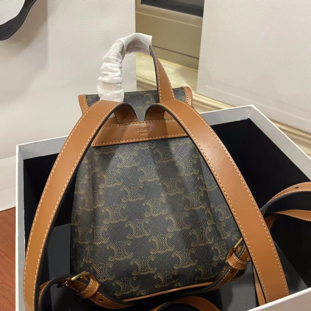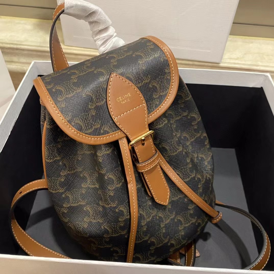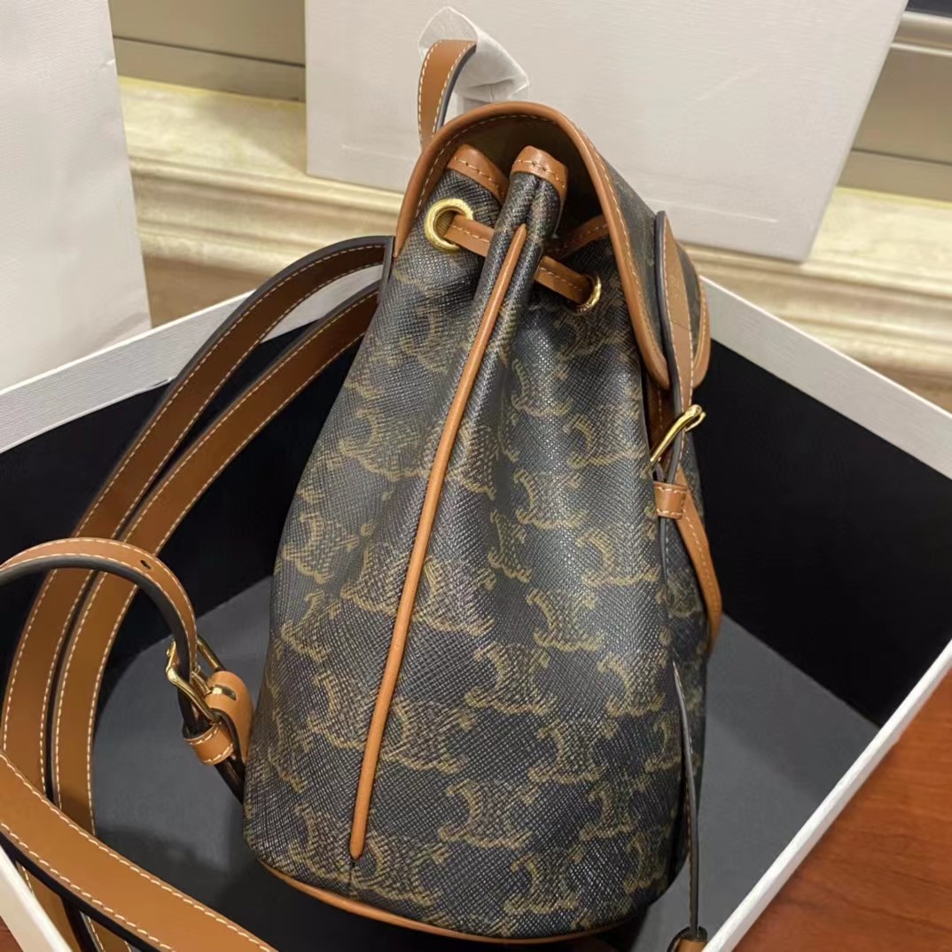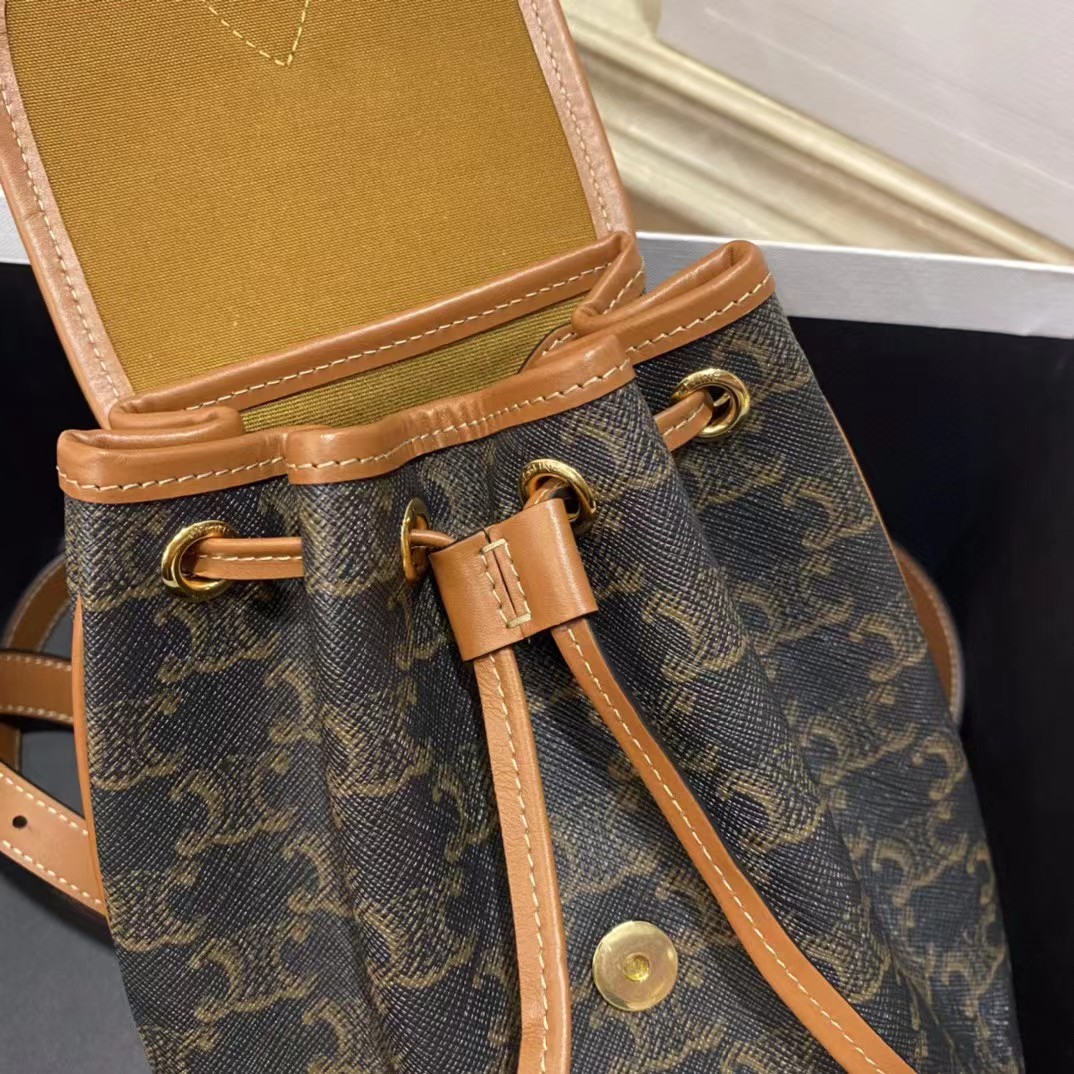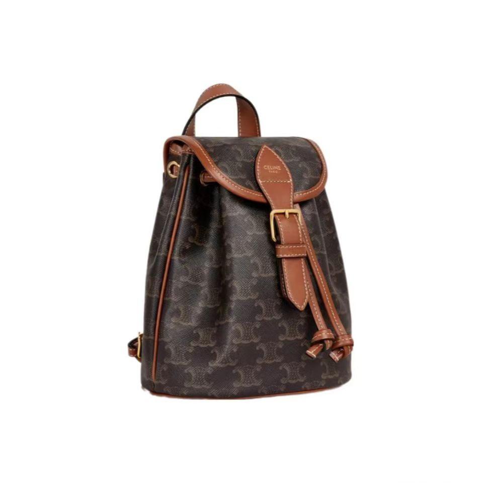 CELIN 新品 FOLCO TRIOMPHE CANVAS,迷你小背包TRIOMPHE CANVAS标志印花牛皮革包边,织物面料衬里,可手提,手柄长度 (8 厘米)注:本款型无法装下IPAD等平板电脑。尺寸:长20~高17~宽10cm