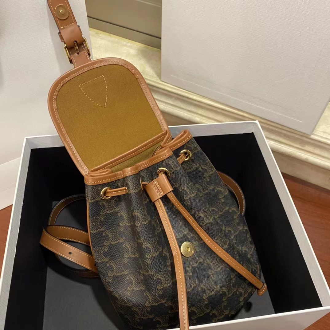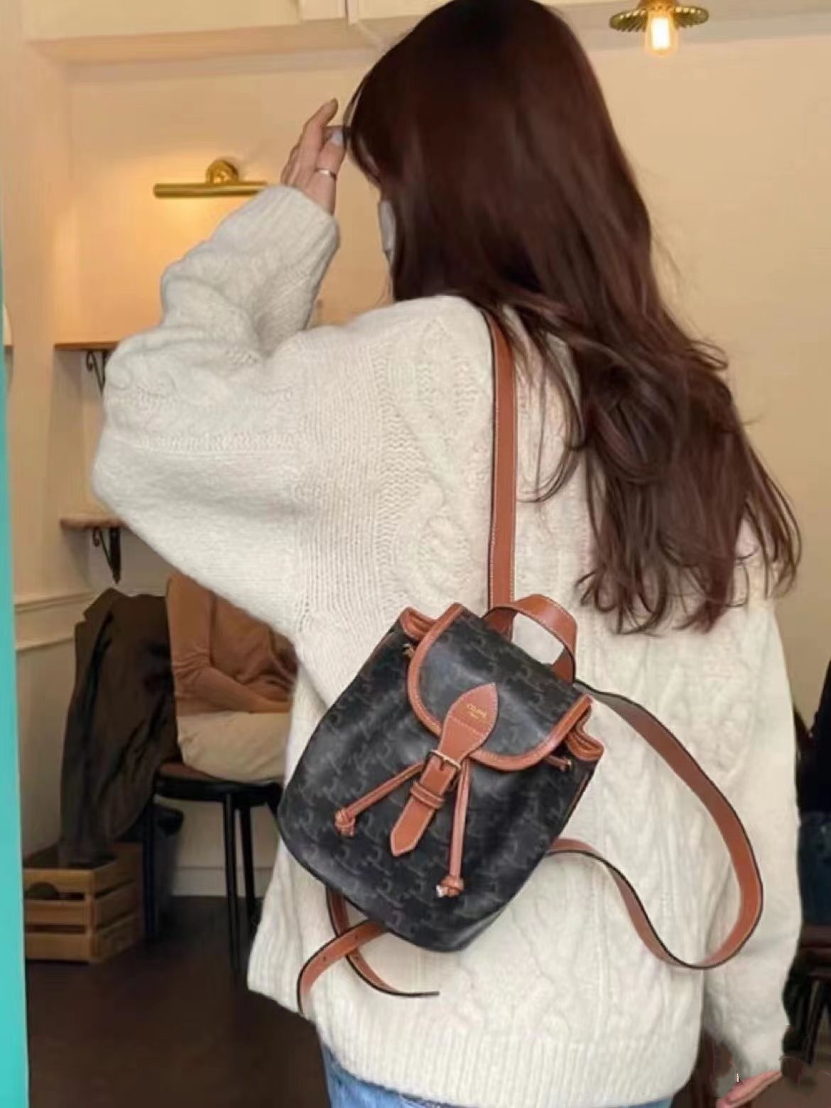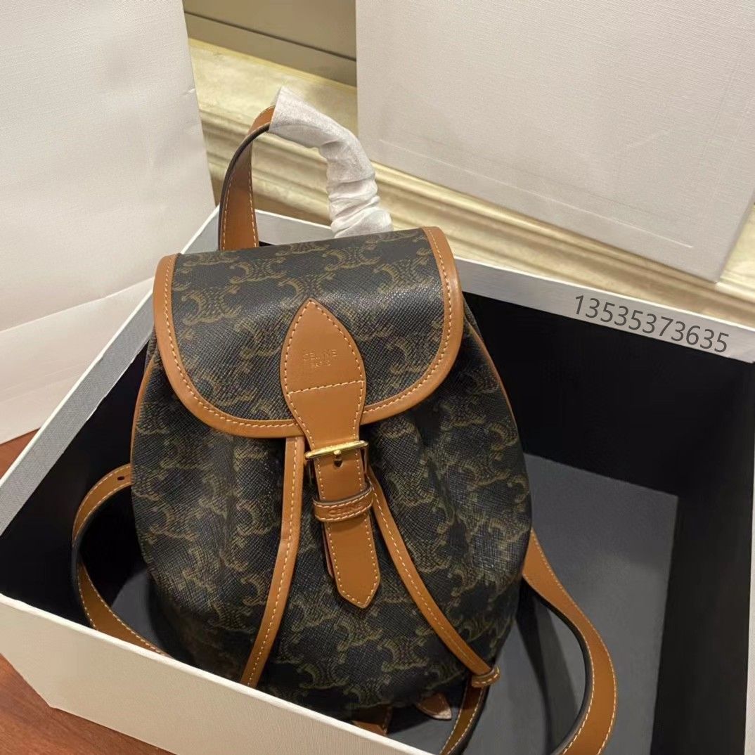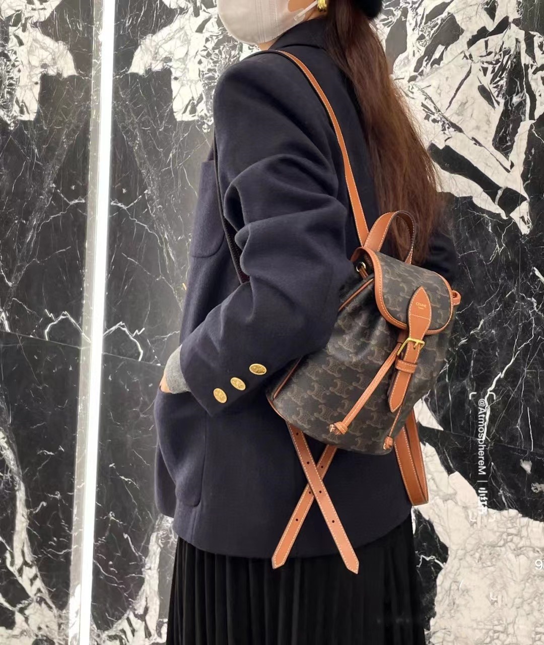 CELIN 新品 FOLCO TRIOMPHE CANVAS,迷你小背包TRIOMPHE CANVAS标志印花牛皮革包边,织物面料衬里,可手提,手柄长度 (8 厘米)注:本款型无法装下IPAD等平板电脑。尺寸:长20~高17~宽10cm