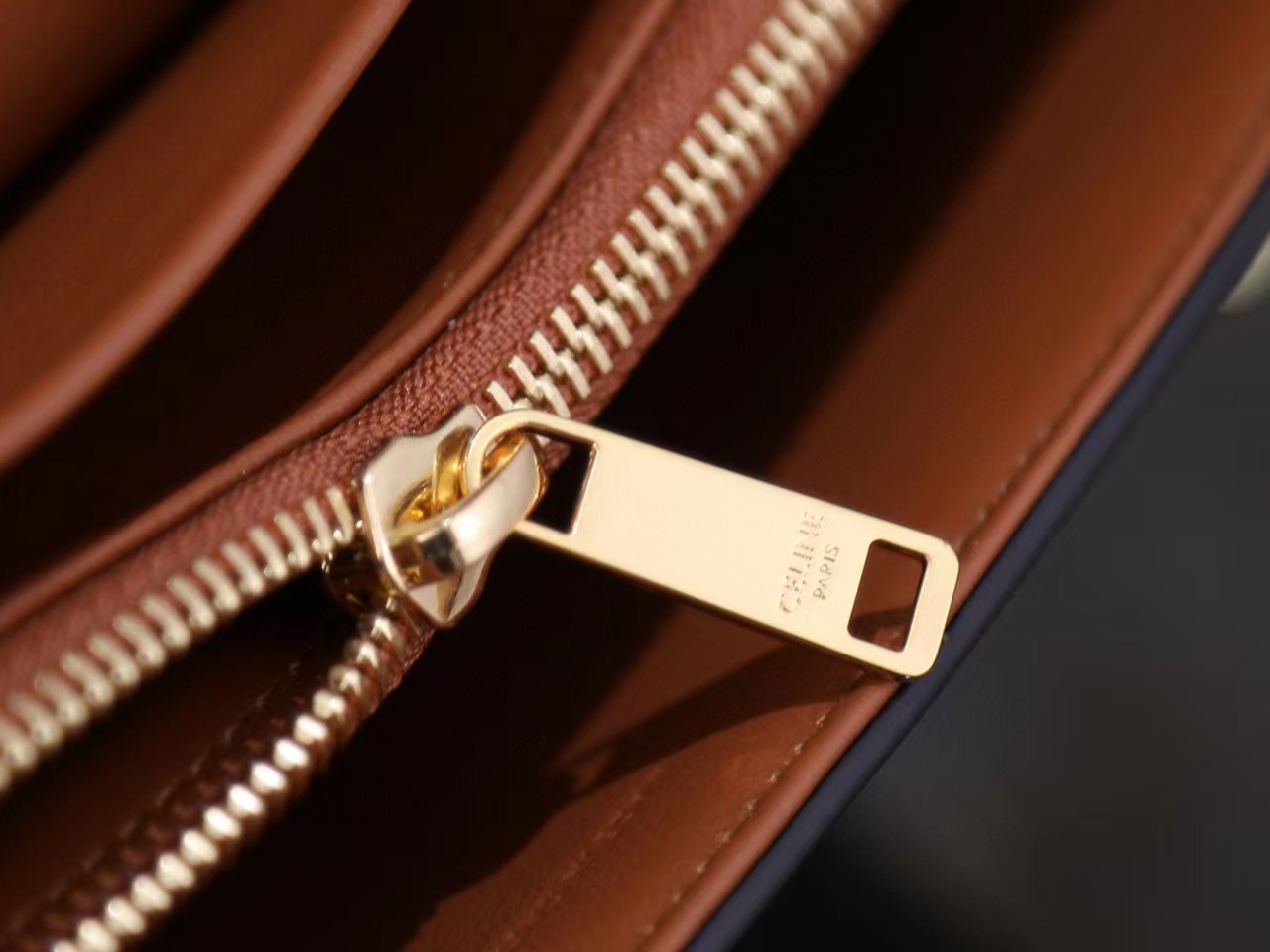 牛皮革,羊皮革衬里,金色饰面,可斜挎和肩背,全钢TRIOMPHE按扣开合,2个主隔层,1个内侧扁平口袋,1个内侧中央拉链口袋,全钢金属滑链,最小长度25厘米和最大长度47厘米