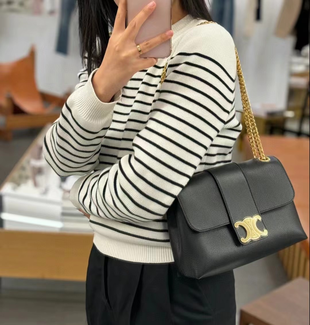 Celine SU24最新款式-Victoire Victorie有胜利的意思 亦有凯旋的含意,久违的链条凯旋门包包 众多明星同款~,采用了高级天然粒纹小牛皮,高级感的粒面和柔软的手感