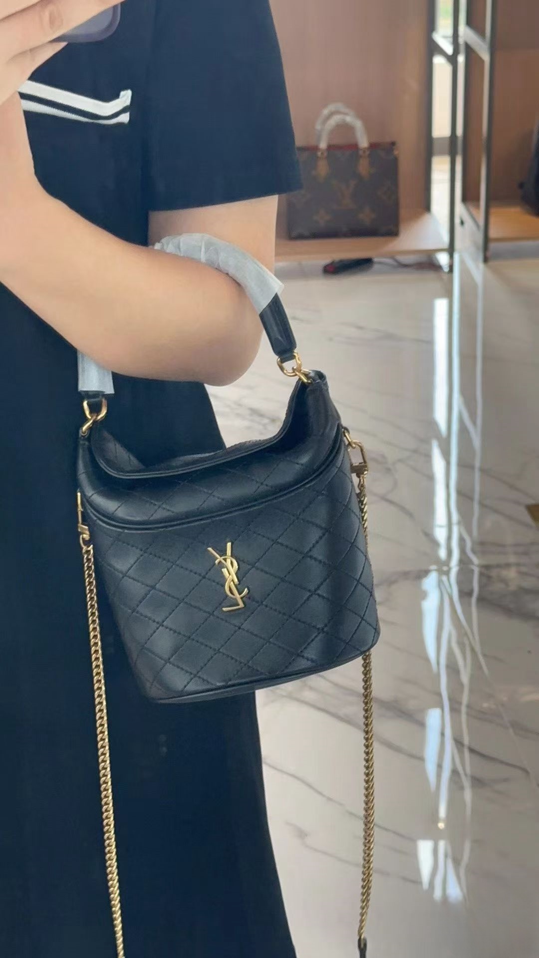 【介绍】 YSL Gaby系列新出水桶包 ,全羊皮材质 超级精致可爱,而且非常的轻盈,顶部翻盖设计,私密性跟安全性都更高,顶部提手和可拆卸链条肩带,可以有更多的背法,适合不同场合,太好看了吧。