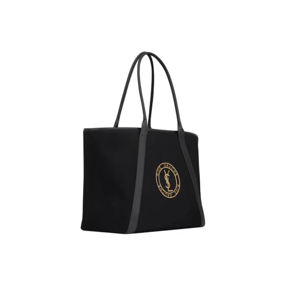 Yves Saint Laurent圣罗兰 徽章刺绣 织物拼牛皮革 单肩手提购物袋