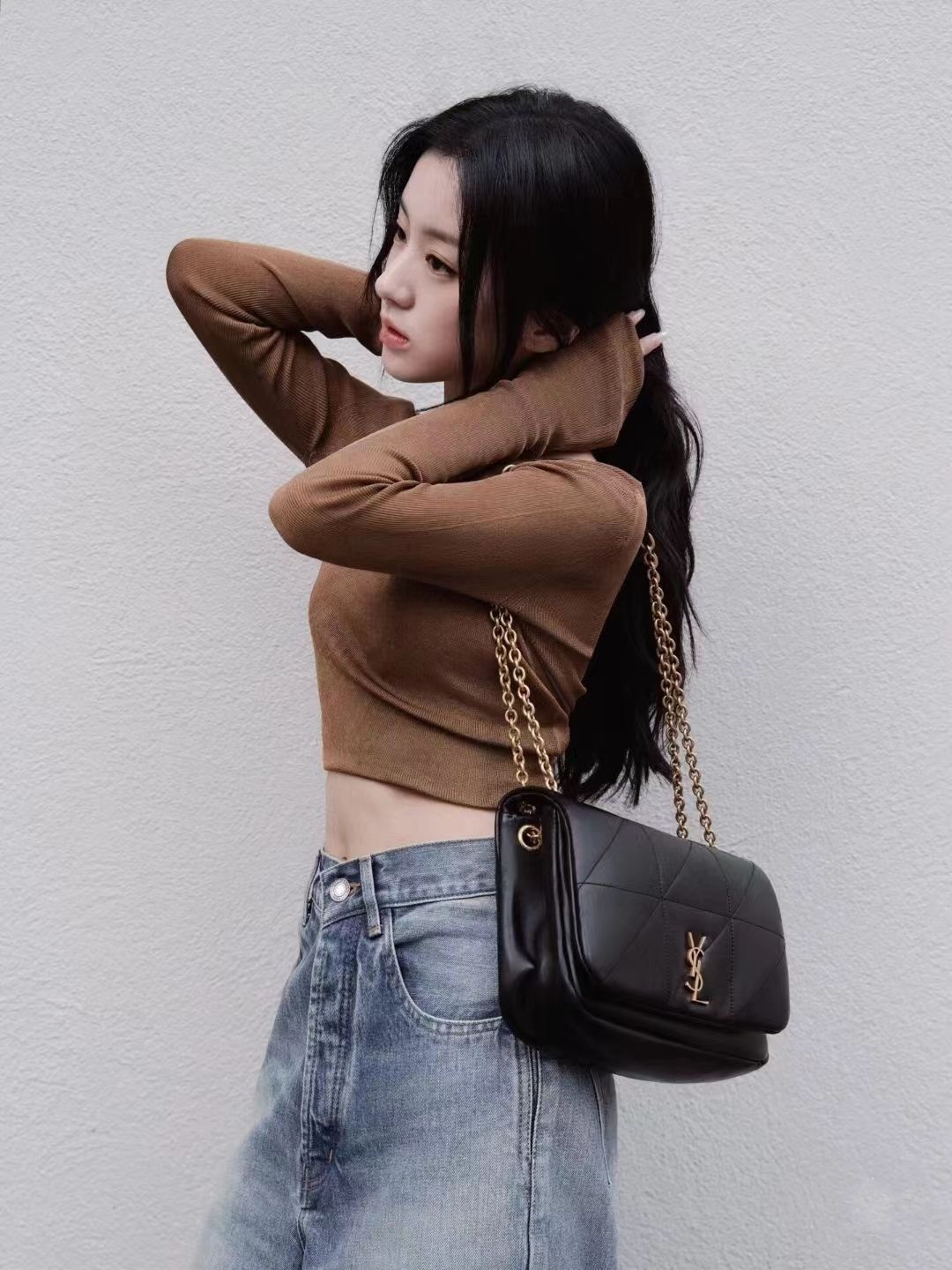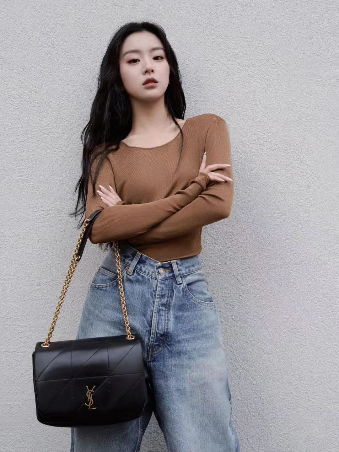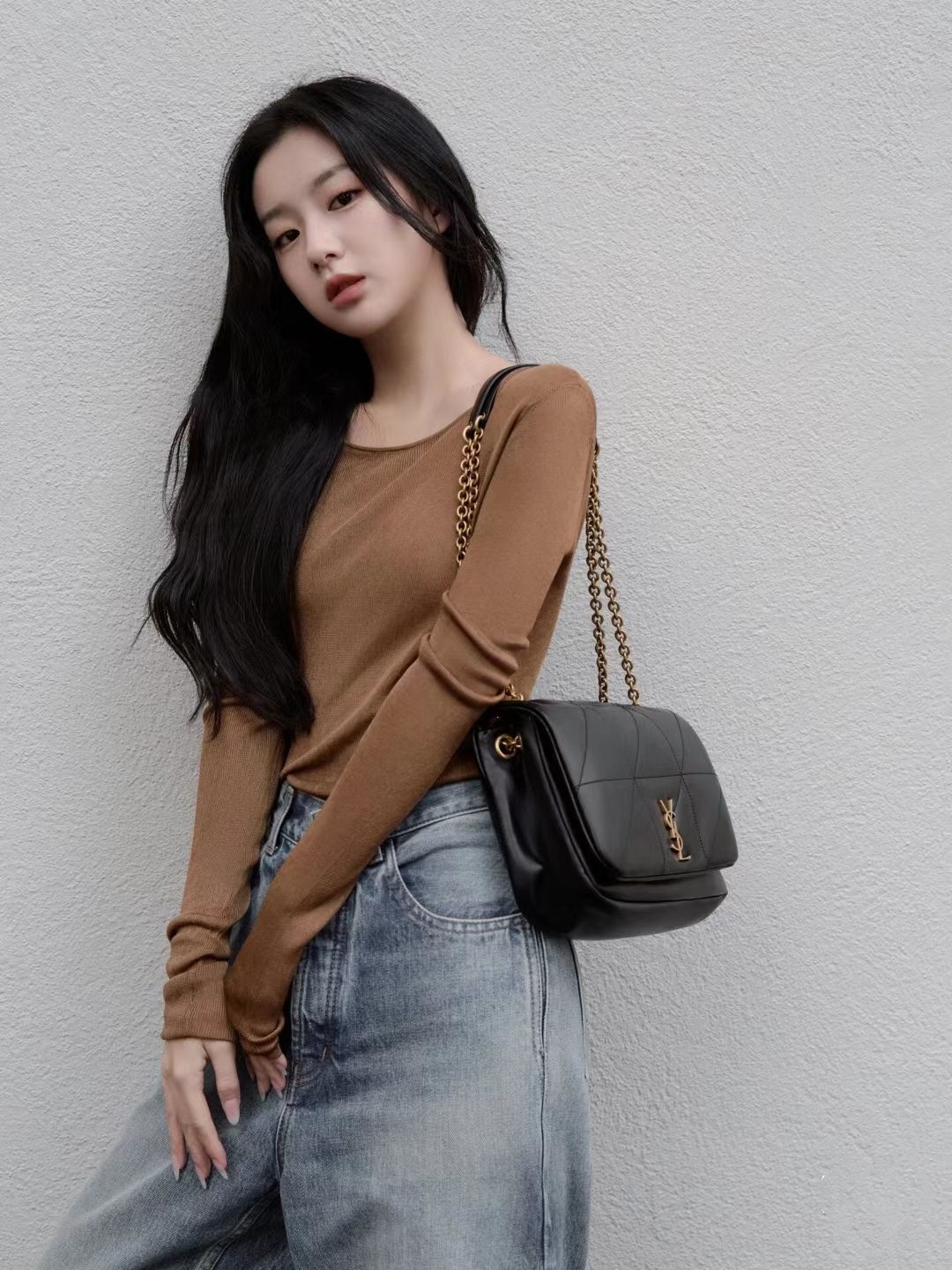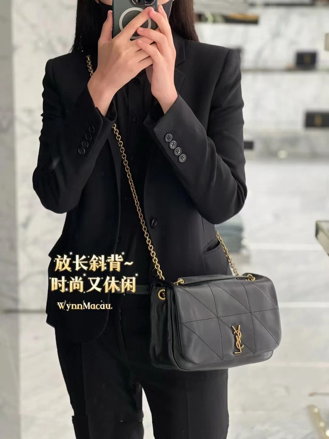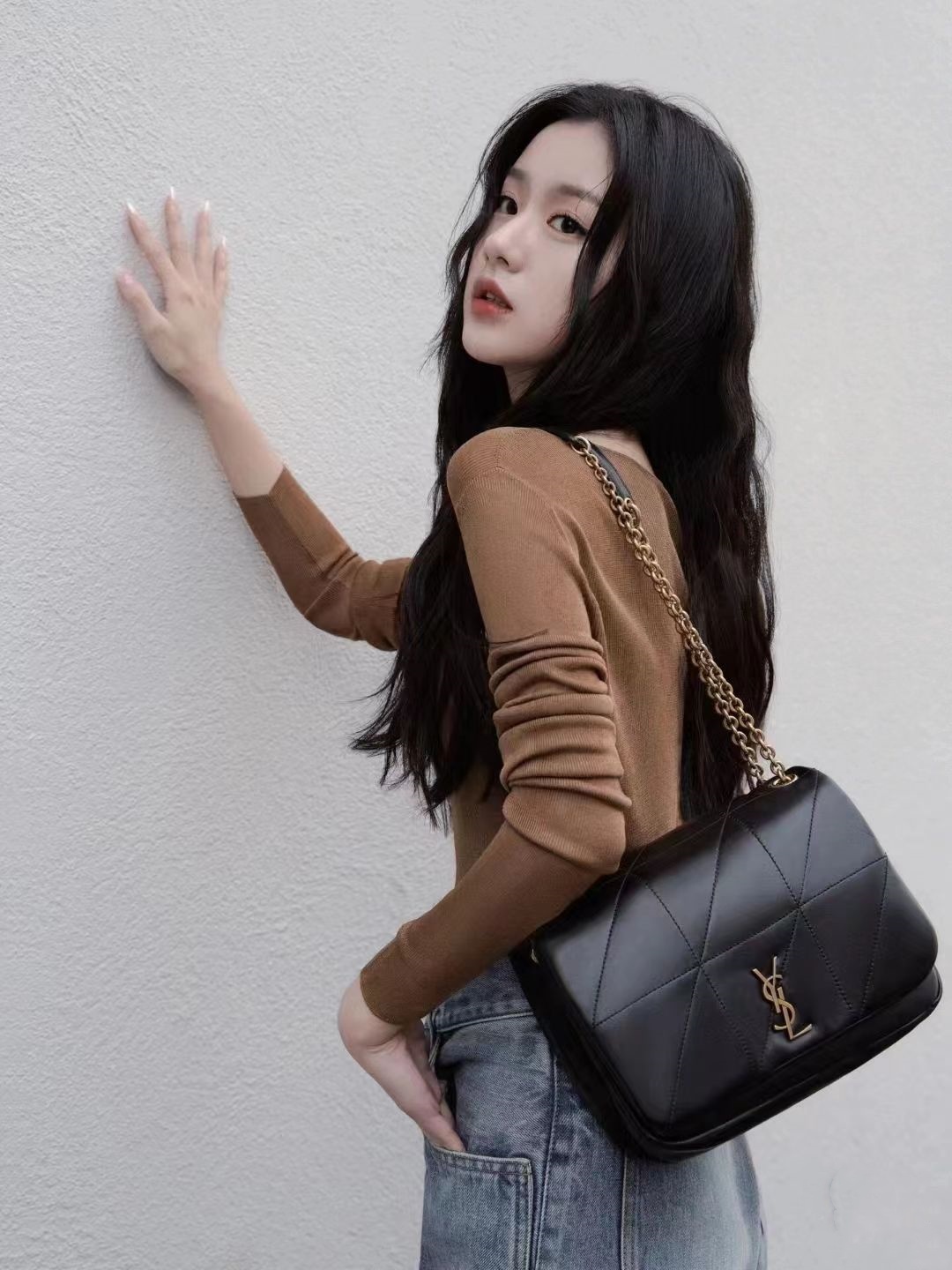 JAMIE 4.3小号原厂羊皮革手袋!小号柔软纳帕皮革手袋,饰以 CARRE RIVE GAUCHE 络缝明缝线。轻盈小巧,搭配可调节滑动式肩带,演绎多种佩戴方式。包型以经典复古做旧版的设计,非常好看时髦,通勤百搭,意想不到的轻便,实用性很高!可手拎、单肩背及斜挎多种背法!绝对的必入单品!