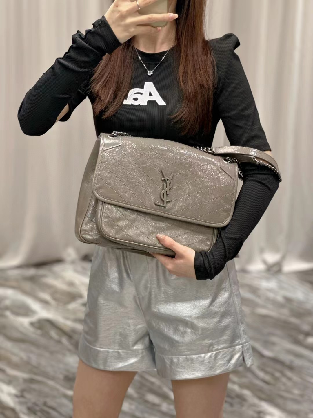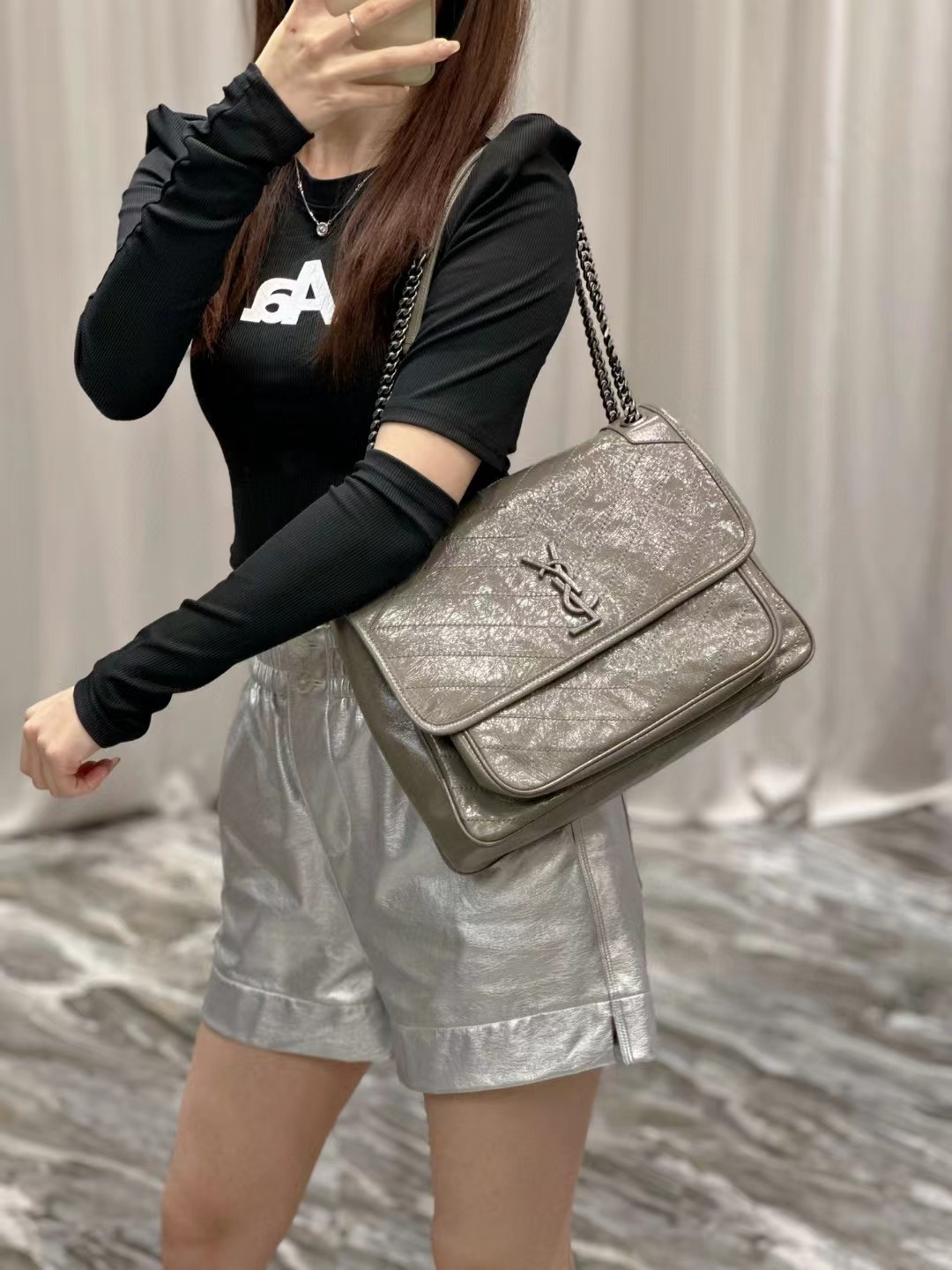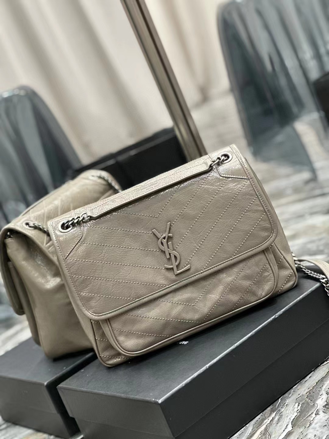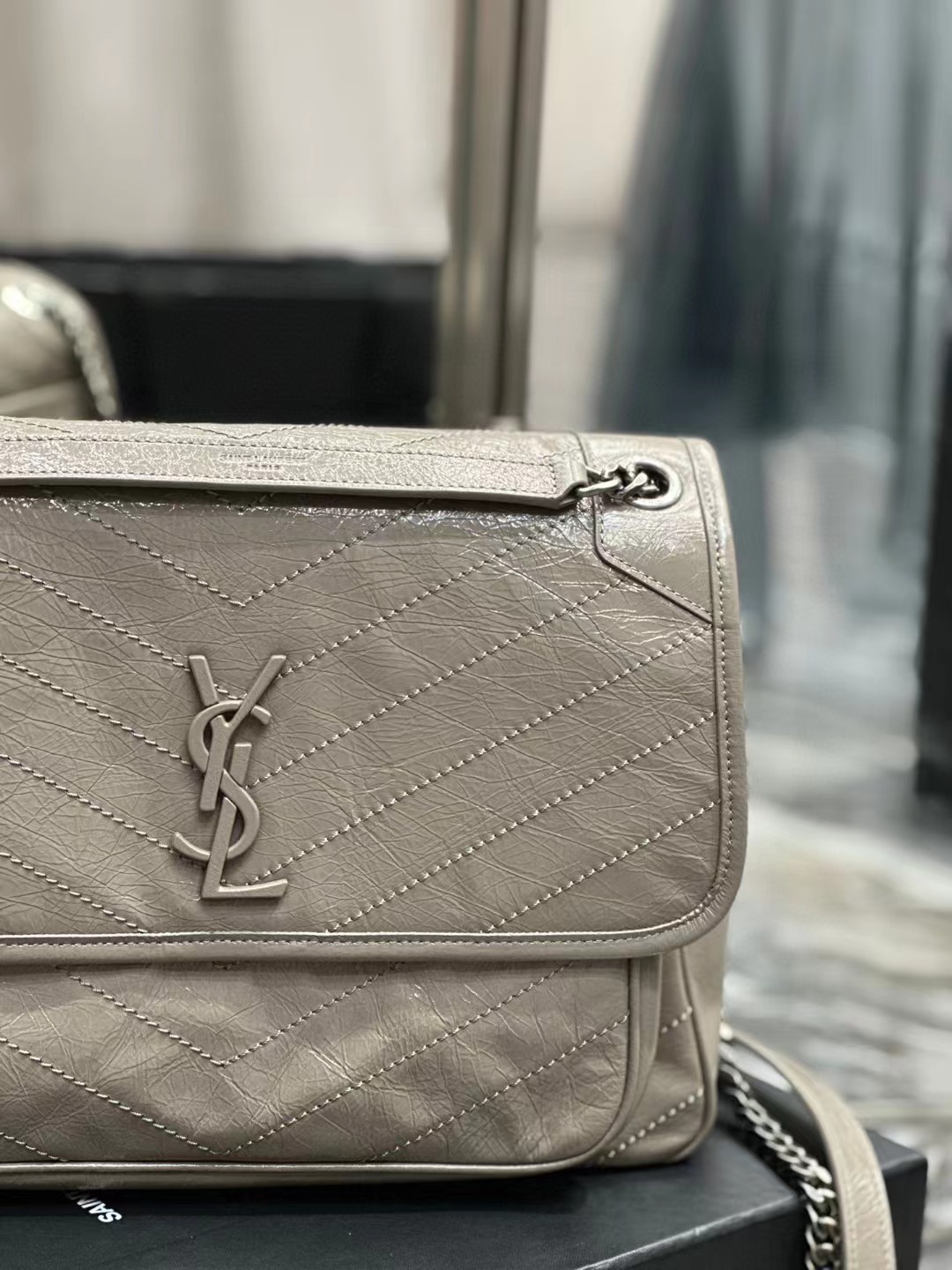 Yves Saint Laurent圣罗兰 NIKI做旧油蜡牛皮包