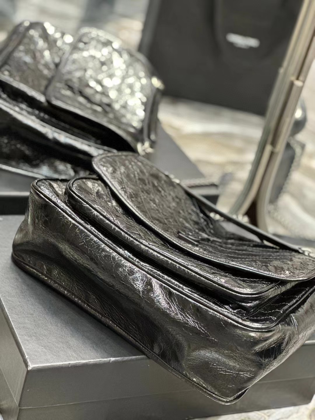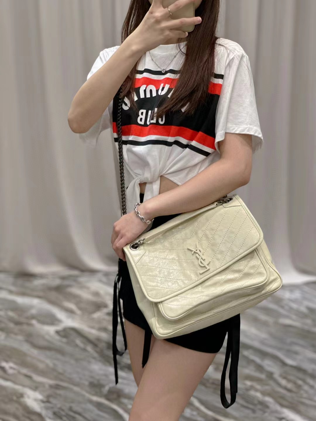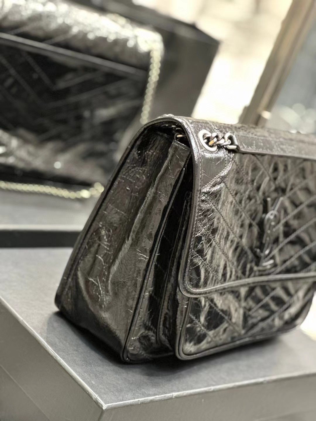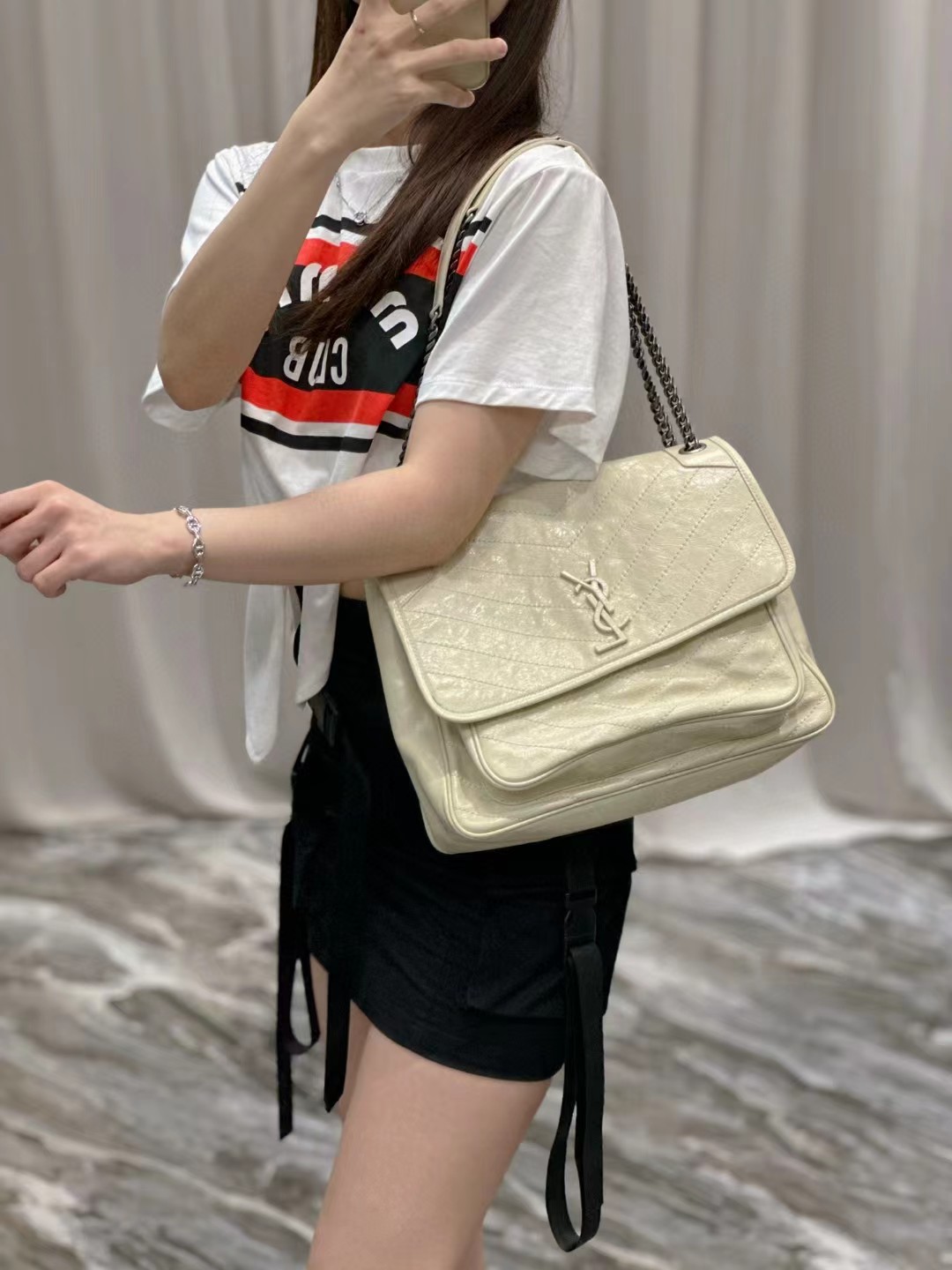 Yves Saint Laurent圣罗兰 NIKI做旧油蜡牛皮包