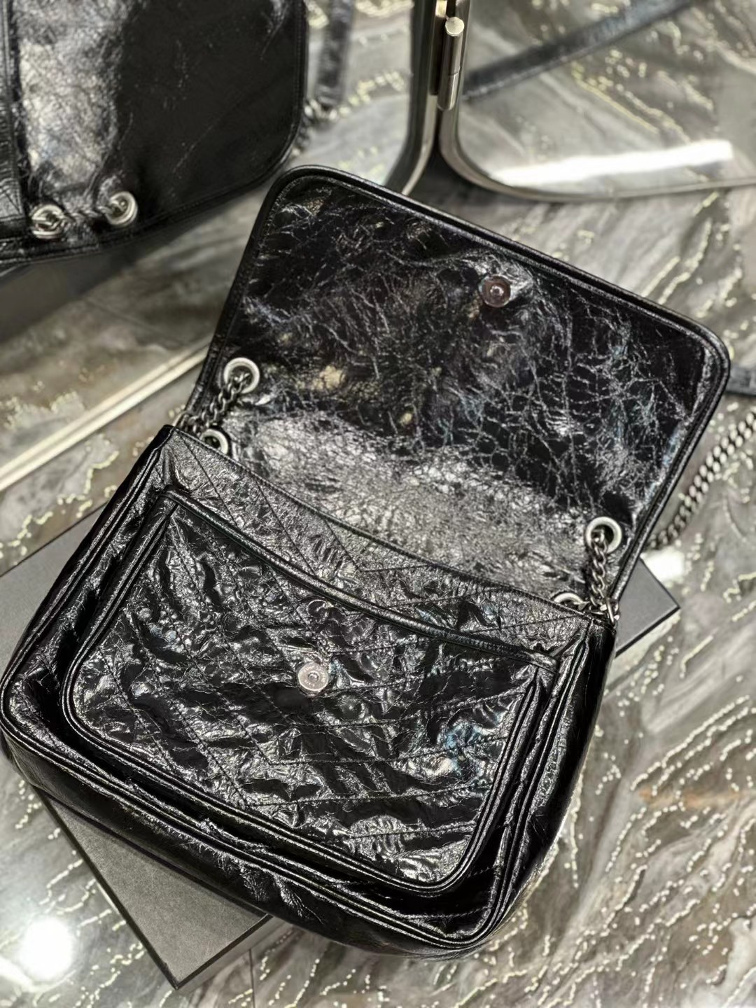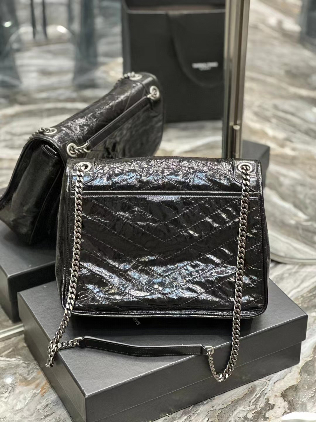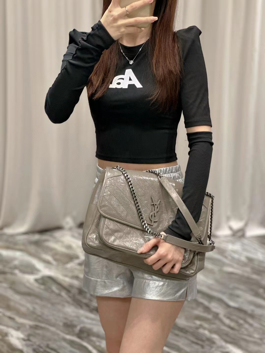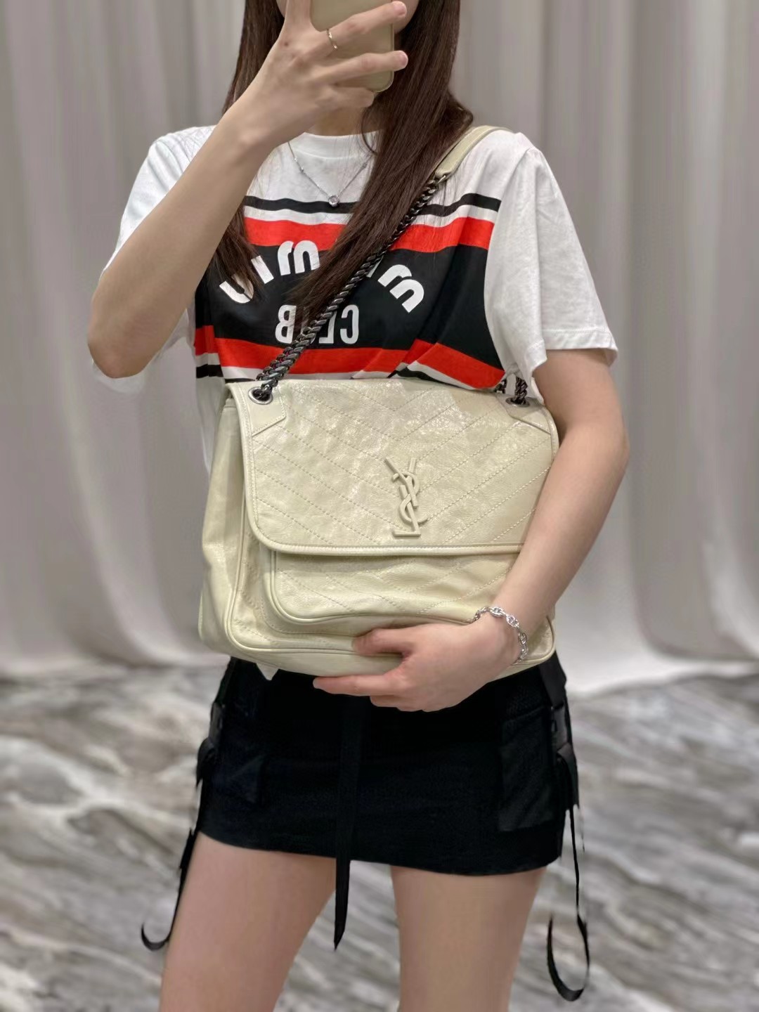 Yves Saint Laurent圣罗兰 NIKI做旧油蜡牛皮包