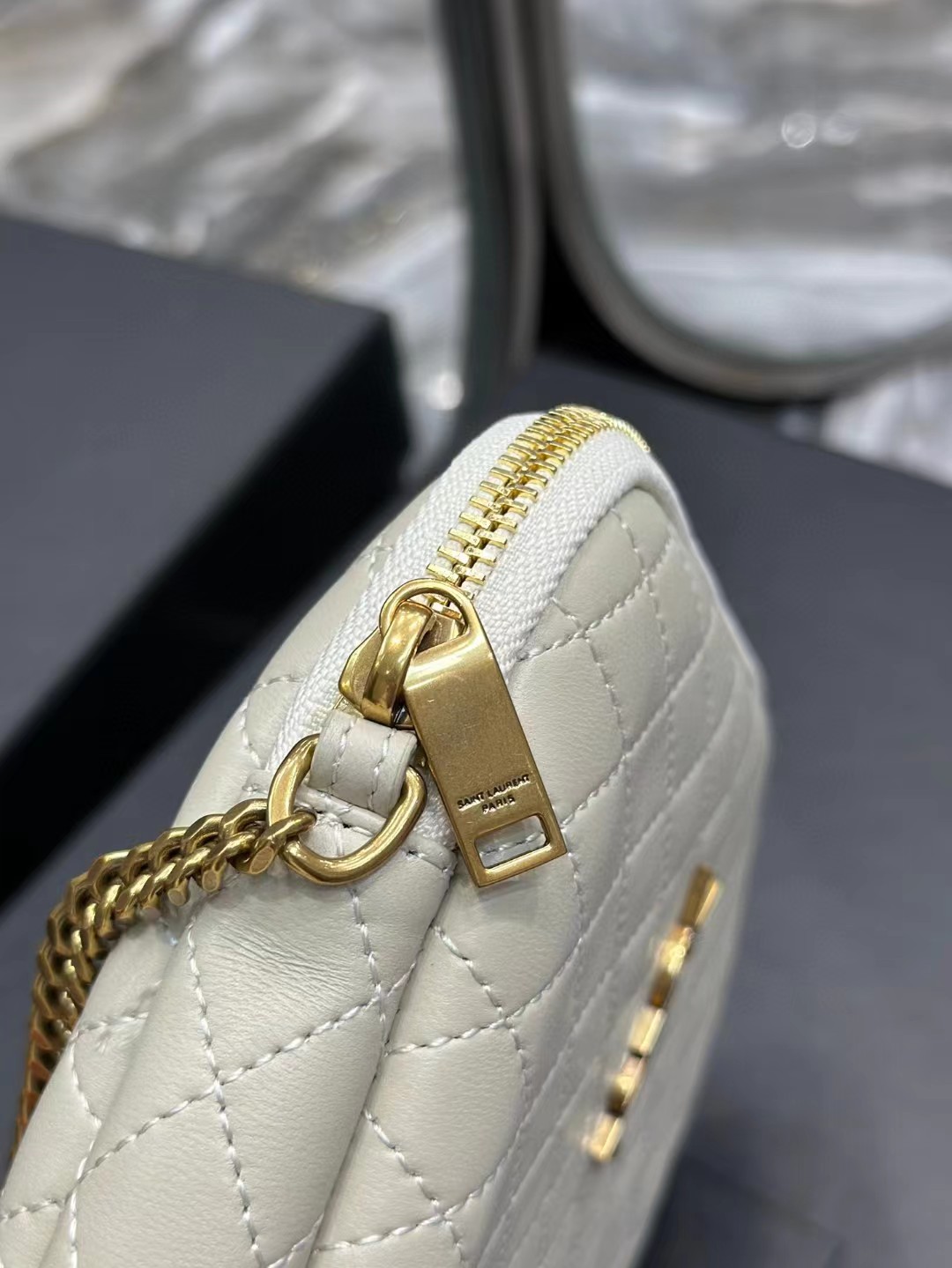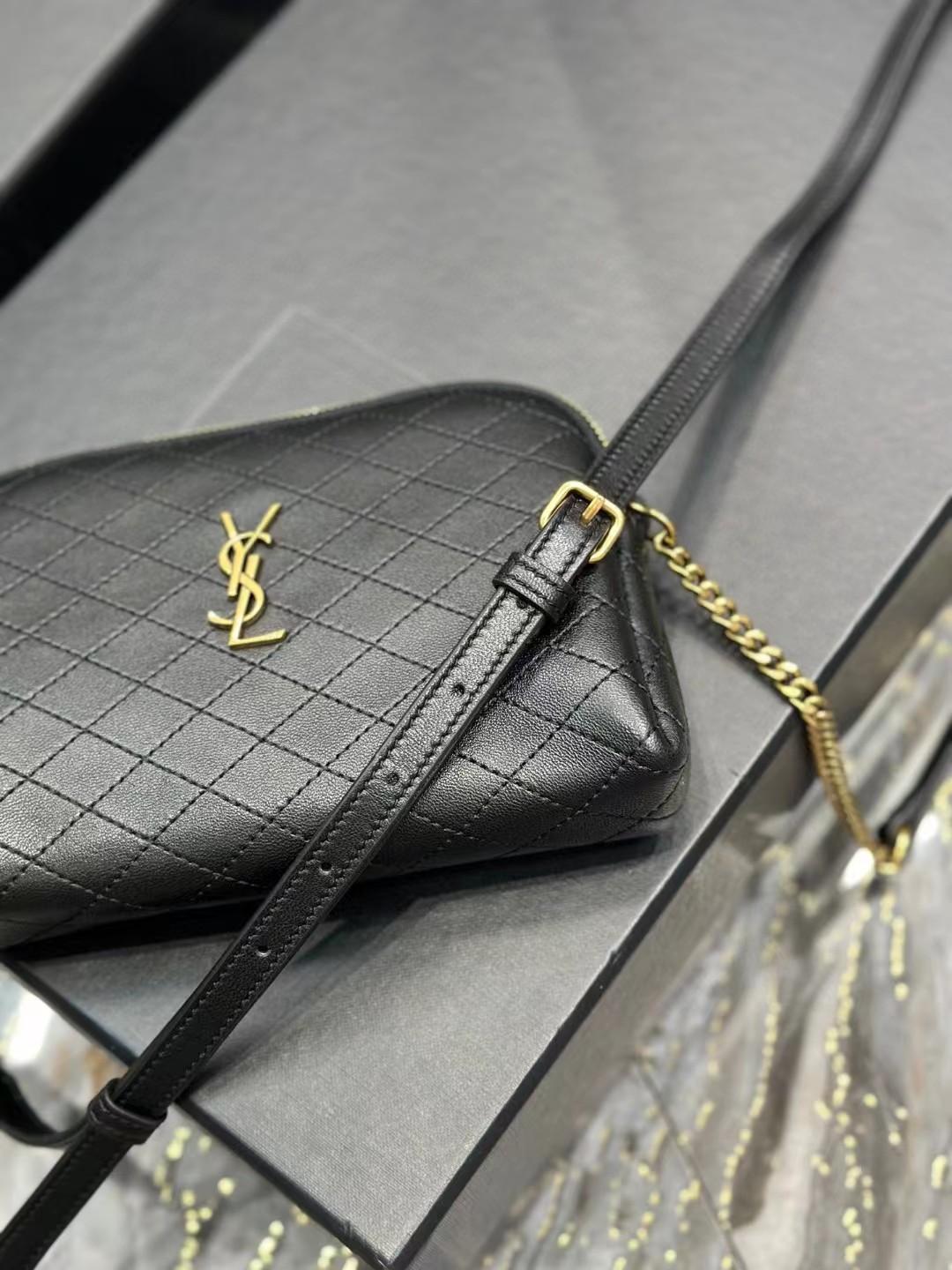 YSL新款GABY绗缝羊皮革链条贝壳包,配有经典YSL标志,柔软原厂羊皮材质,可调节链条长度:57cm,浅古铜色金属配件,羊皮衬里。