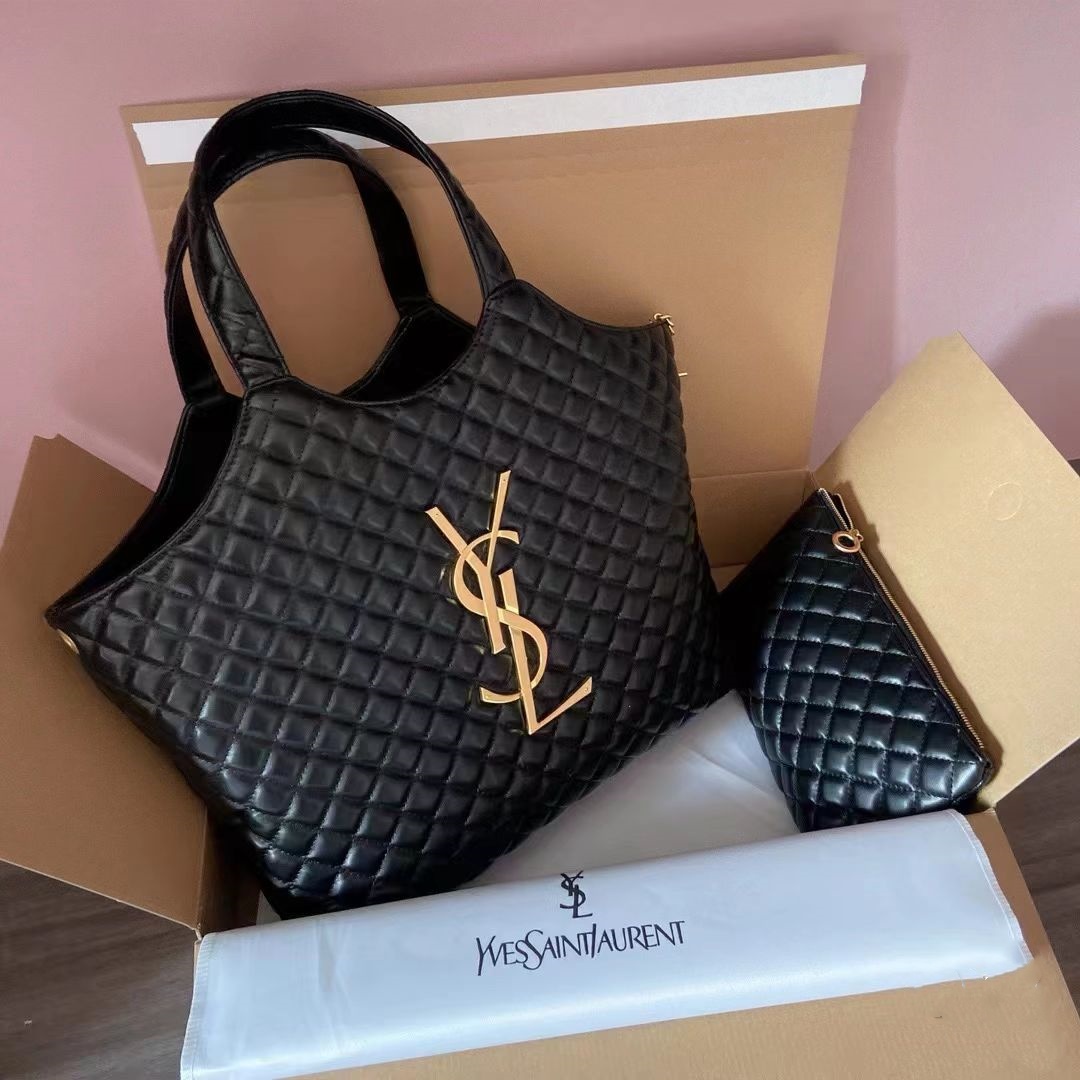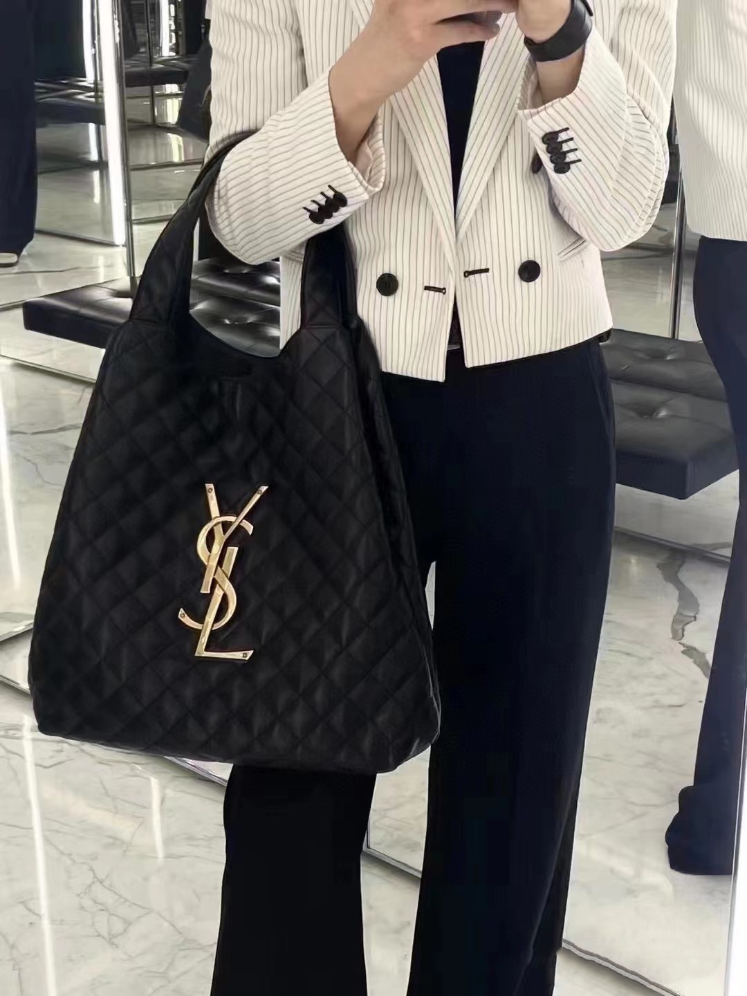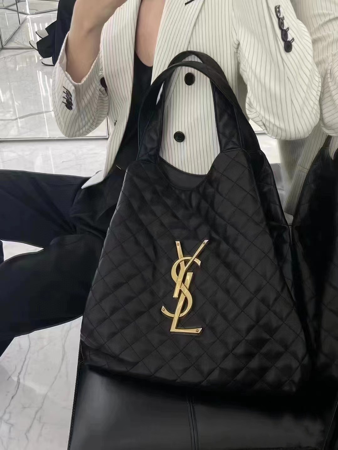 特级原厂皮【Y家】ICARE托特包~购物袋,火爆全网的ICARE托特包,“自由炙热,舒适惬意,优雅是你,随性也是你”———Saint Laurent 22春夏新品推出的托特包袋,复古的菱形格子与精密细节的工艺在细节处ICARE也做到了真正的精致!作为最新的款式ICARE无论是外观材质实用性都一定能在包袋当中展示出不同的效果 男女皆可,超大的Logo设计,字母表面呈状,具有雕塑感和艺术风格,很是醒目,飒酷飒酷.惊艳到我了《羊皮黑色金扣》款号:698651 尺寸: 长38(58)~高43~宽8cm