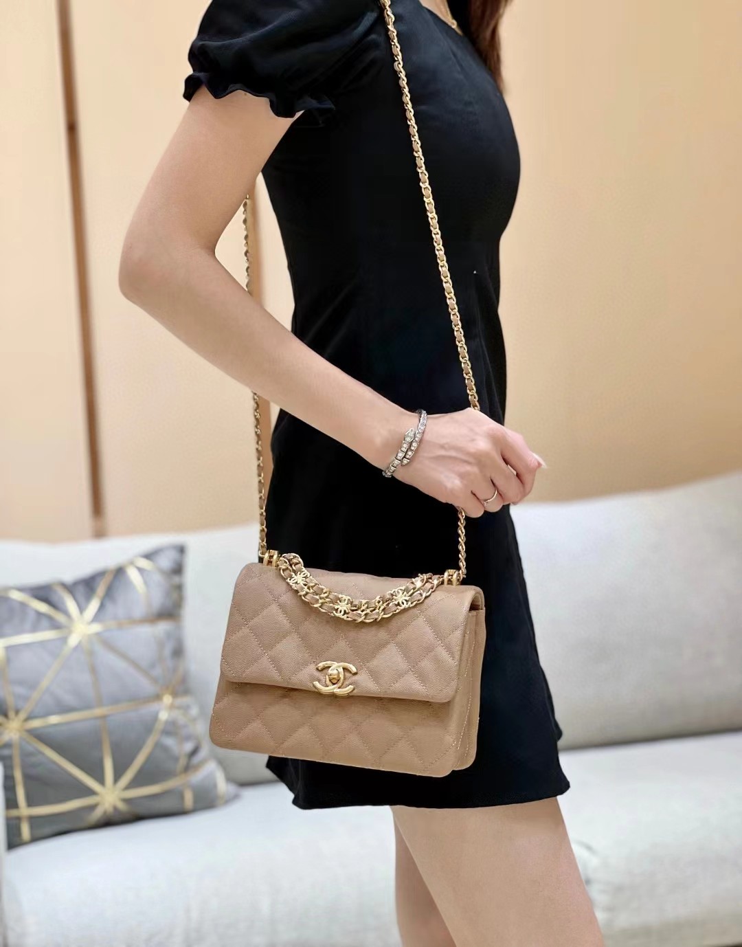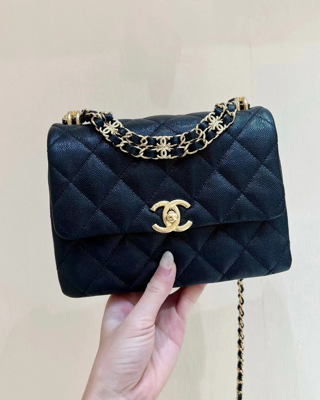 22k超难买的款式之一经典cf版型做了单盖设计,容量更大更实用肩带也是特别用心,做了双排双c链!还是最最贴心的haas荔枝牛皮!超级推荐
