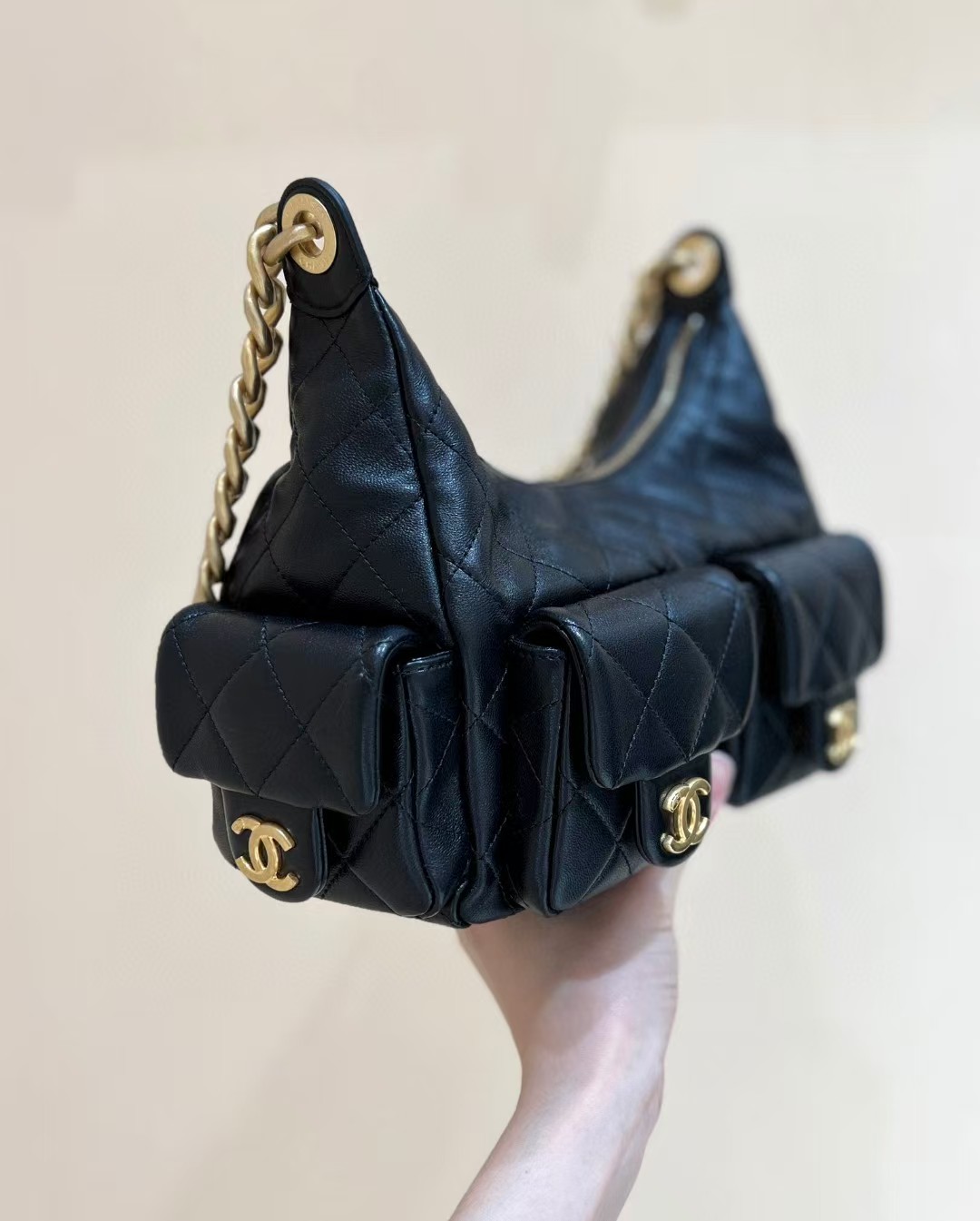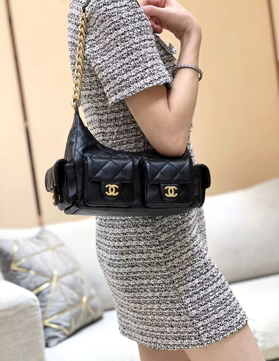 【介绍】 25C 早春度假系列。Chanel 25C Jennie同款hono包,Jennie加持的款都非常火爆,这只嬉皮包真的好绝功能性口袋设计又潮又复古上身也很好搭配,超级推荐。