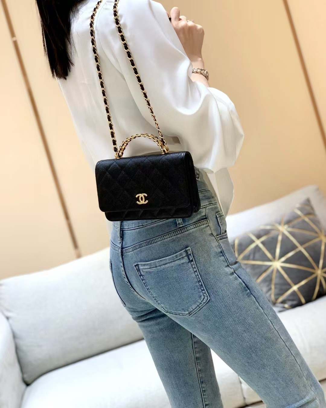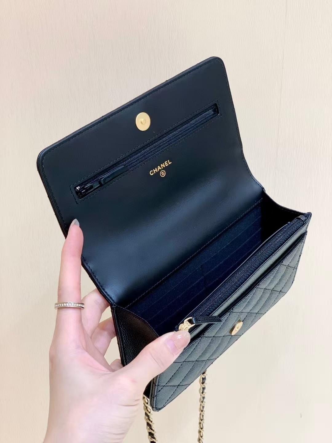香奈儿这款我想买好久了,黑色经典百搭,配啥都好好看,包的质感我爱了,荔枝纹真的绝,有耐磨又能装!!