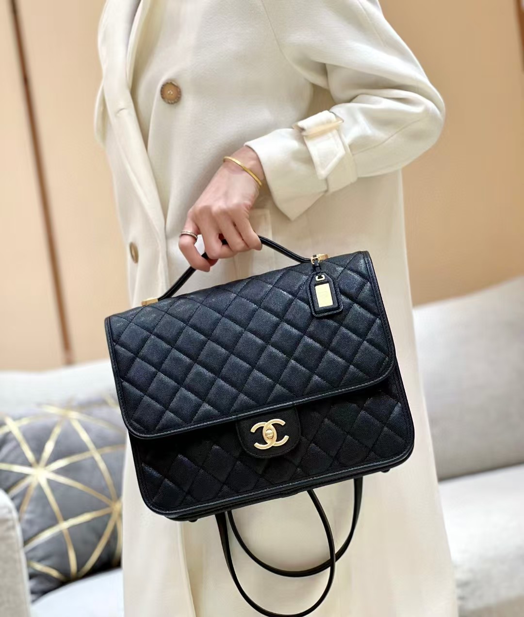 香奈儿这款我想买好久了,黑色经典百搭,配啥都好好看,包的质感我爱了,荔枝纹真的绝,有耐磨又能装!!