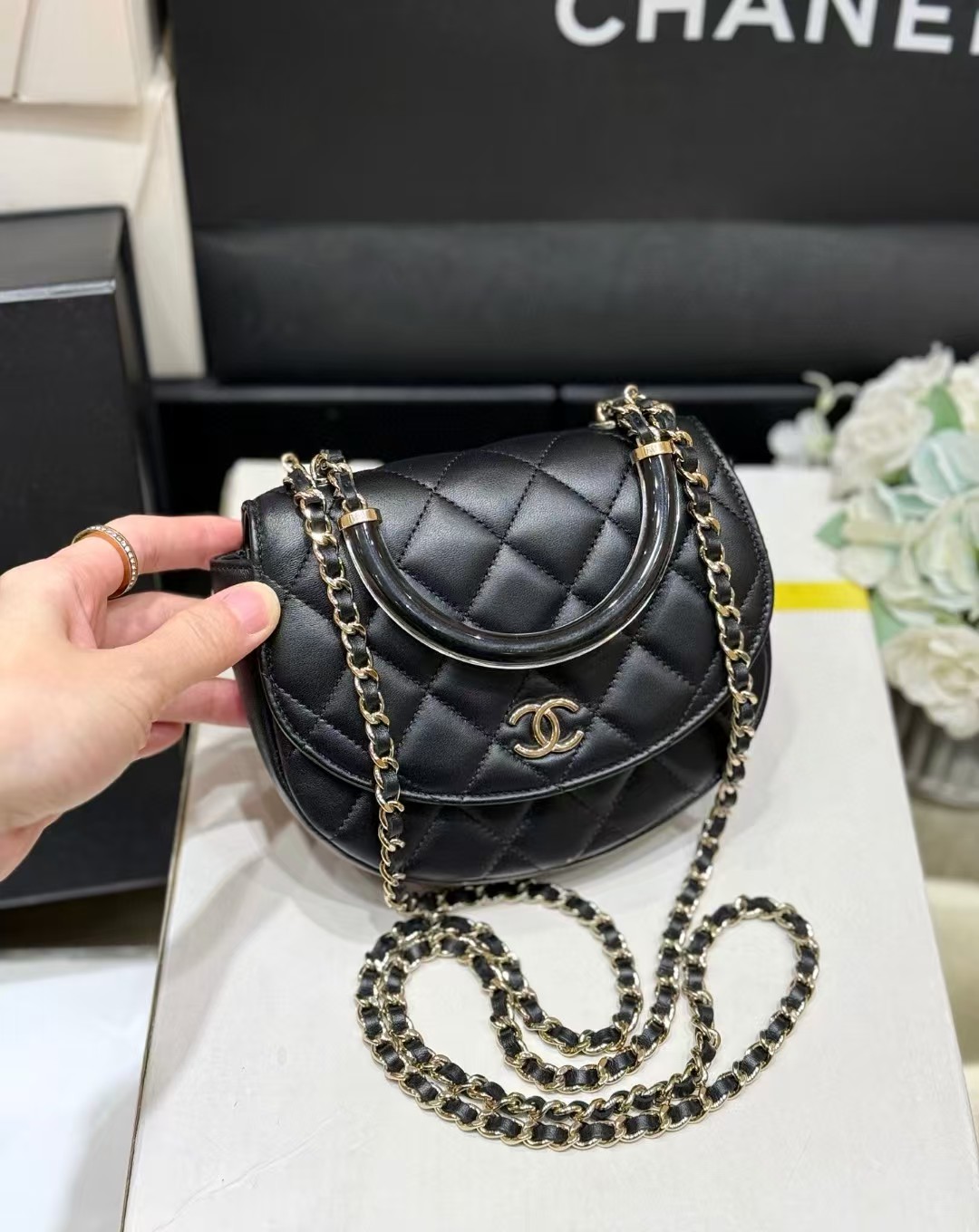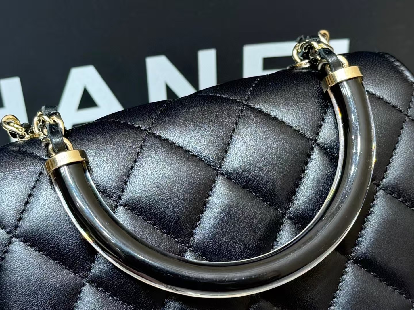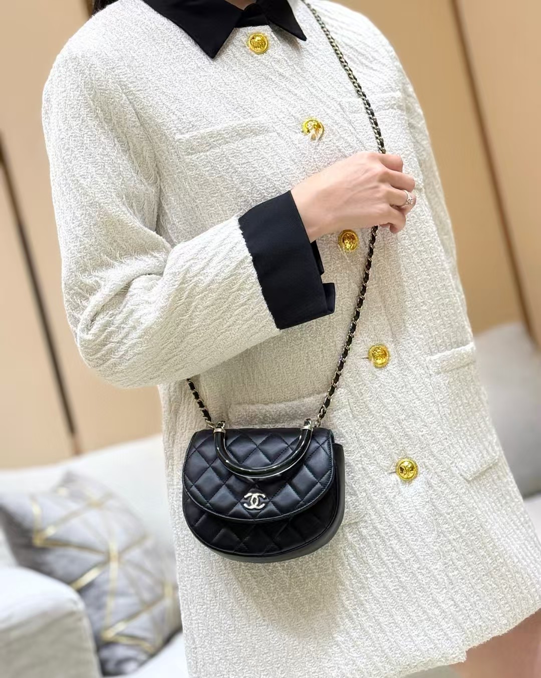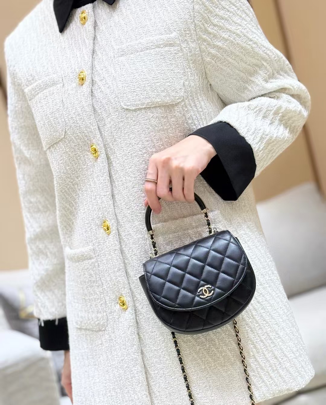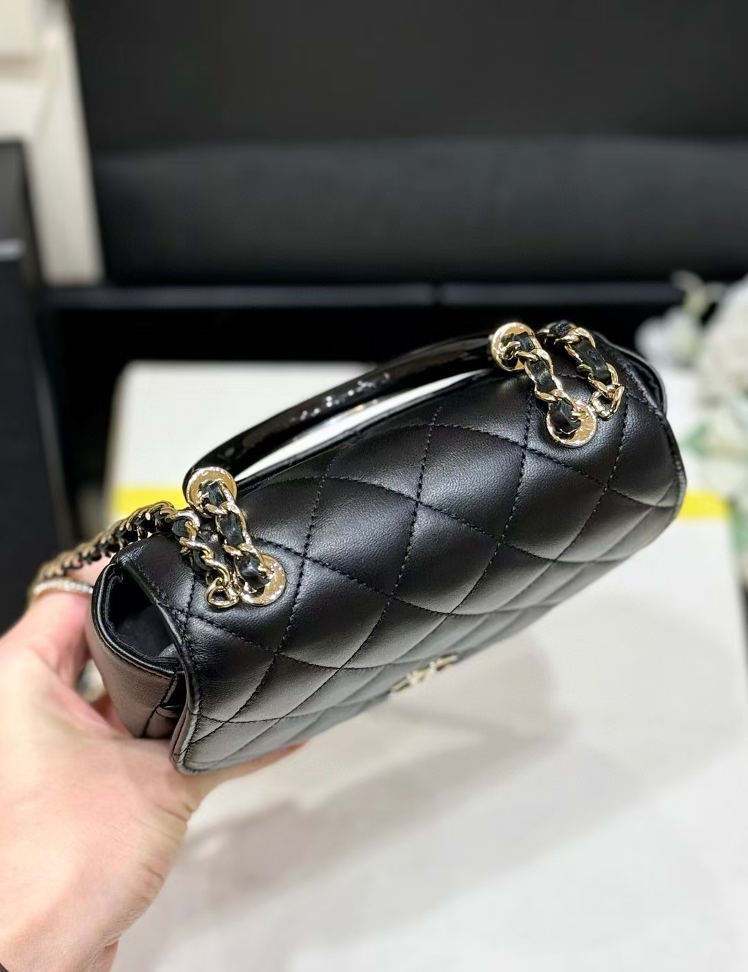 【介绍】 25C 早春系列.Chane1 25C mini珐琅手柄包,黑金太太太好看了吧!一包多用,隐藏款链条手提包实物超级可爱,装点平时出门的小物品足够了推荐!